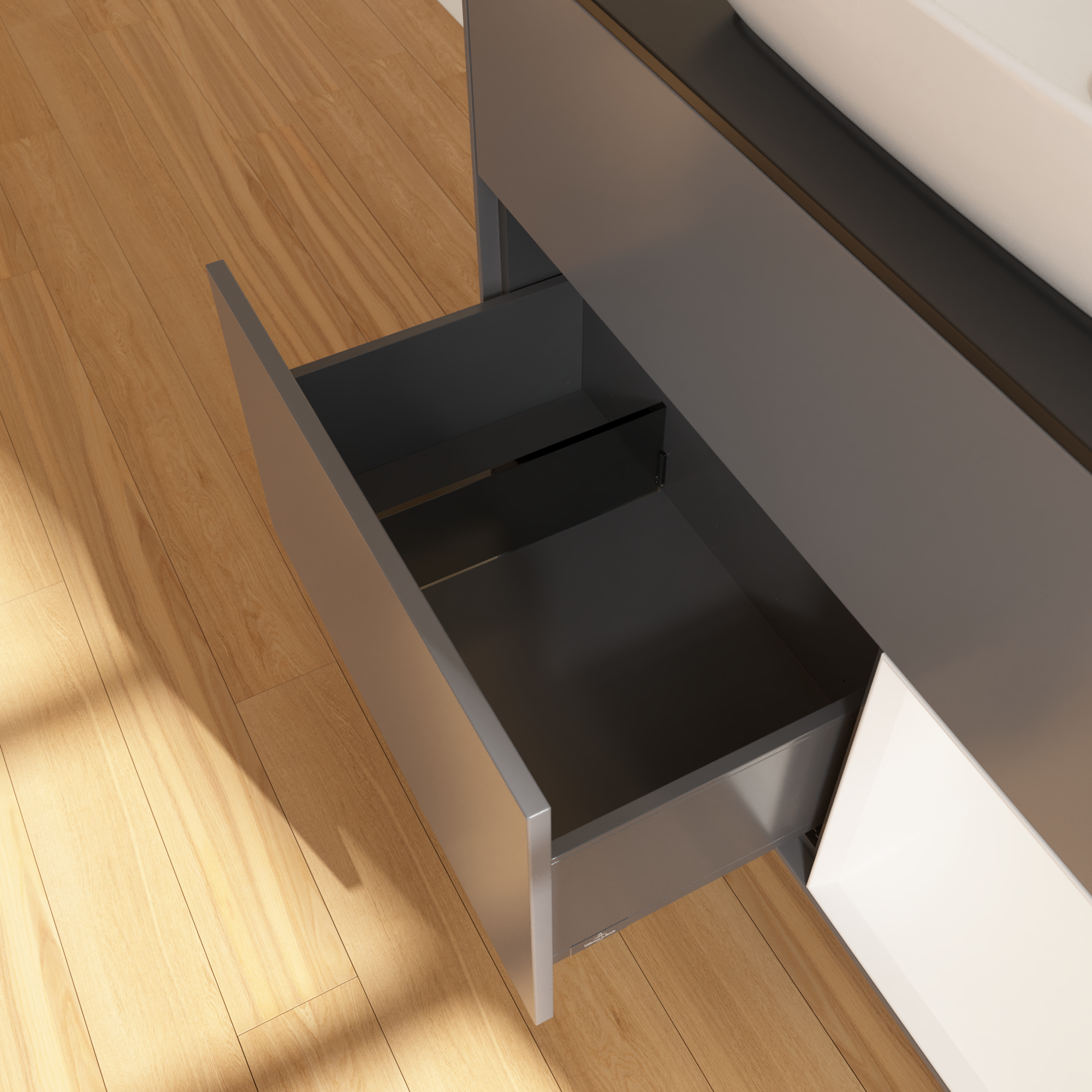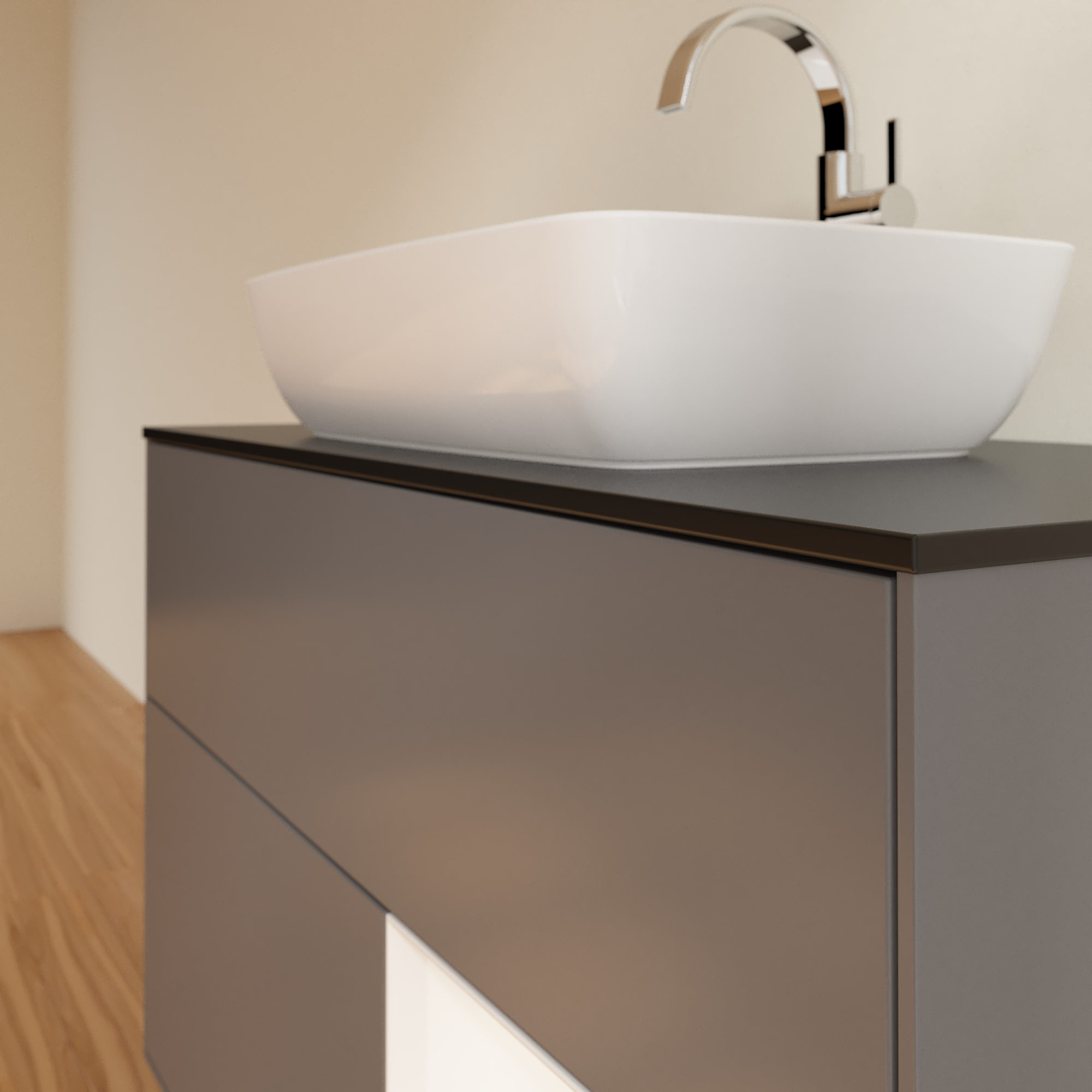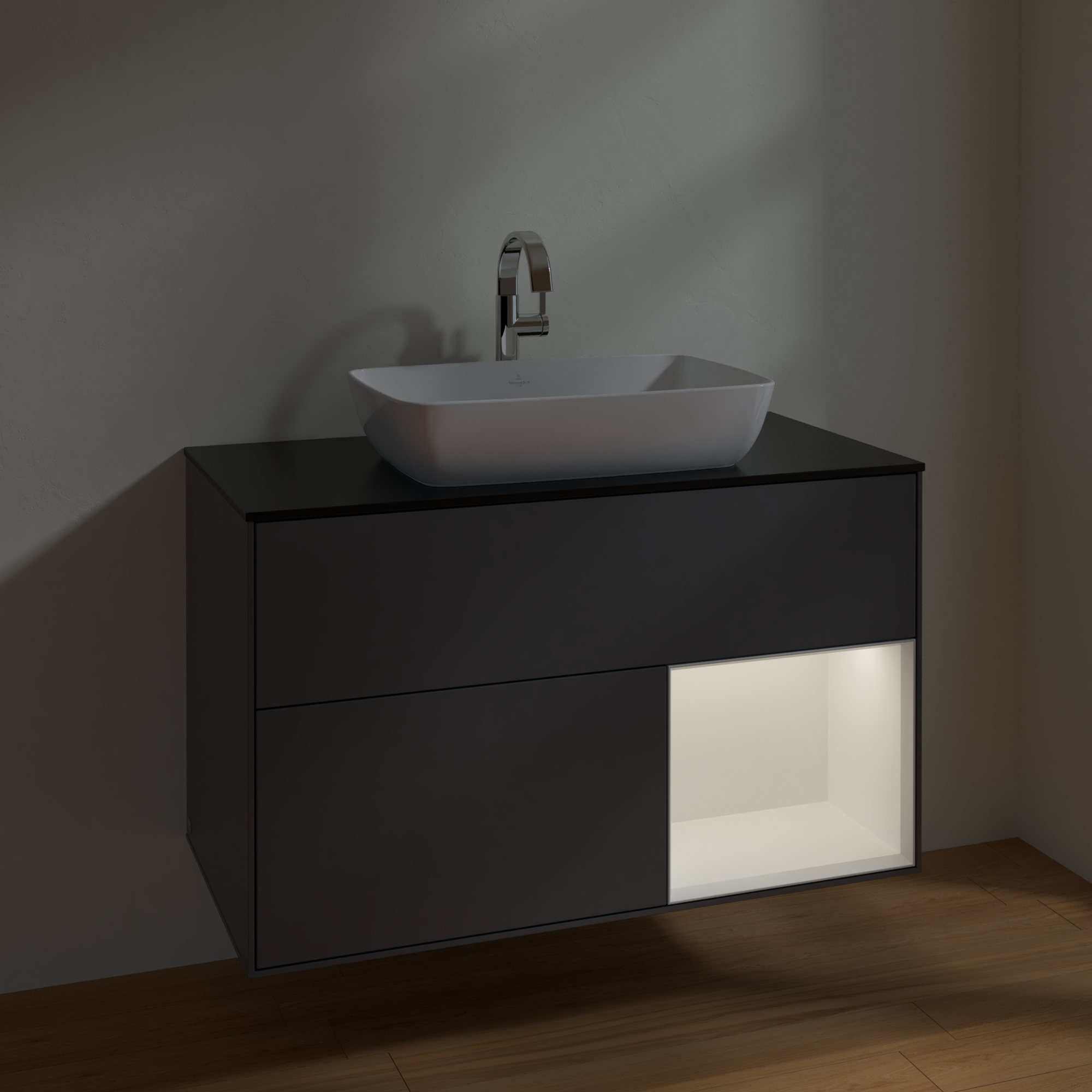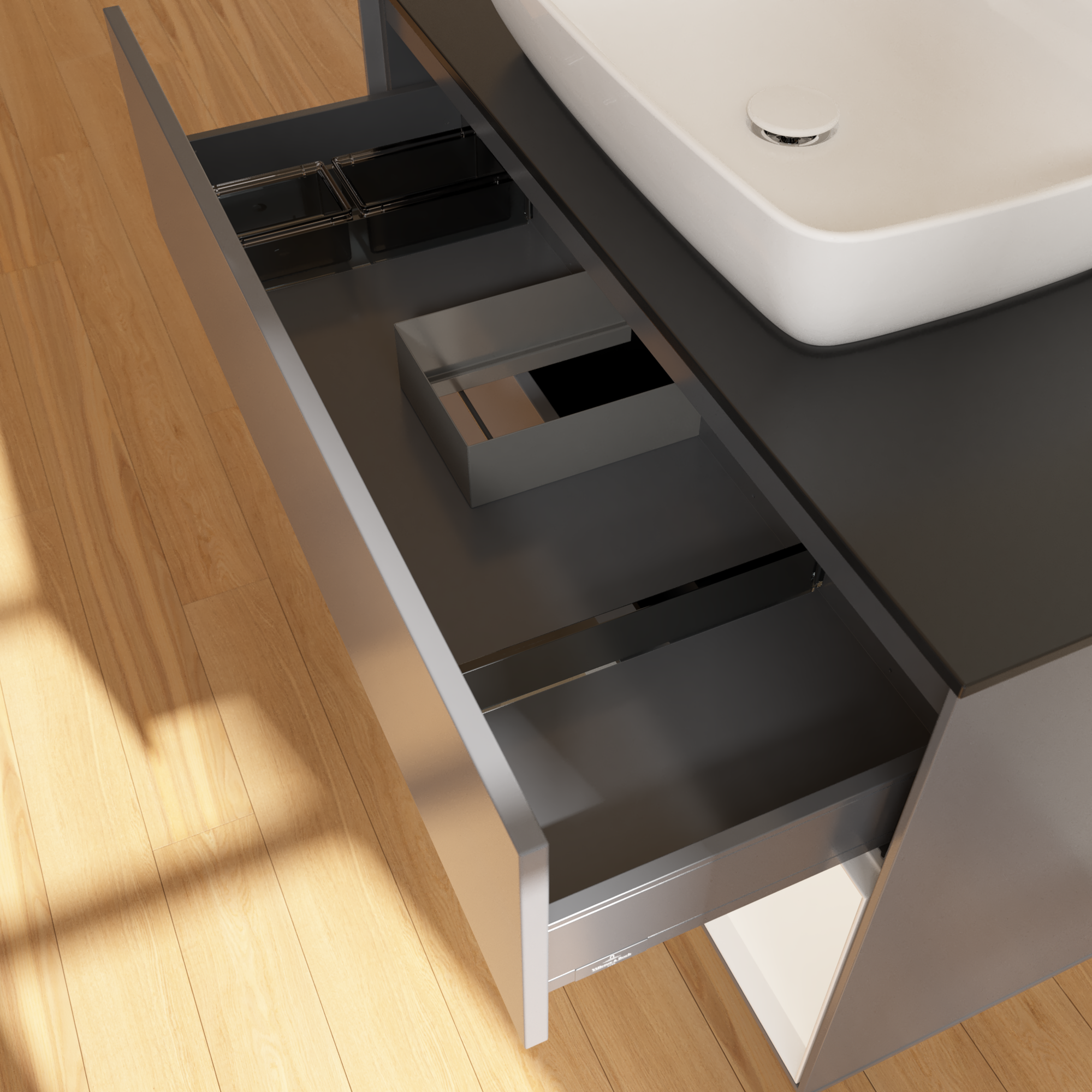 Finion Szafka podumywalkowa, z oświetleniem, 2 elementy wysuwane, 1000x603x501mm, Korpus: Anthracite Matt Lacquer, Front: Anthracite Matt Lacquer, Element regałowy: White Matt Lacquer, Blat: Glass Black Matt