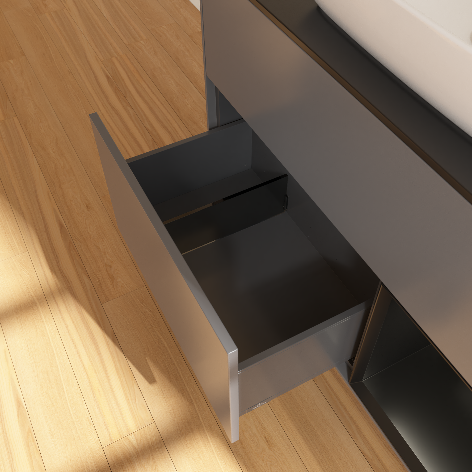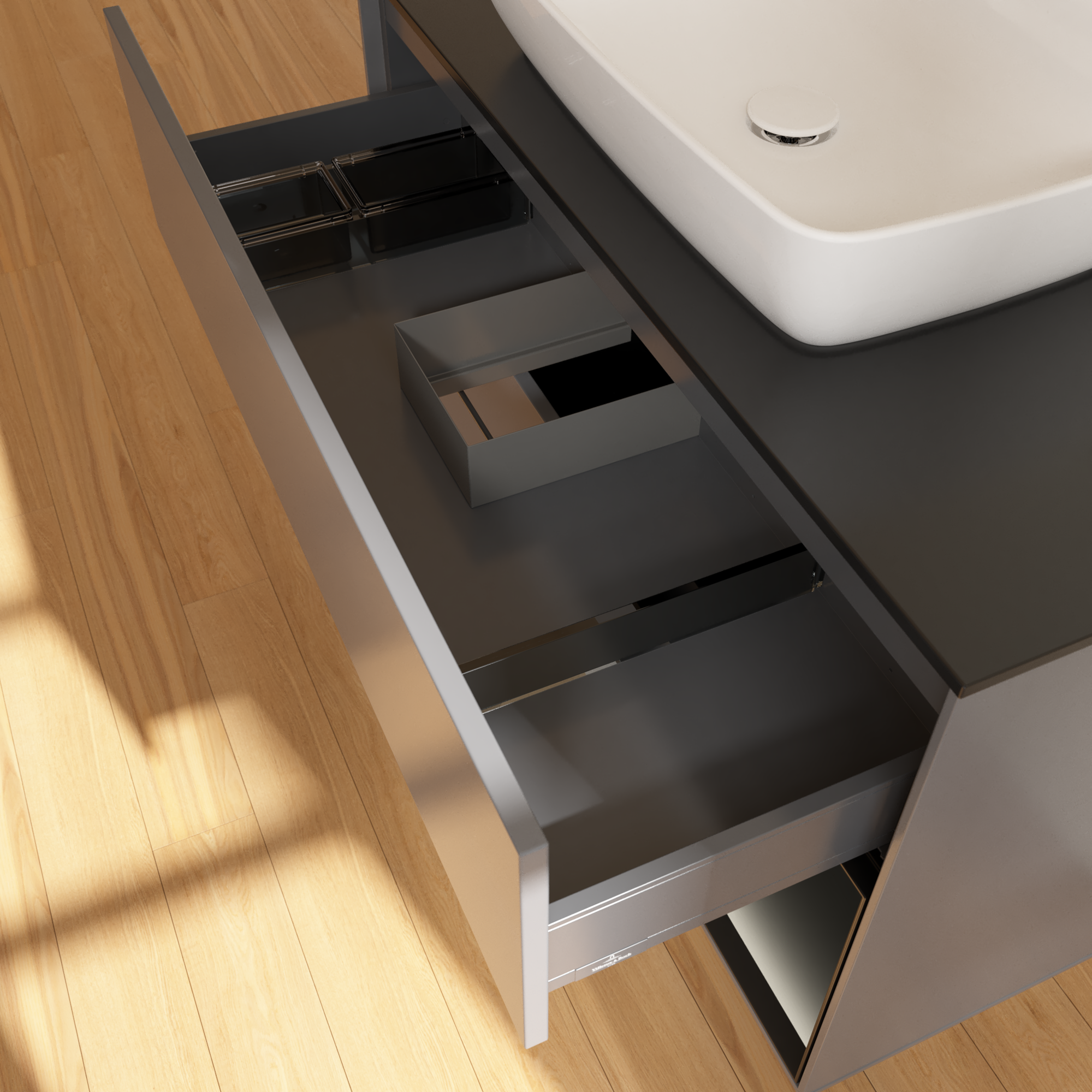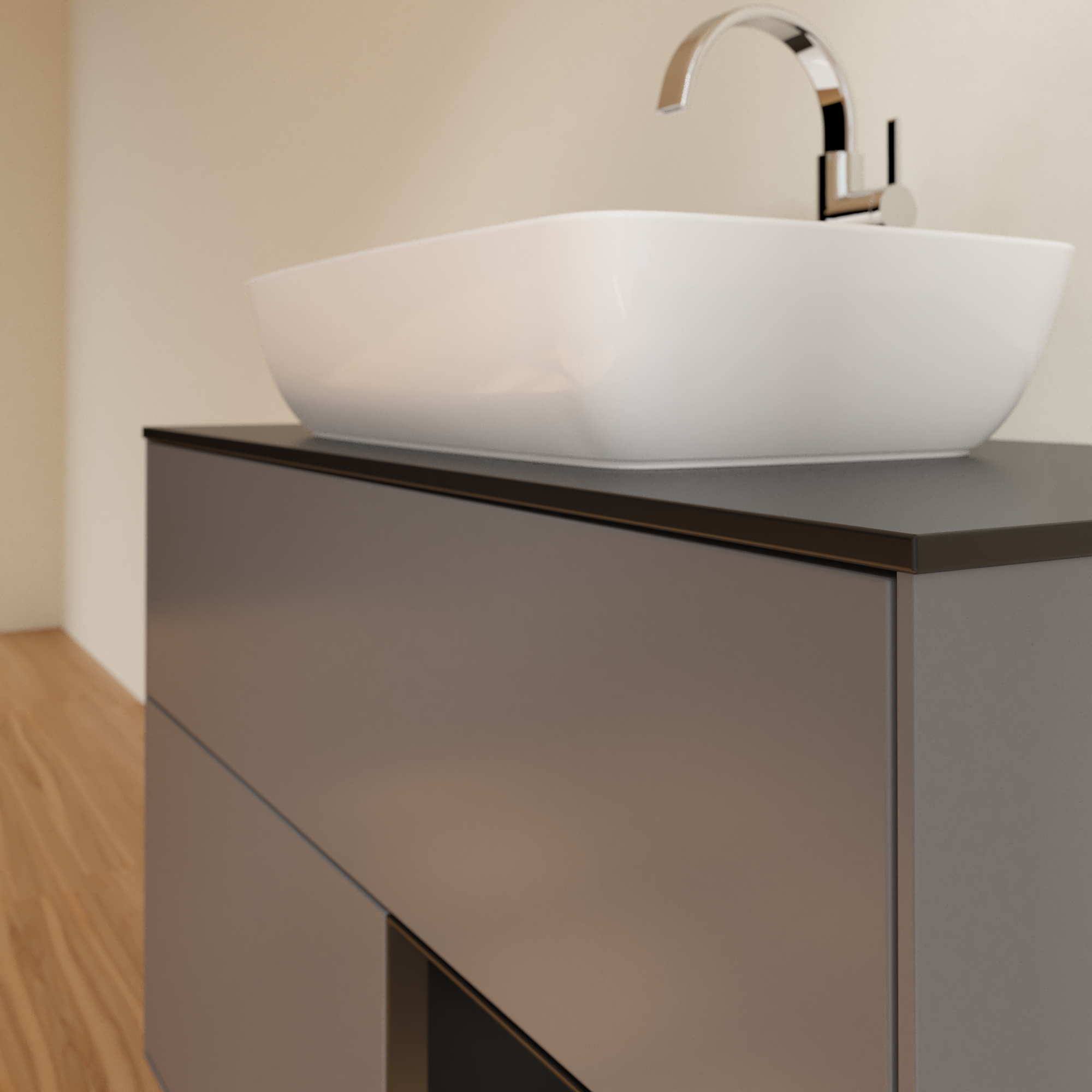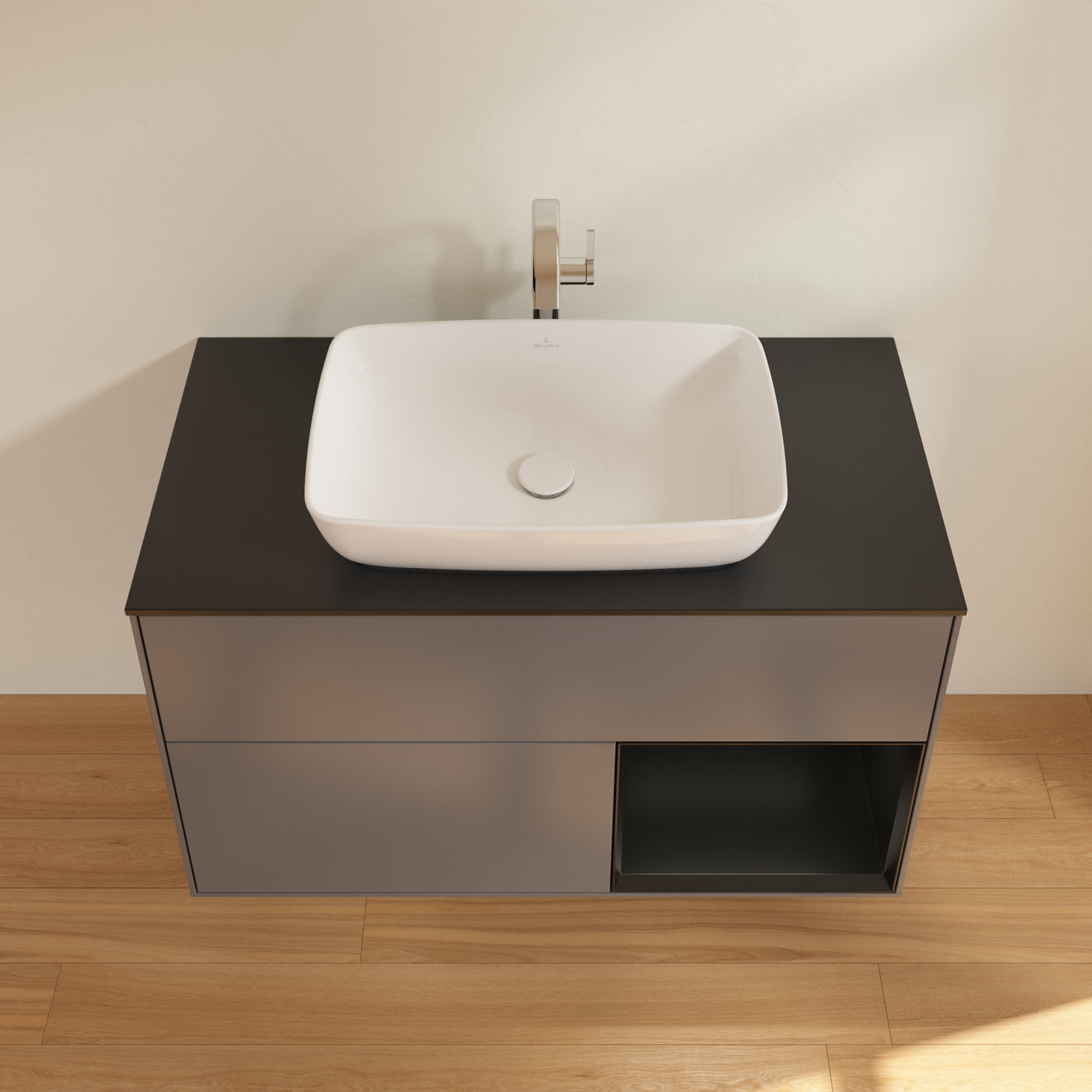 Finion Szafka podumywalkowa, z oświetleniem, 2 elementy wysuwane, 1000x603x501mm, Korpus: Anthracite Matt Lacquer, Front: Anthracite Matt Lacquer, Element regałowy: Black Matt Lacquer, Blat: Glass Black Matt