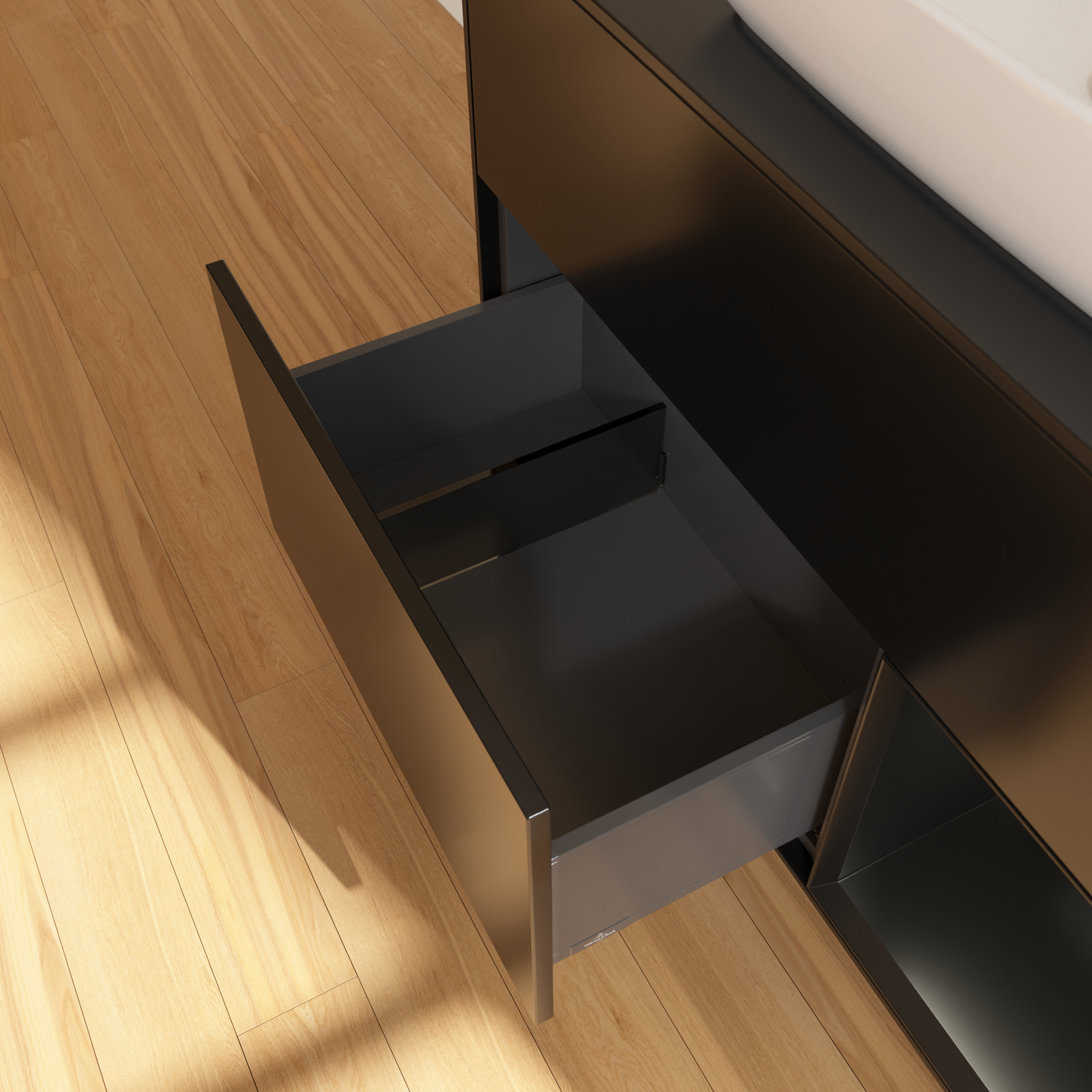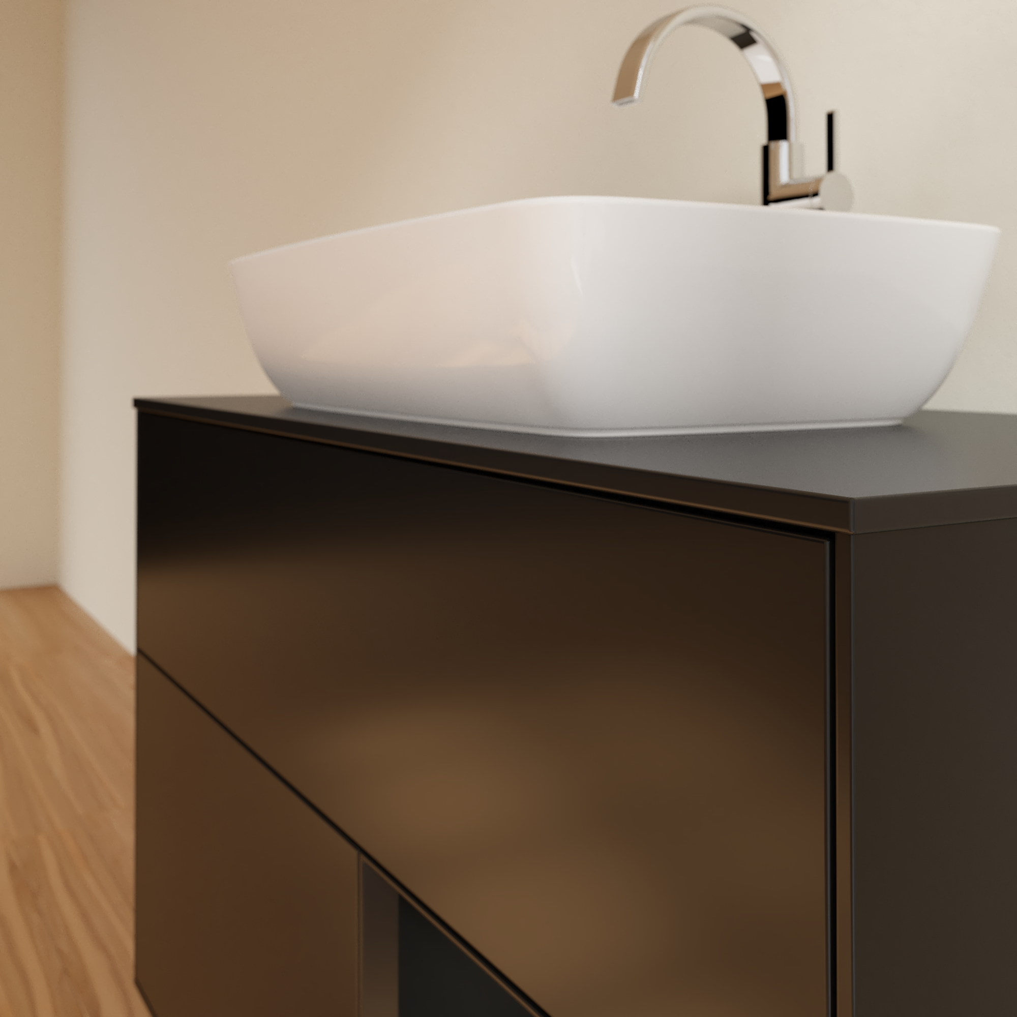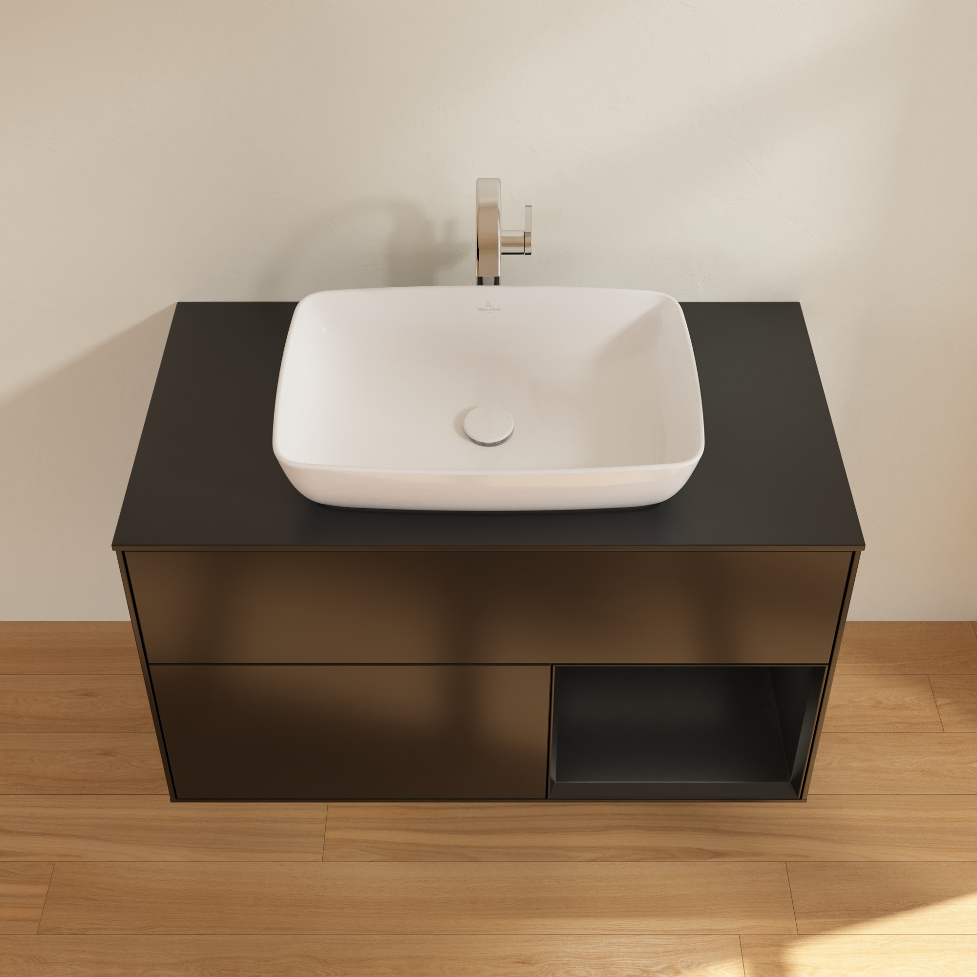 Finion Szafka podumywalkowa, z oświetleniem, 2 elementy wysuwane, 1000x603x501mm, Korpus: Black Matt Lacquer, Front: Black Matt Lacquer, Element regałowy: Black Matt Lacquer, Blat: Glass Black Matt