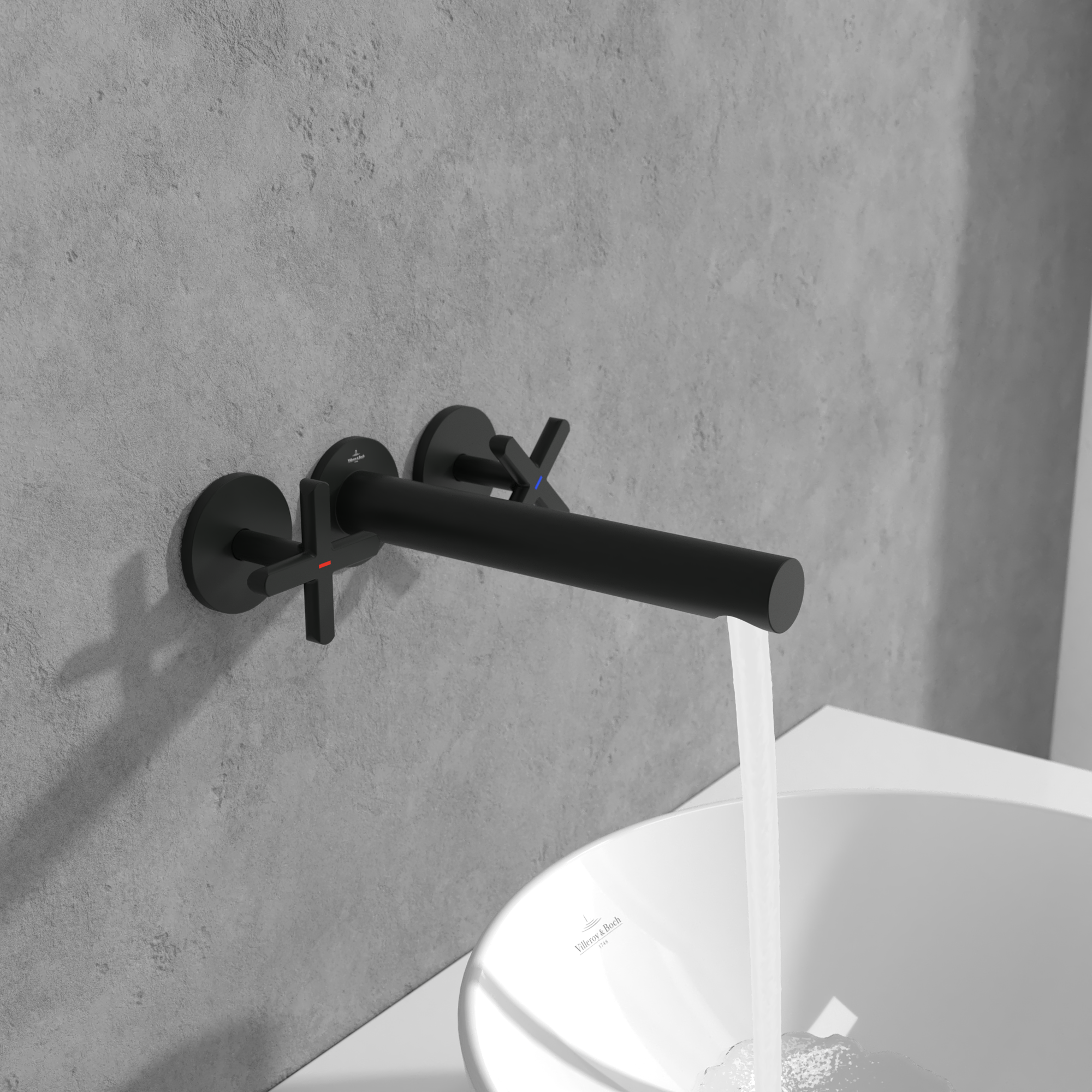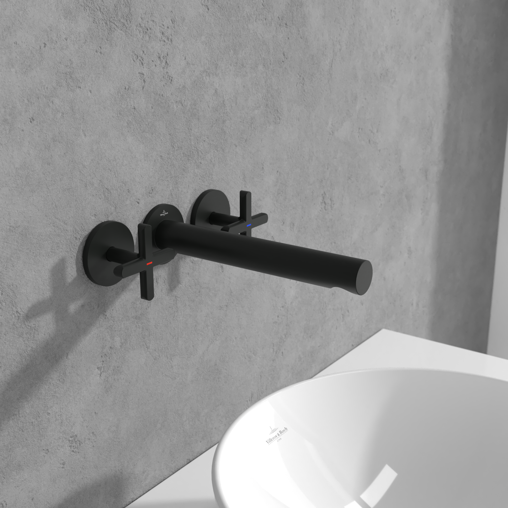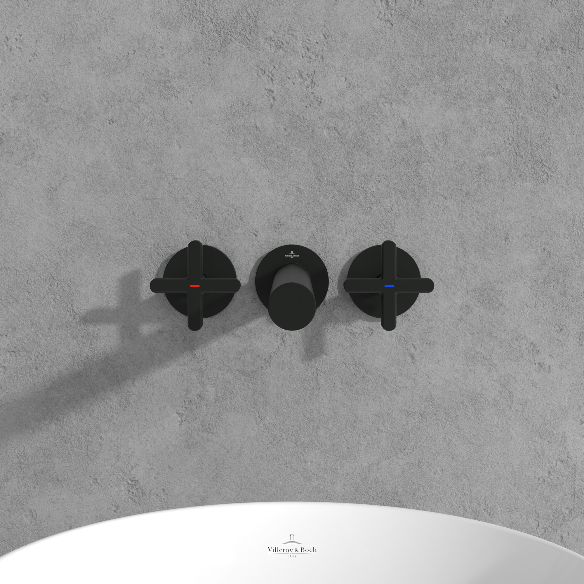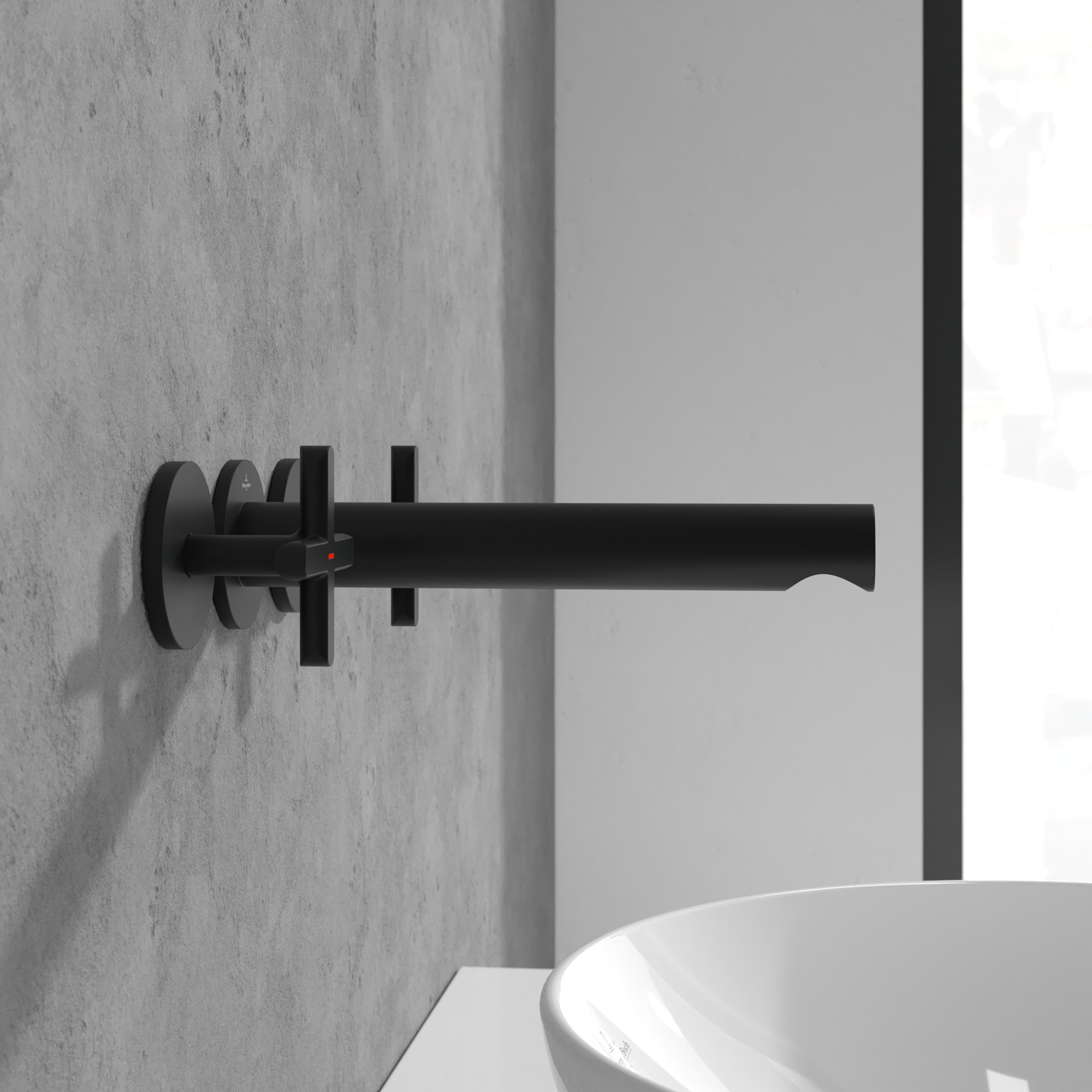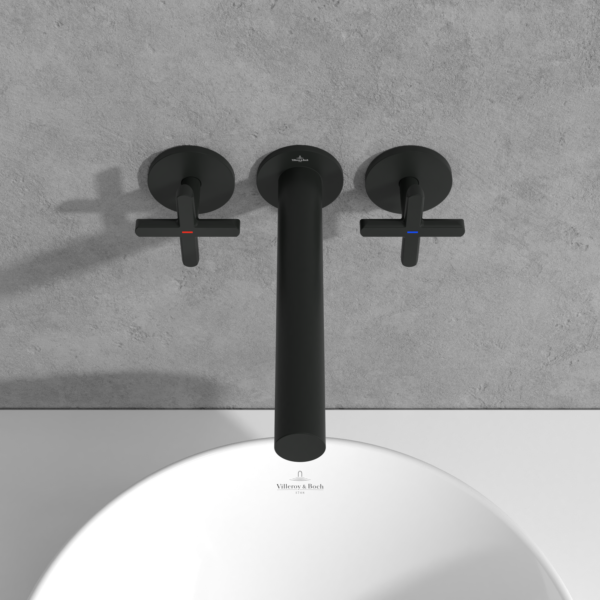 Loop & Friends Bateria umywalkowa trzyotworowa, Bez zestawu odpływowego, Matt Black