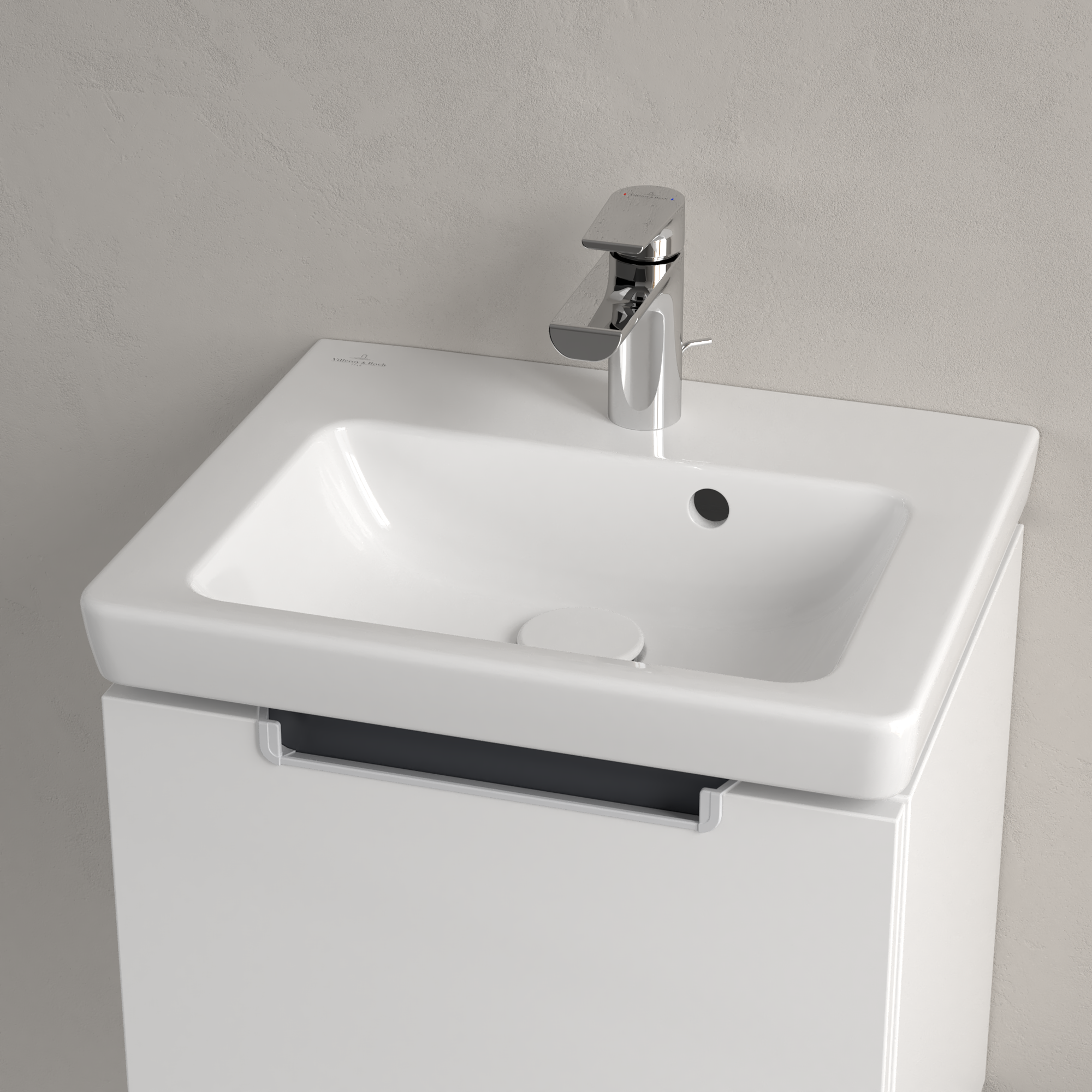 Subway 2.0 Umywalka mała, 450x370x155mm, z przelewem, Weiss Alpin CeramicPlus