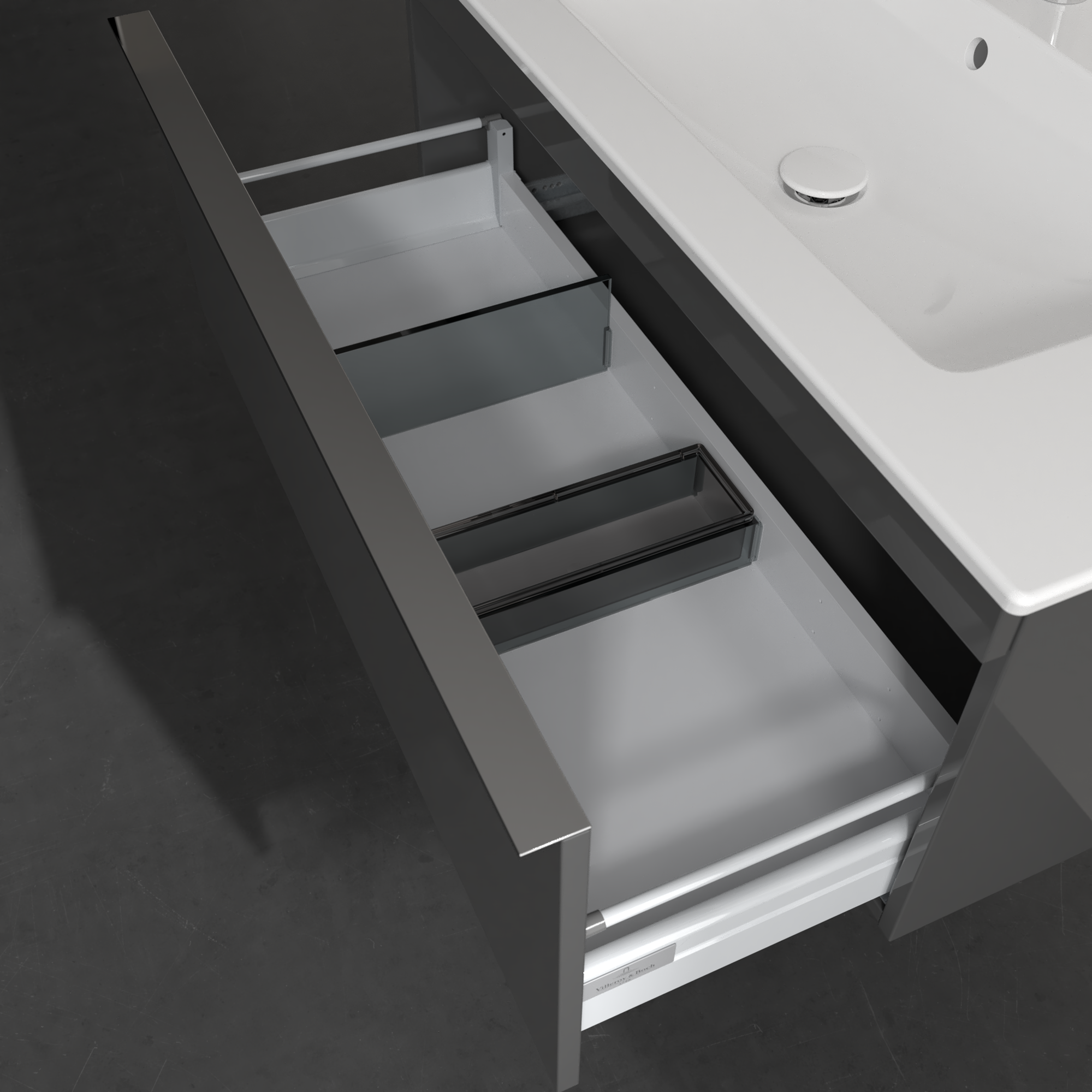 Venticello Szafka podumywalkowa, 1 element wysuwany, 953x420x502mm, Korpus: Glossy Grey, Front: Glossy Grey