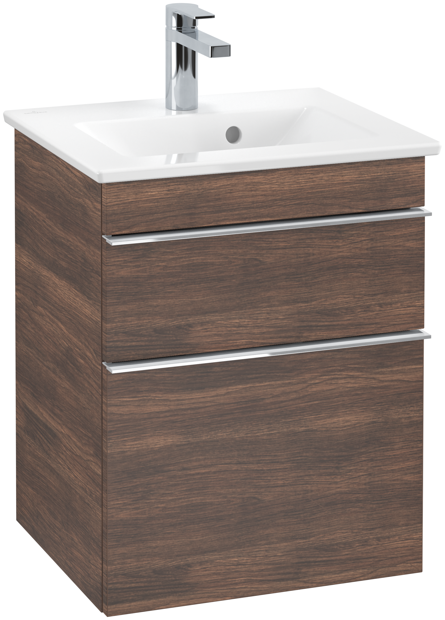 - Vanity unit with 2 drawers (division of 1/3 to 2/3) for a height of 59 cm or 1 deep drawer for a height of 42 cm, for vanity units wider than 120 cm twice the number of drawers, with elegant handles and popular colours rounding everything off. Supplement with two different tall cabinets and/or one side cabinet - tailored to meet your customer's every desire.