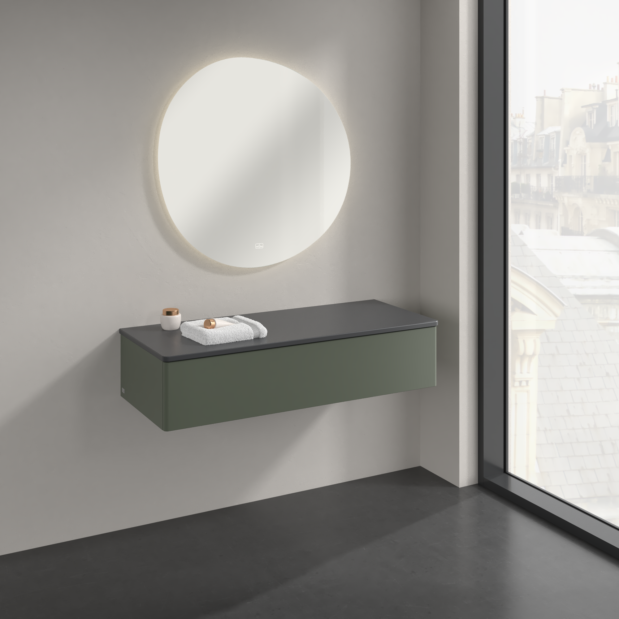 Antao Sideboard, 1 pull-out compartment, 1200x268x500mm, Front without structure, Body: Leaf Green Matt Lacquer, Front: Leaf Green Matt Lacquer, Cover plate: Honey Oak