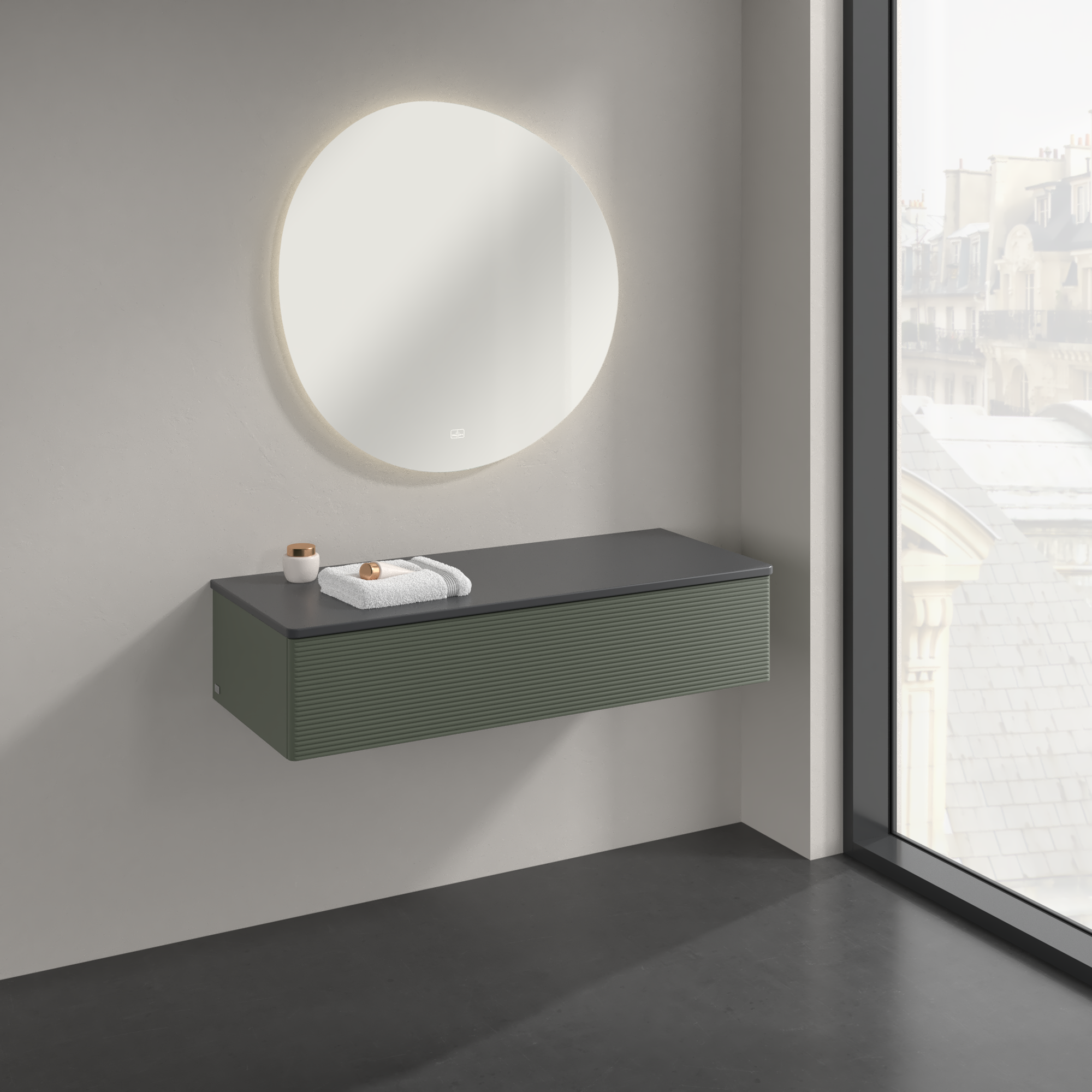 Antao Sideboard, 1 pull-out compartment, 1200x268x500mm, Front with grain texture, Body: Leaf Green Matt Lacquer, Front: Leaf Green Matt Lacquer, Cover plate: Honey Oak