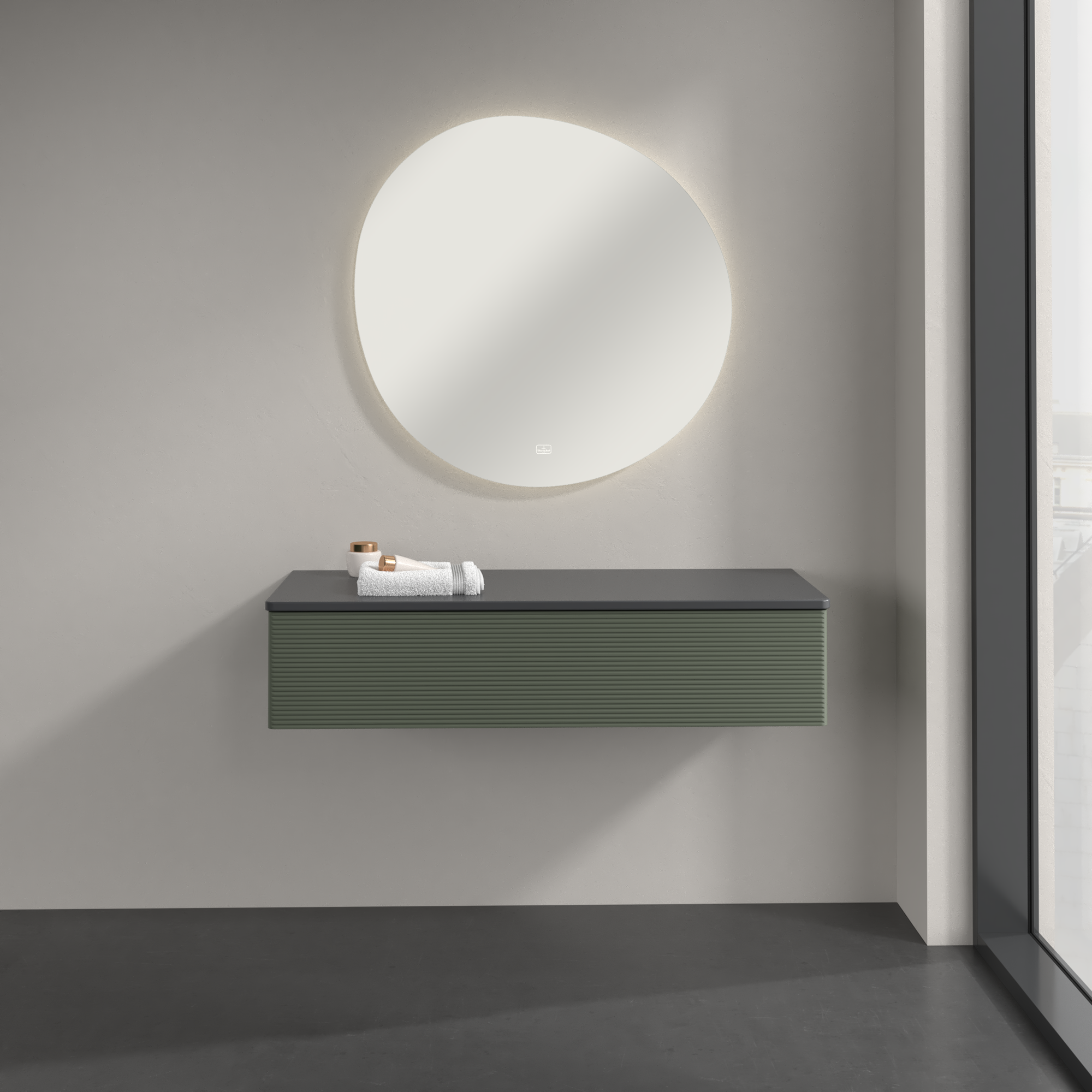 Antao Sideboard, 1 pull-out compartment, 1200x268x500mm, Front with grain texture, Body: Leaf Green Matt Lacquer, Front: Leaf Green Matt Lacquer, Cover plate: Botticino