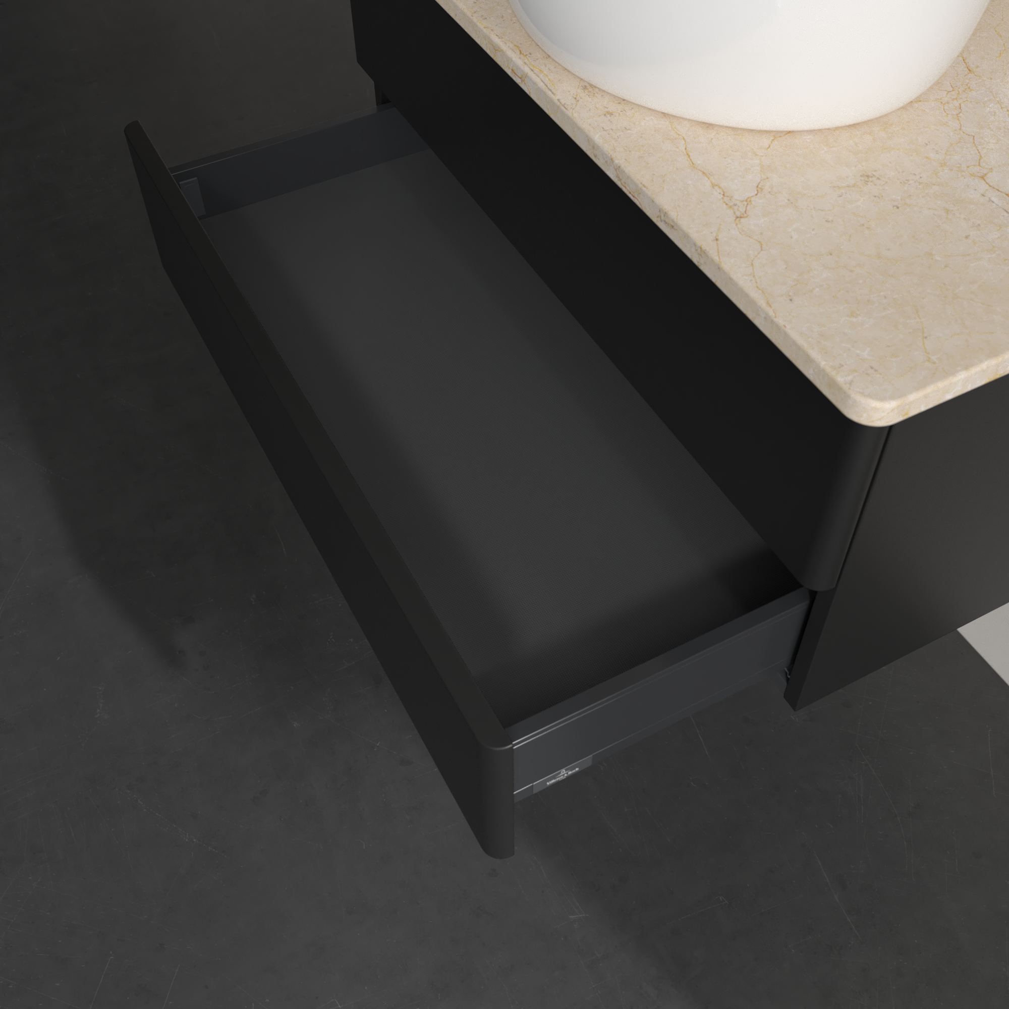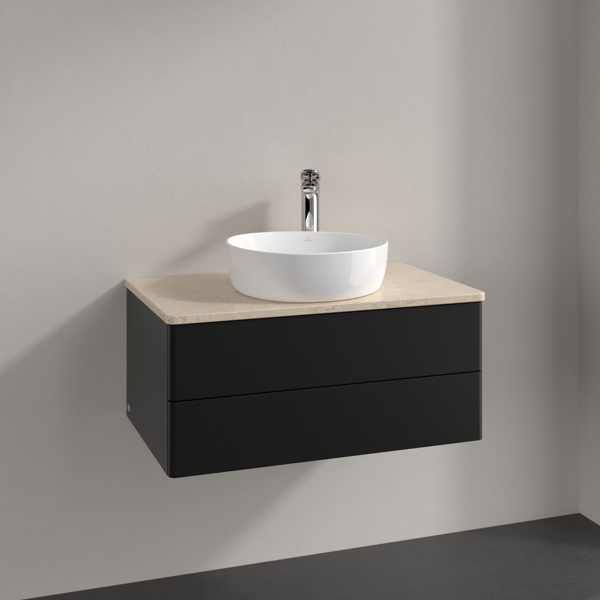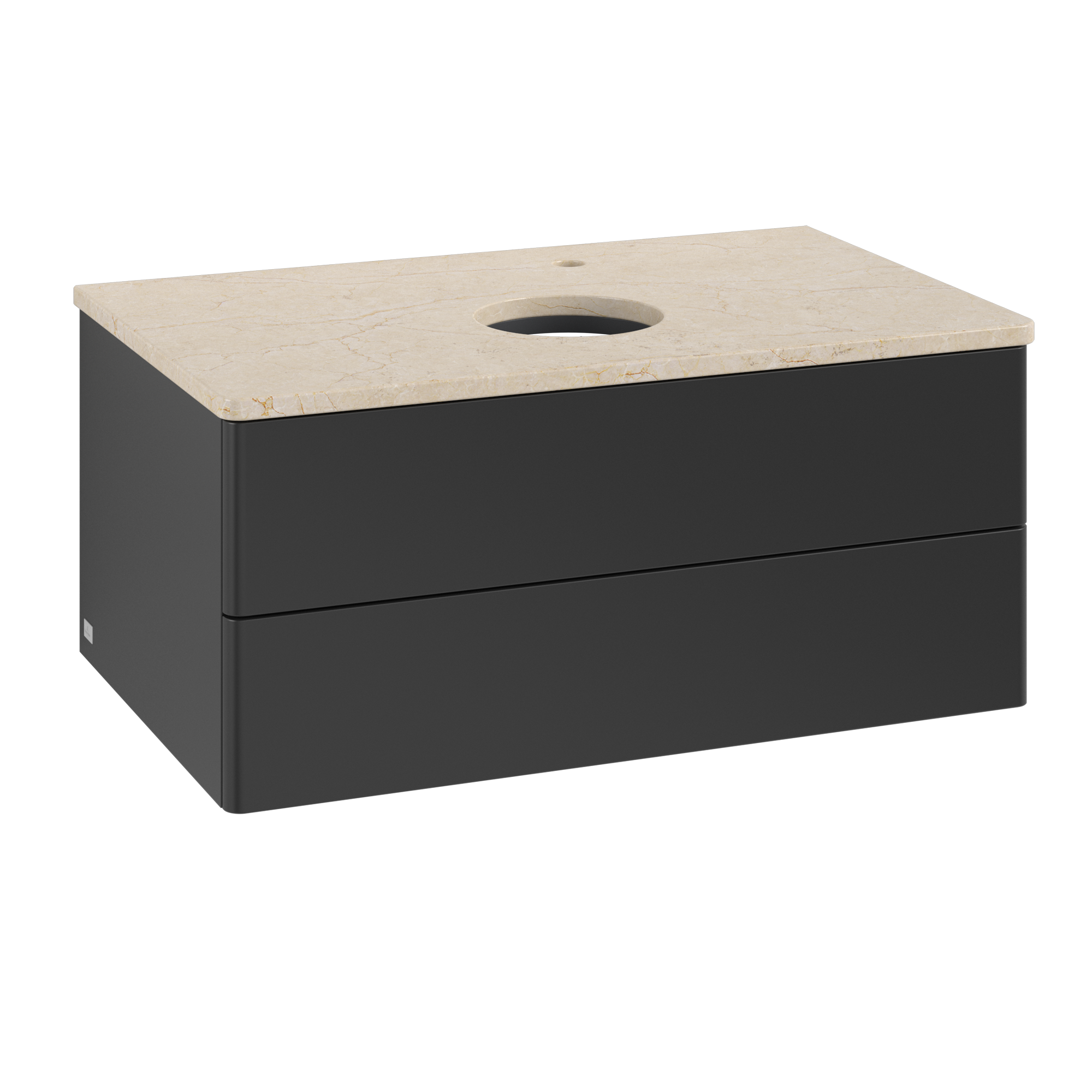 Antao Vanity unit, 2 pull-out compartments, 800x360x500mm, Front without structure, Body: Black Matt Lacquer, Front: Black Matt Lacquer, Cover plate: Botticino