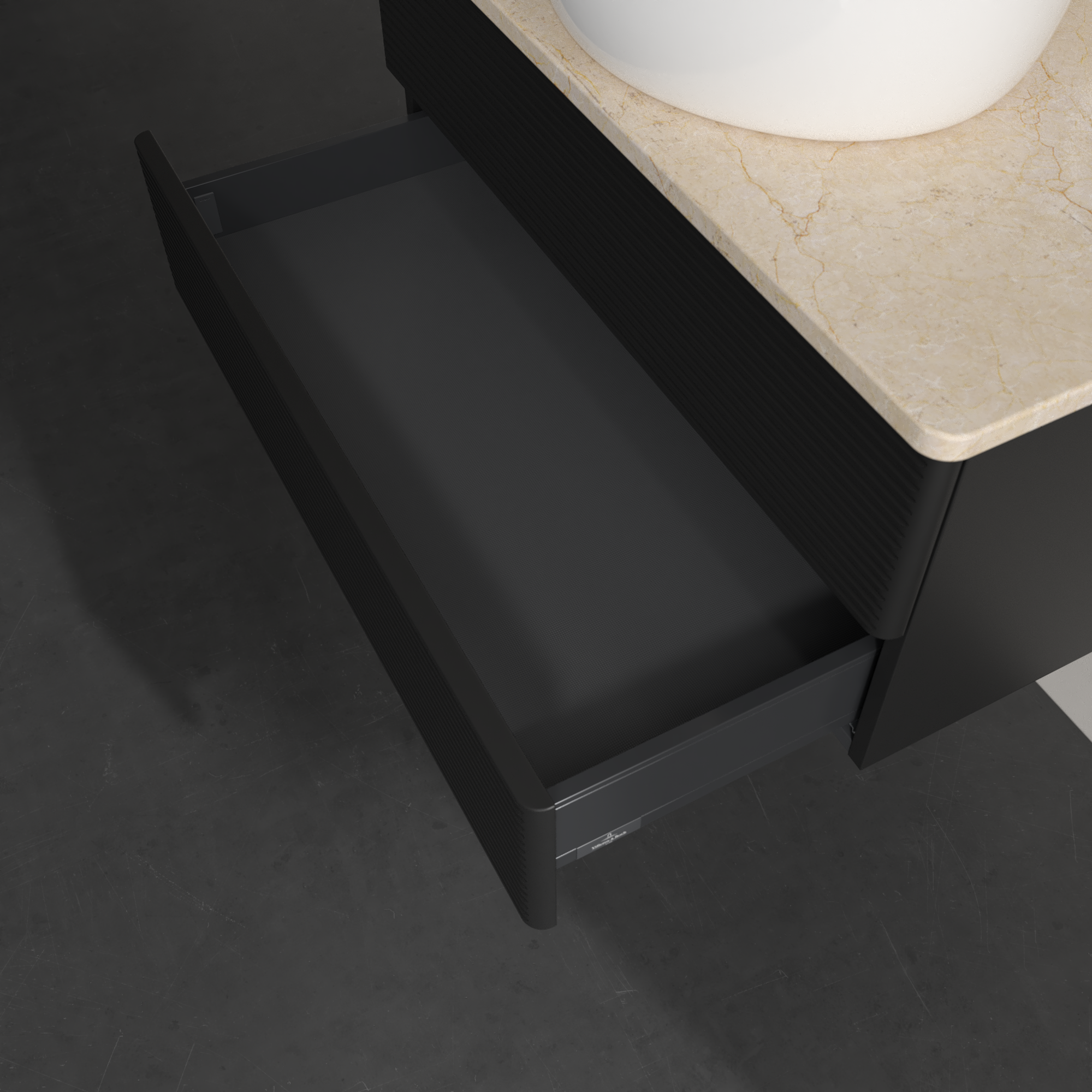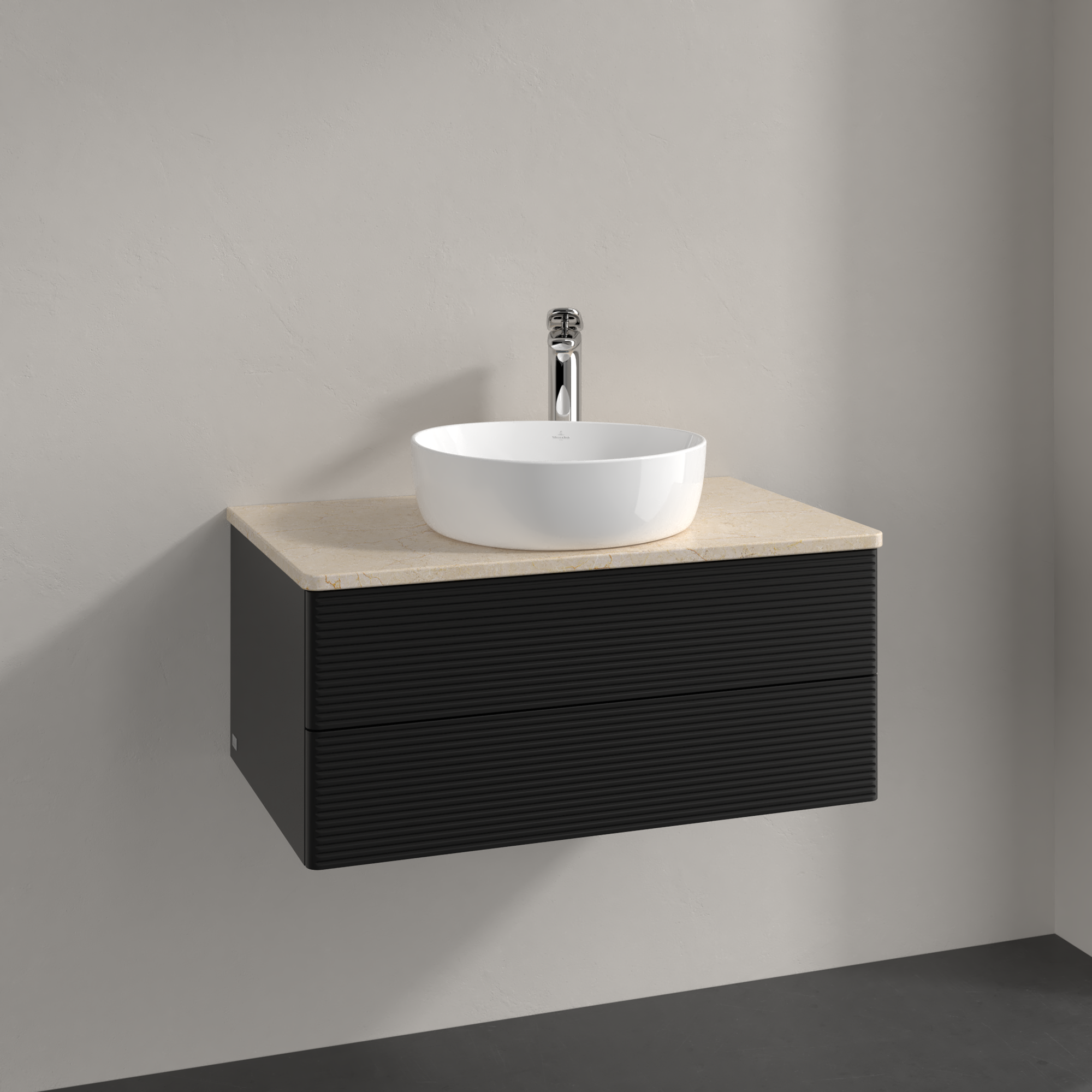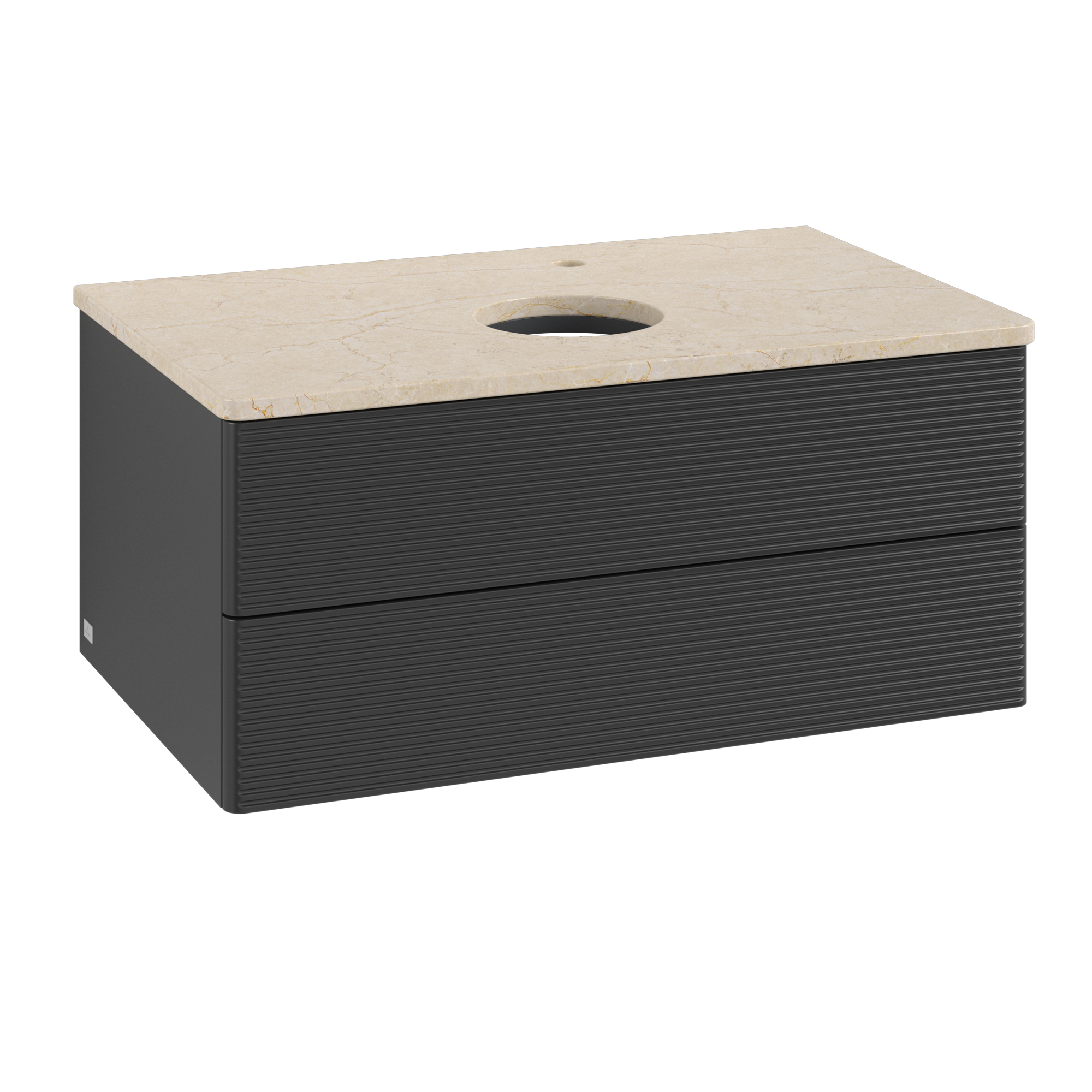 Antao Vanity unit, 2 pull-out compartments, 800x360x500mm, Front with grain texture, Body: Black Matt Lacquer, Front: Black Matt Lacquer, Cover plate: Botticino