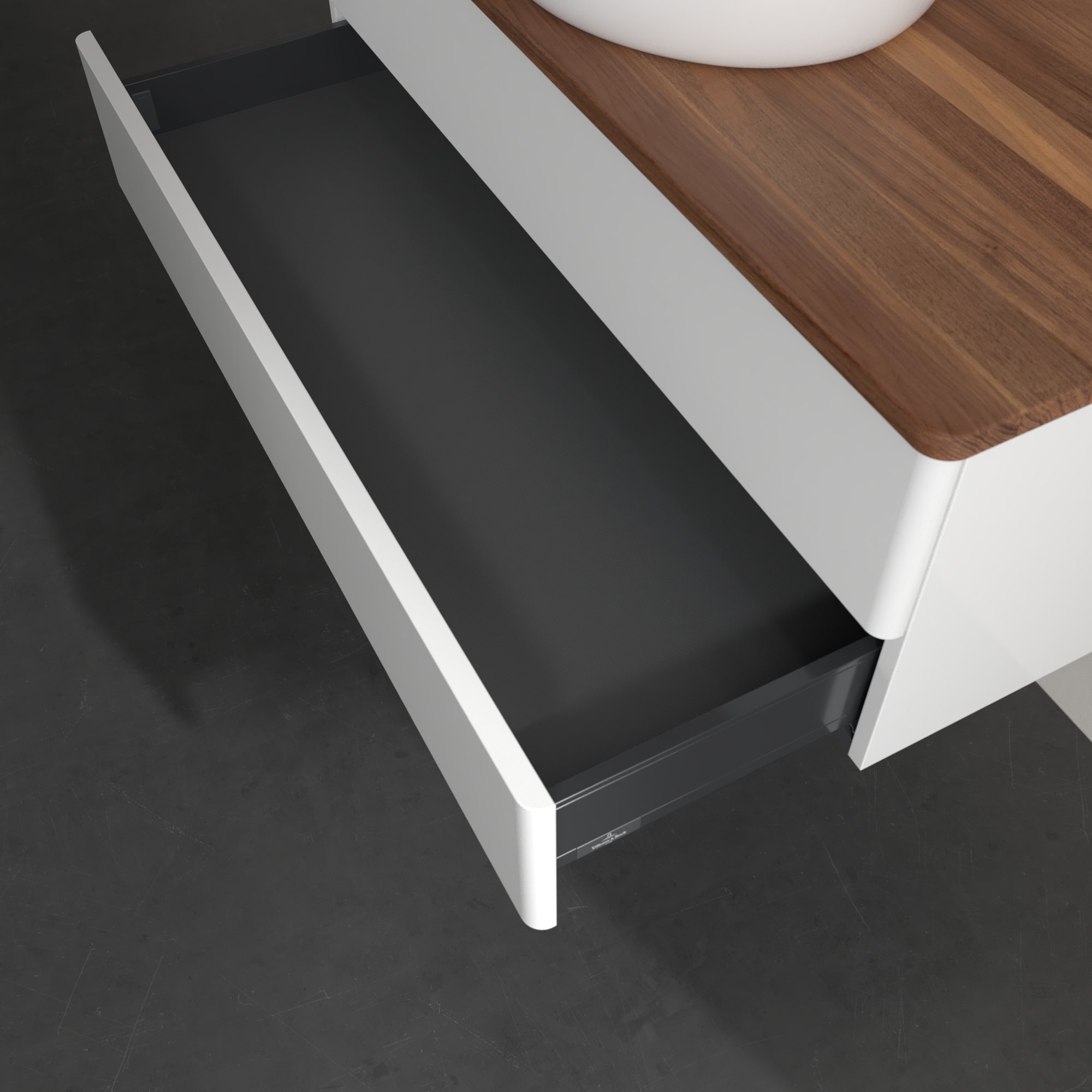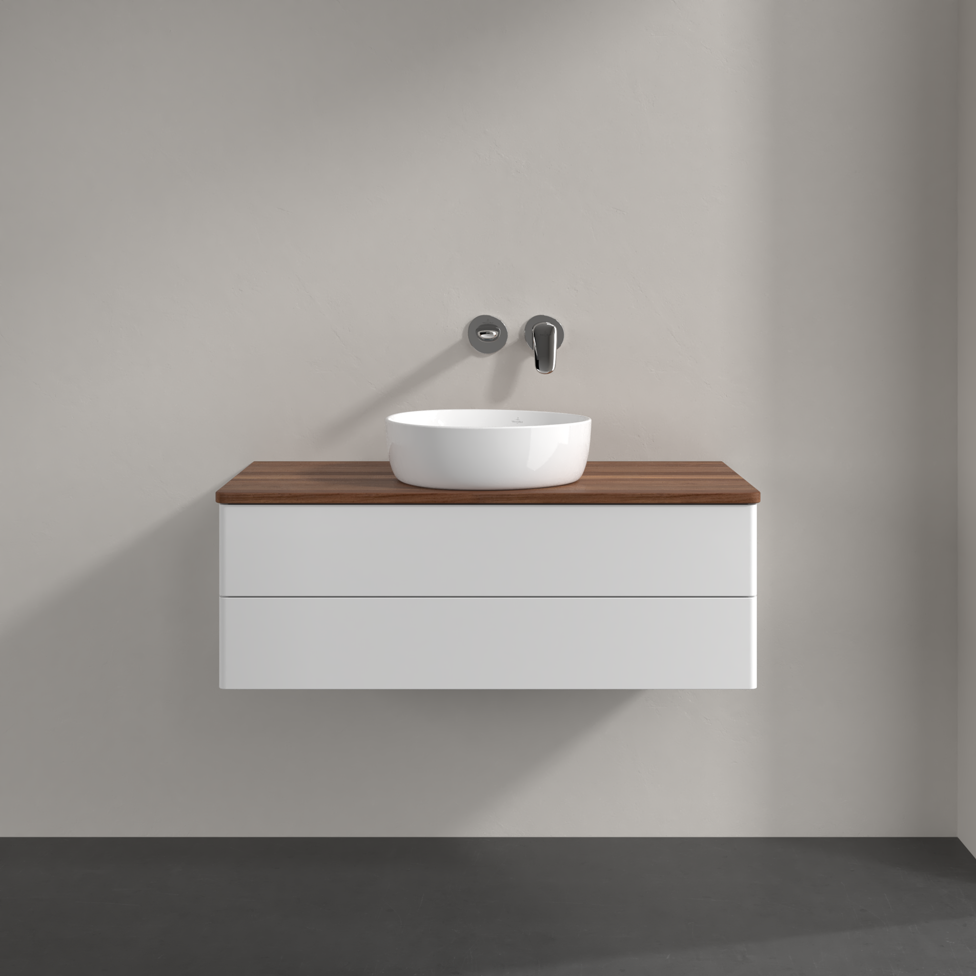 Antao Vanity unit, 2 pull-out compartments, 1000x360x500mm, Front without structure, Body: Glossy White Lacquer, Front: Glossy White Lacquer, Cover plate: Warm Walnut