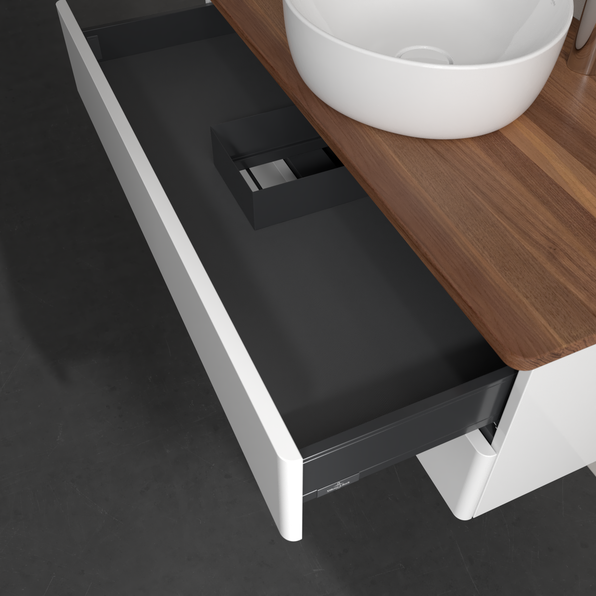 Antao Vanity unit, 2 pull-out compartments, 1000x360x500mm, Front without structure, Body: Glossy White Lacquer, Front: Glossy White Lacquer, Cover plate: Warm Walnut