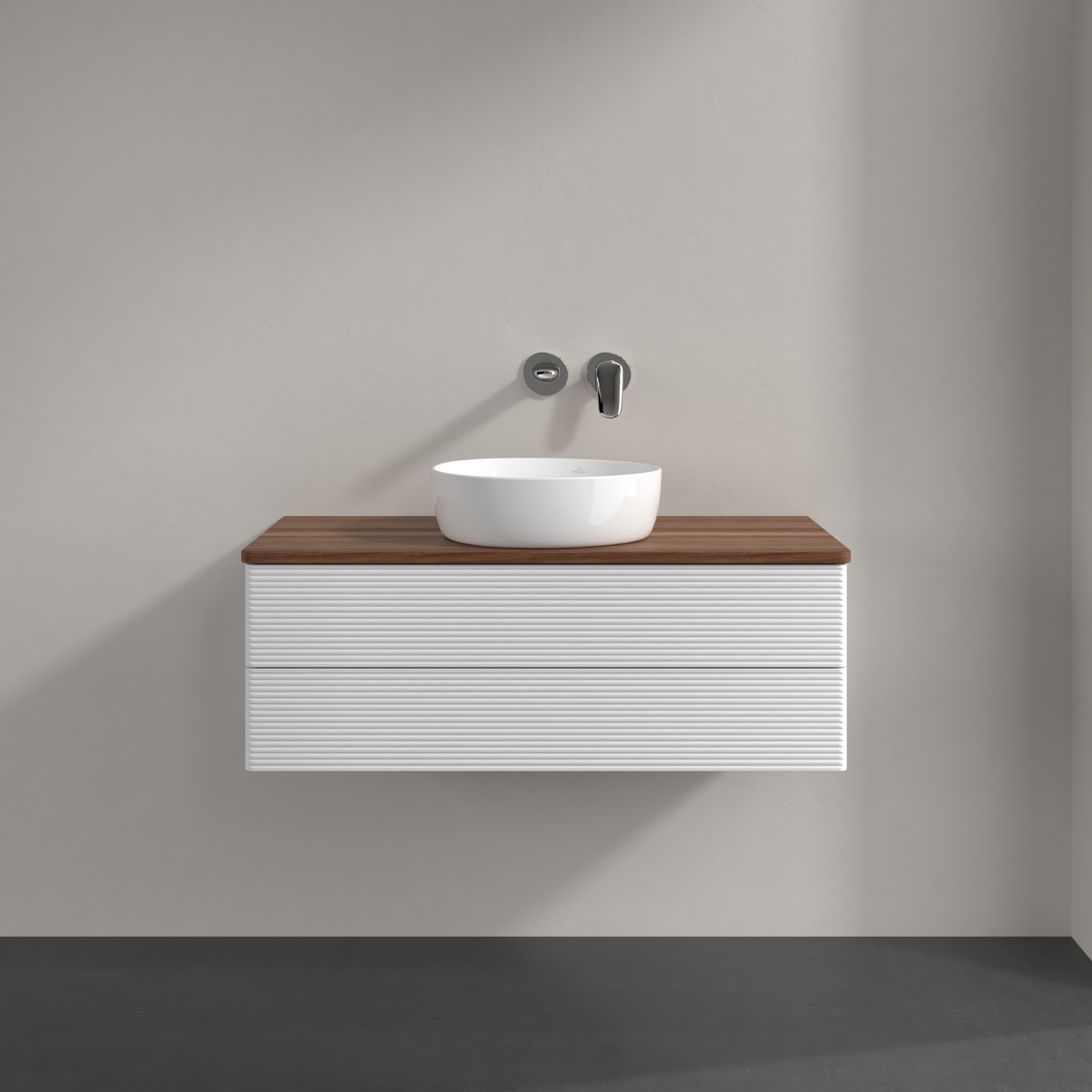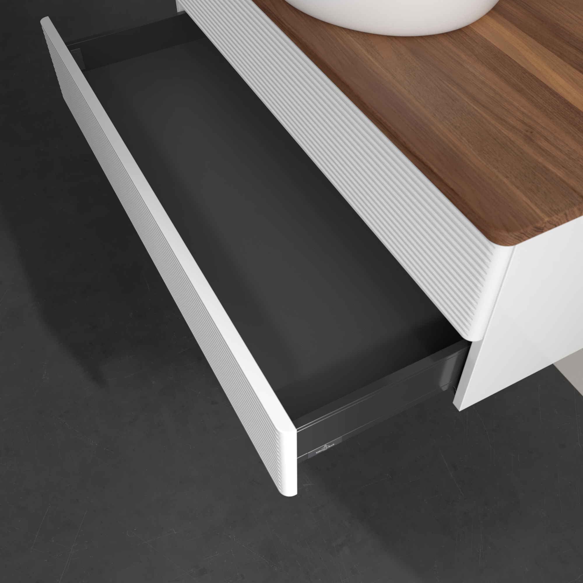 Antao Vanity unit, 2 pull-out compartments, 1000x360x500mm, Front with grain texture, Body: Glossy White Lacquer, Front: Glossy White Lacquer, Cover plate: Warm Walnut