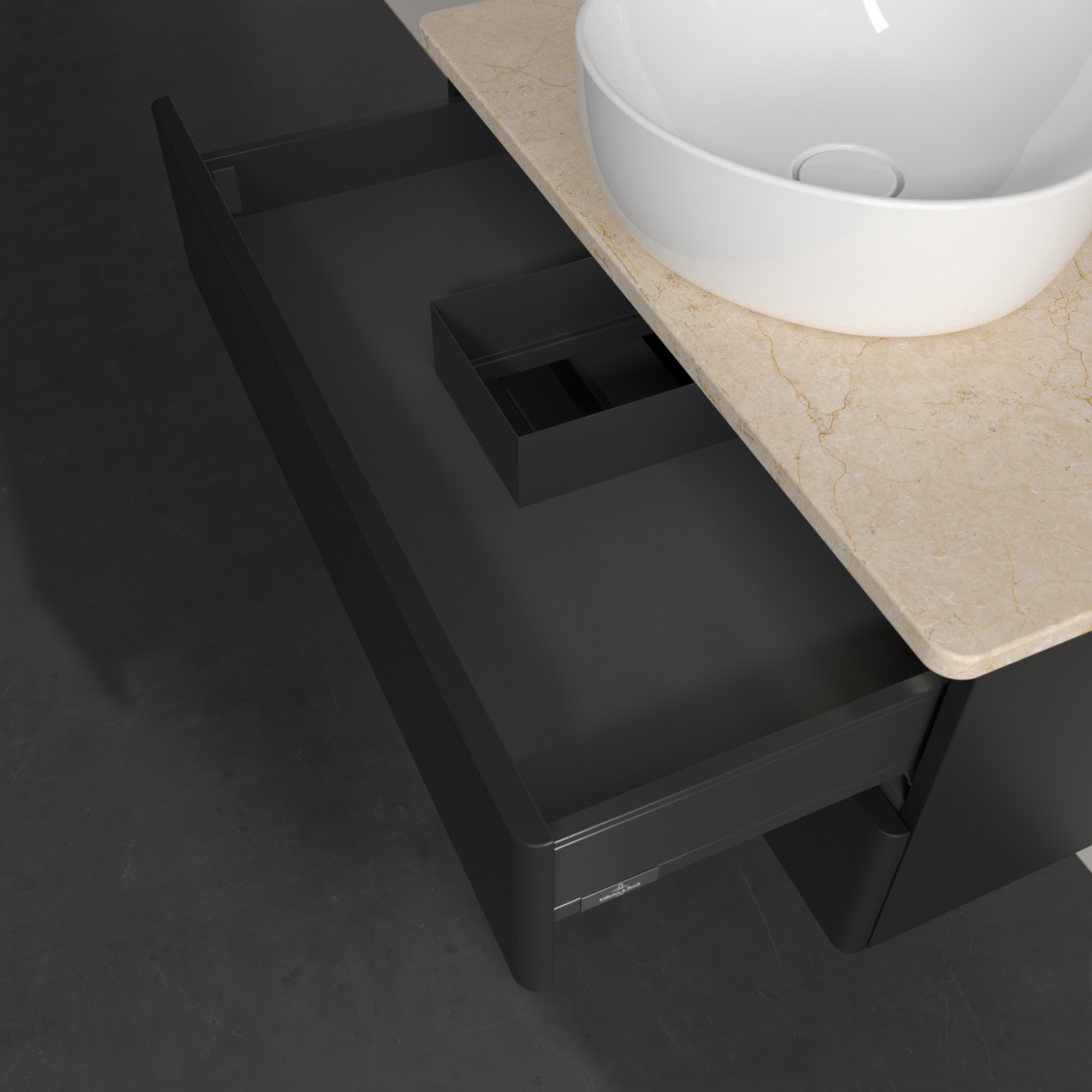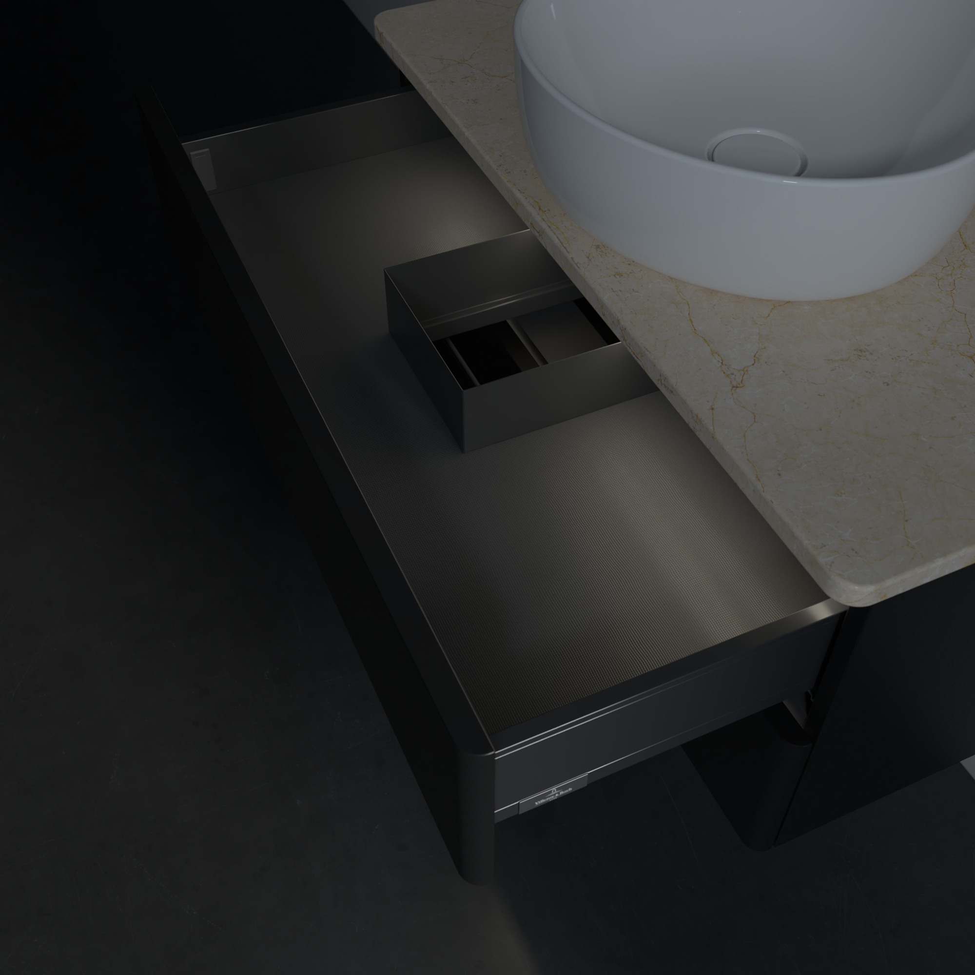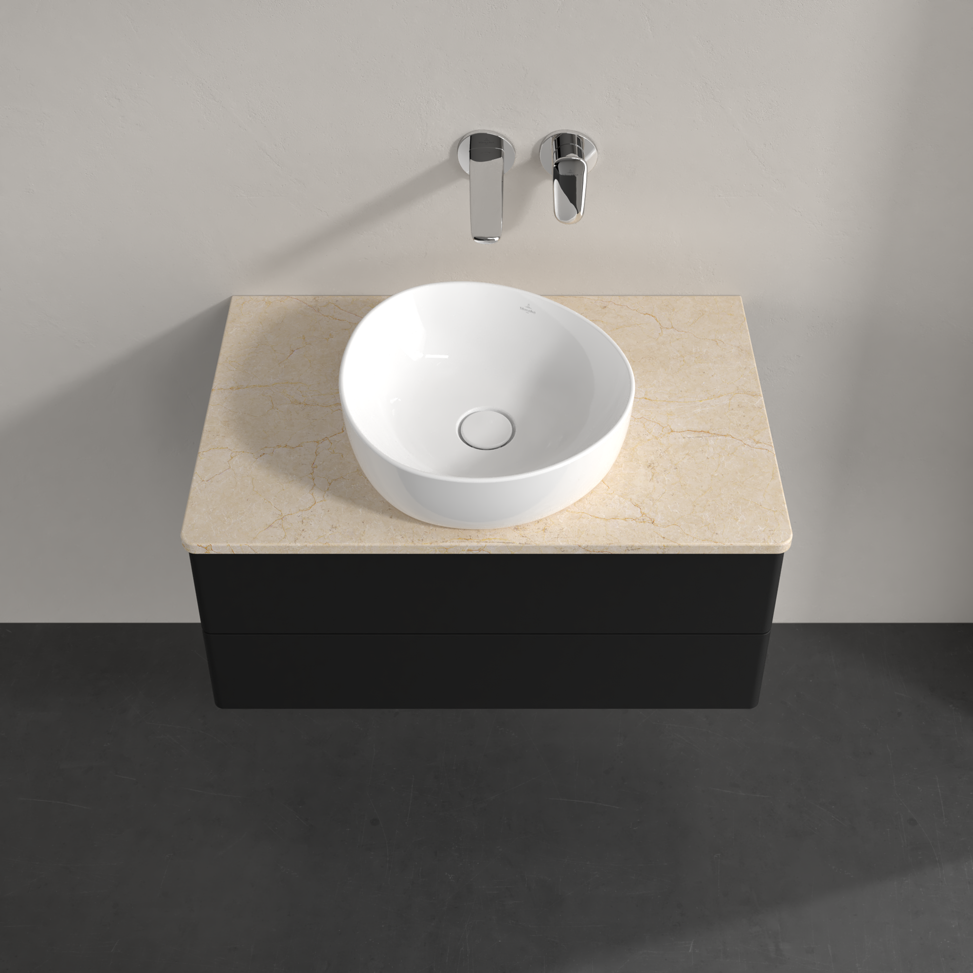 Antao Vanity unit, with lighting, 2 pull-out compartments, 800x360x500mm, Front without structure, Body: Black Matt Lacquer, Front: Black Matt Lacquer, Cover plate: Botticino