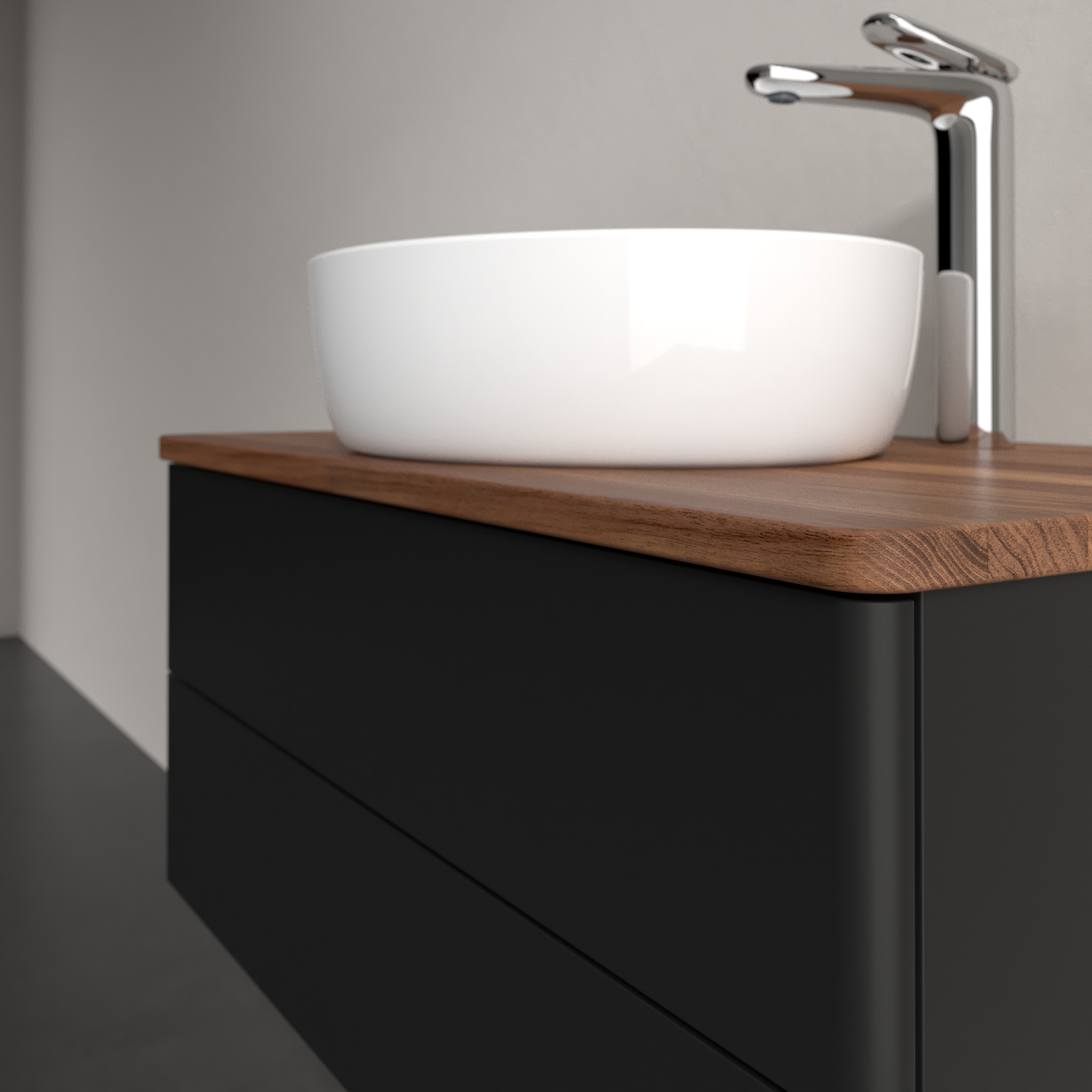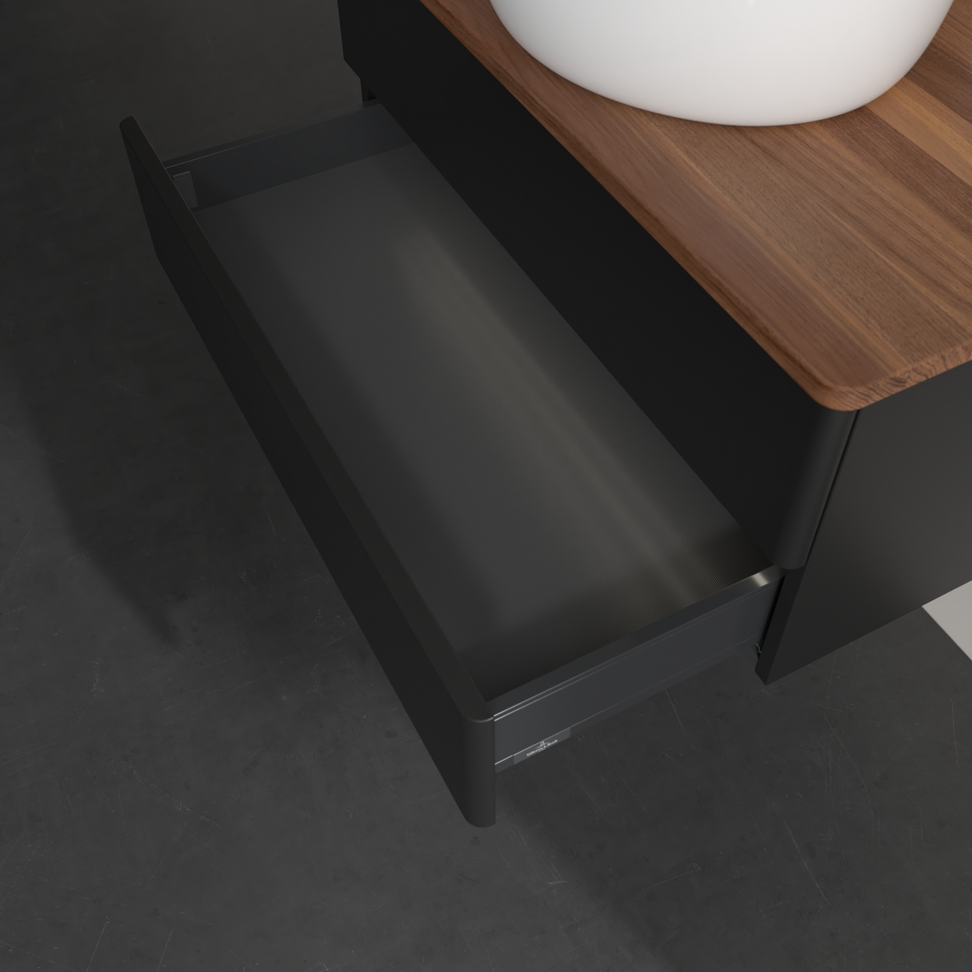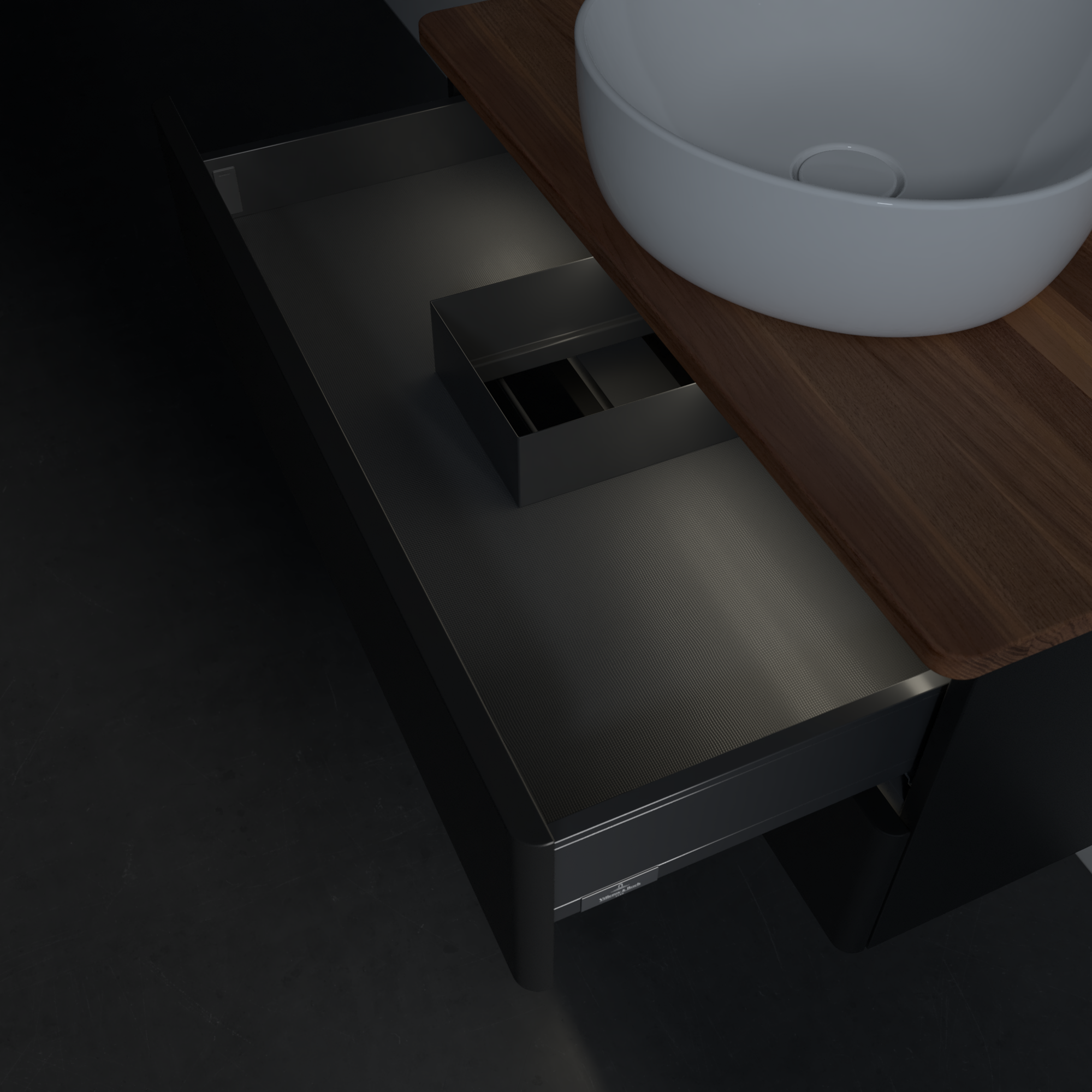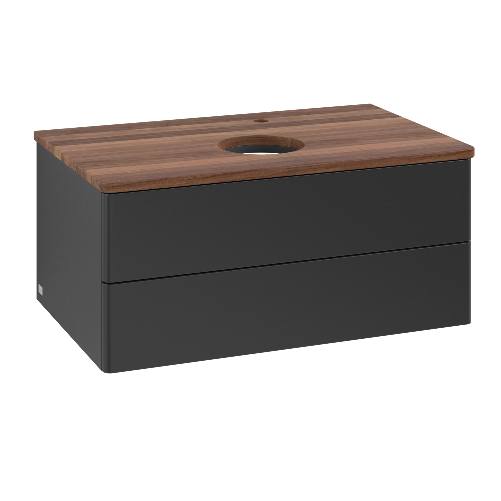 Antao Vanity unit, with lighting, 2 pull-out compartments, 800x360x500mm, Front without structure, Body: Black Matt Lacquer, Front: Black Matt Lacquer, Cover plate: Warm Walnut