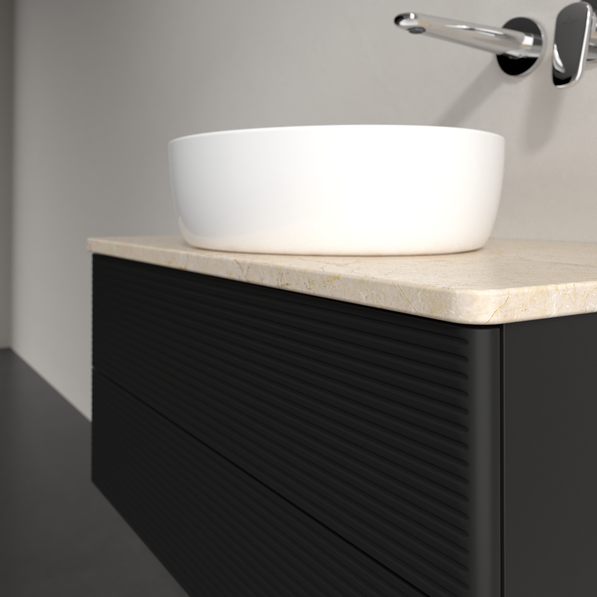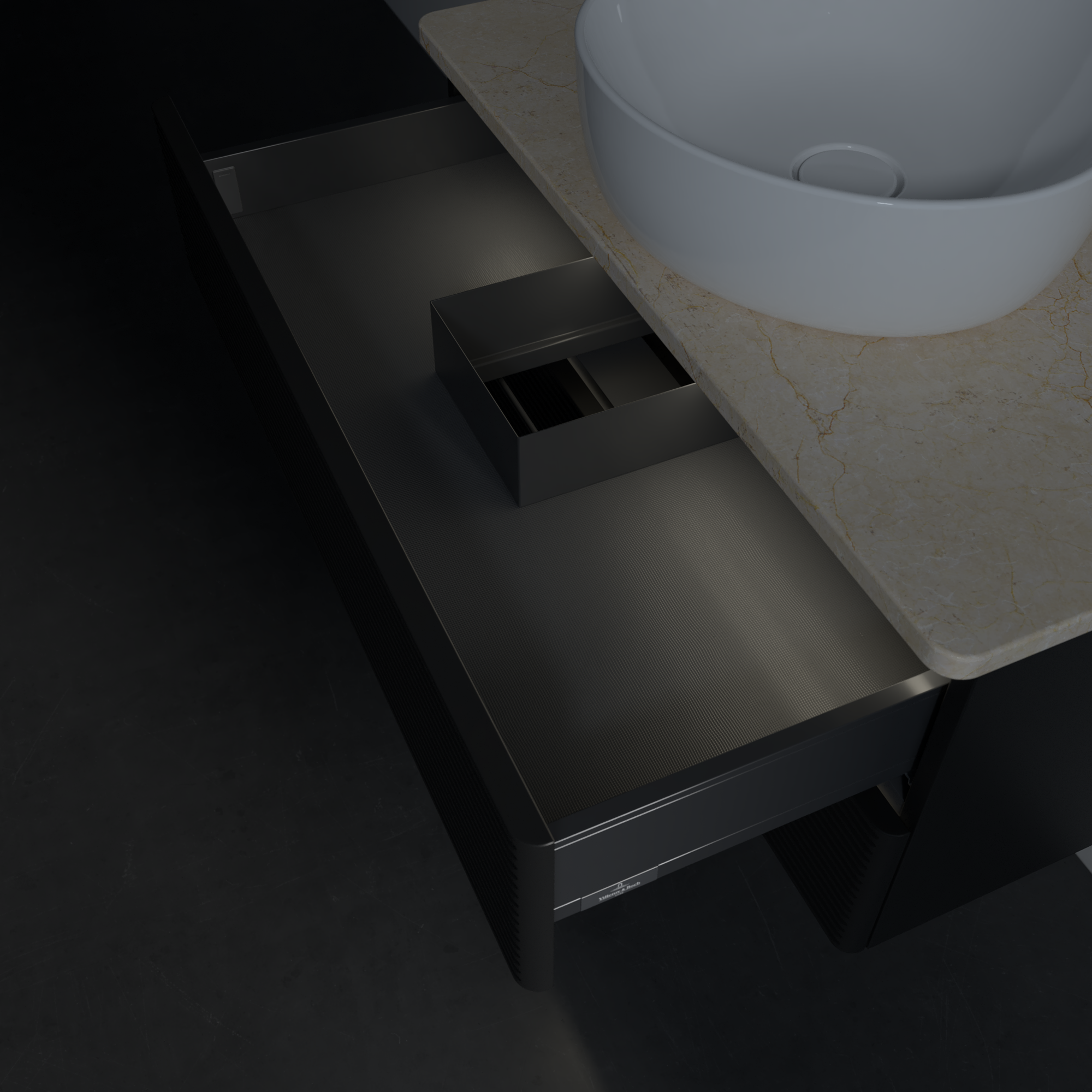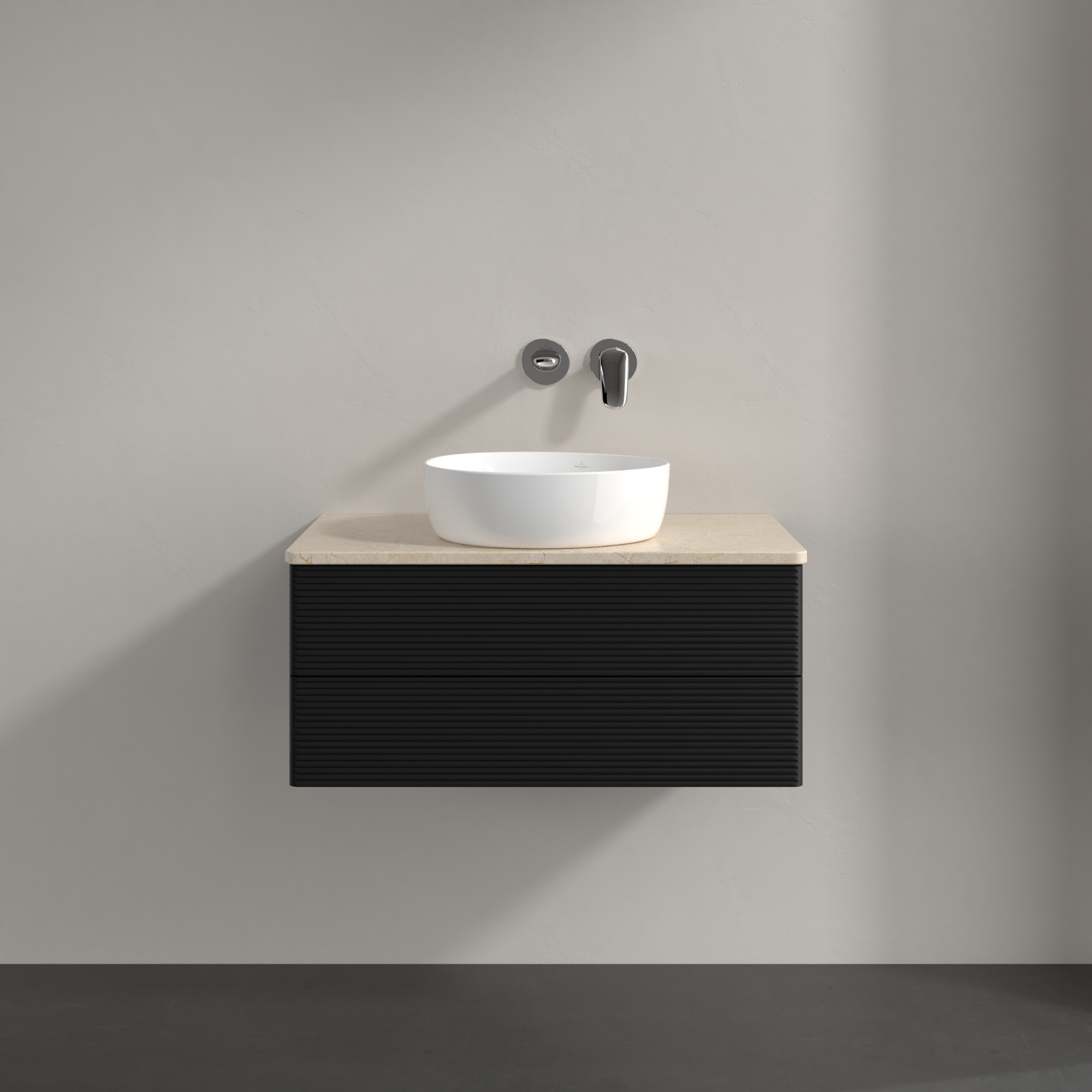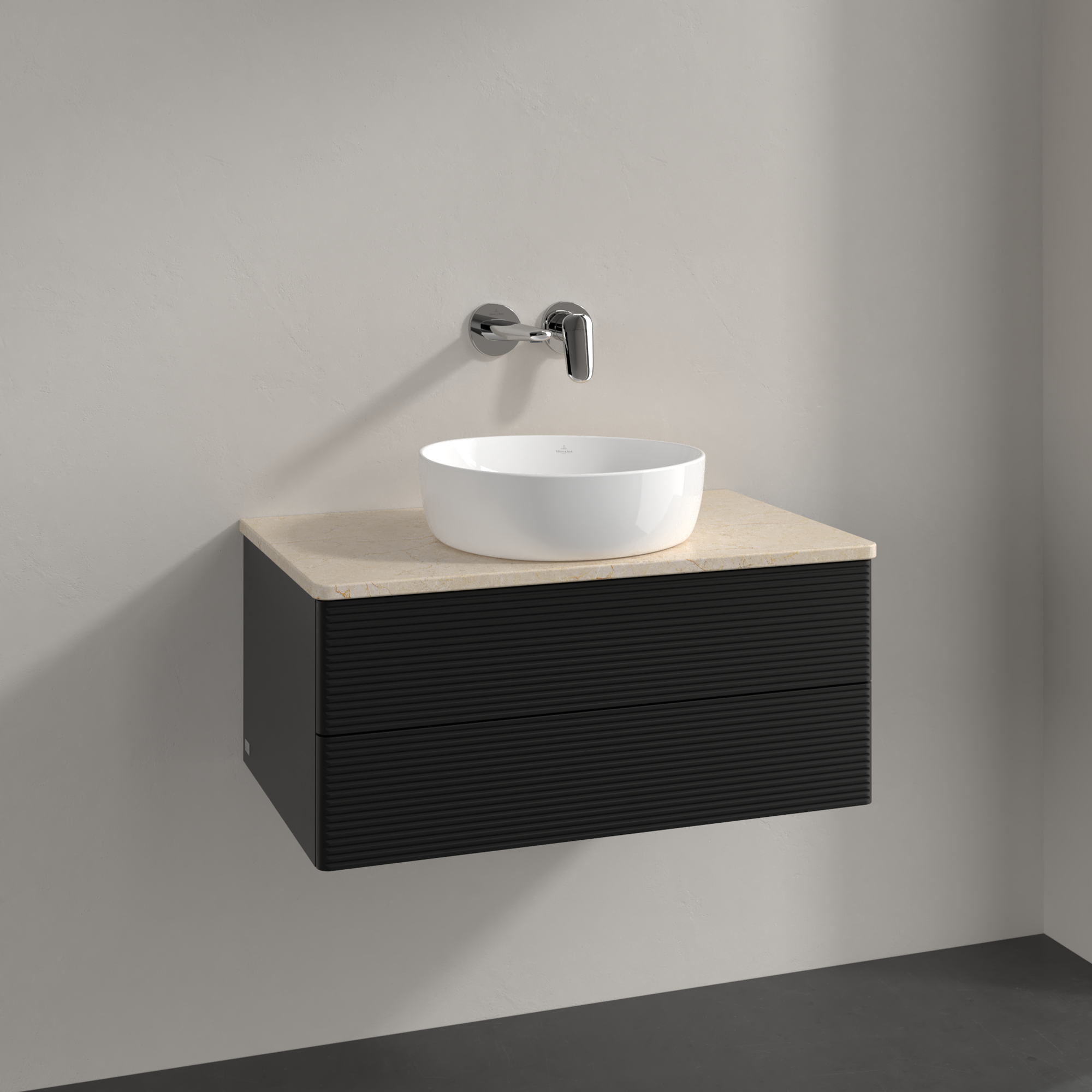 Antao Vanity unit, with lighting, 2 pull-out compartments, 800x360x500mm, Front with grain texture, Body: Black Matt Lacquer, Front: Black Matt Lacquer, Cover plate: Botticino