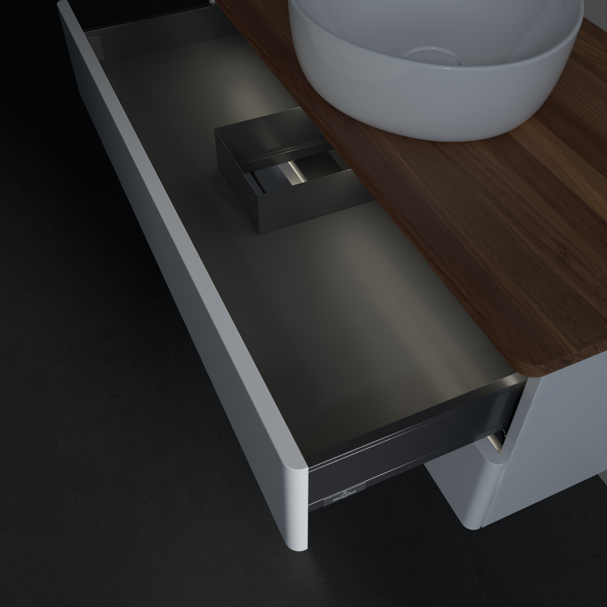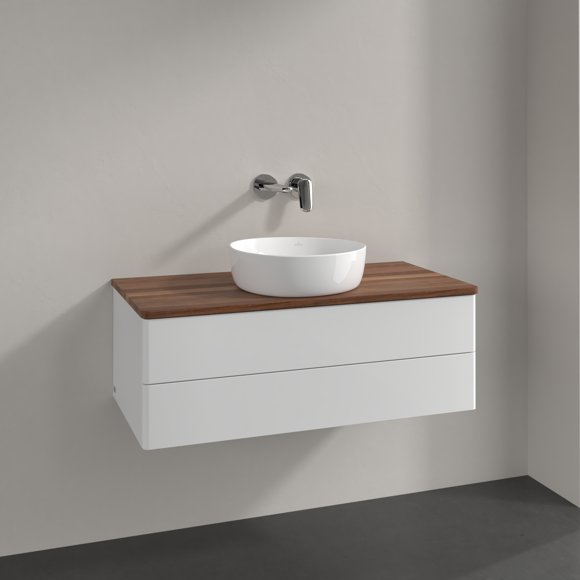 Antao Vanity unit, with lighting, 2 pull-out compartments, 1000x360x500mm, Front without structure, Body: Glossy White Lacquer, Front: Glossy White Lacquer, Cover plate: Warm Walnut