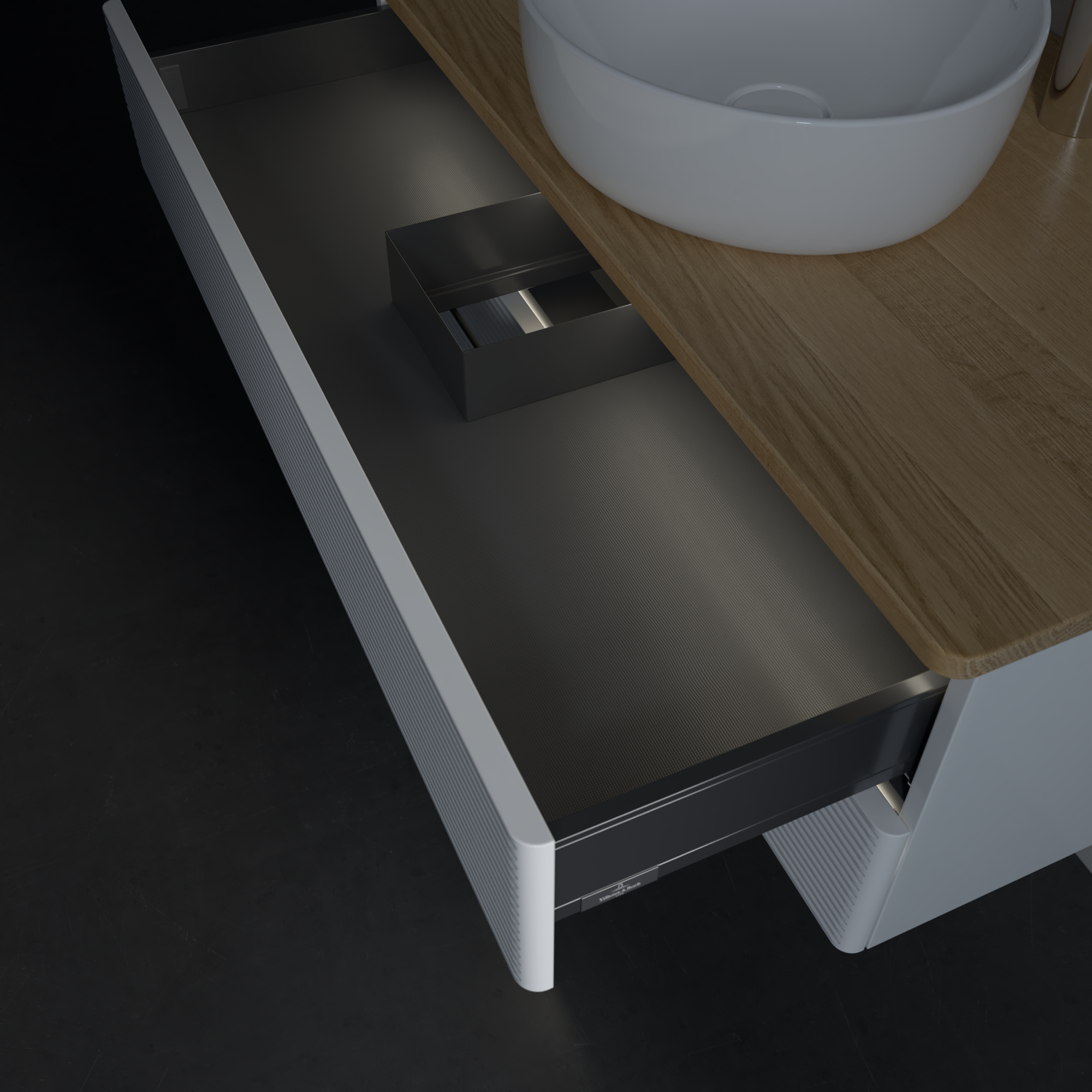 Antao Vanity unit, with lighting, 2 pull-out compartments, 1000x360x500mm, Front with grain texture, Body: Glossy White Lacquer, Front: Glossy White Lacquer, Cover plate: Honey Oak