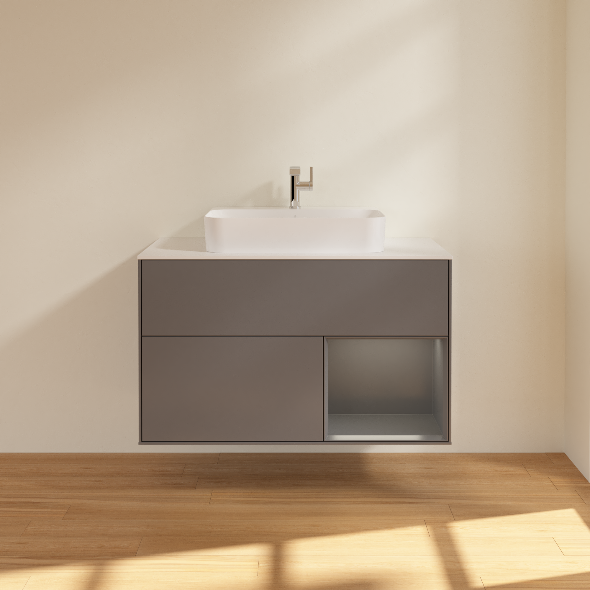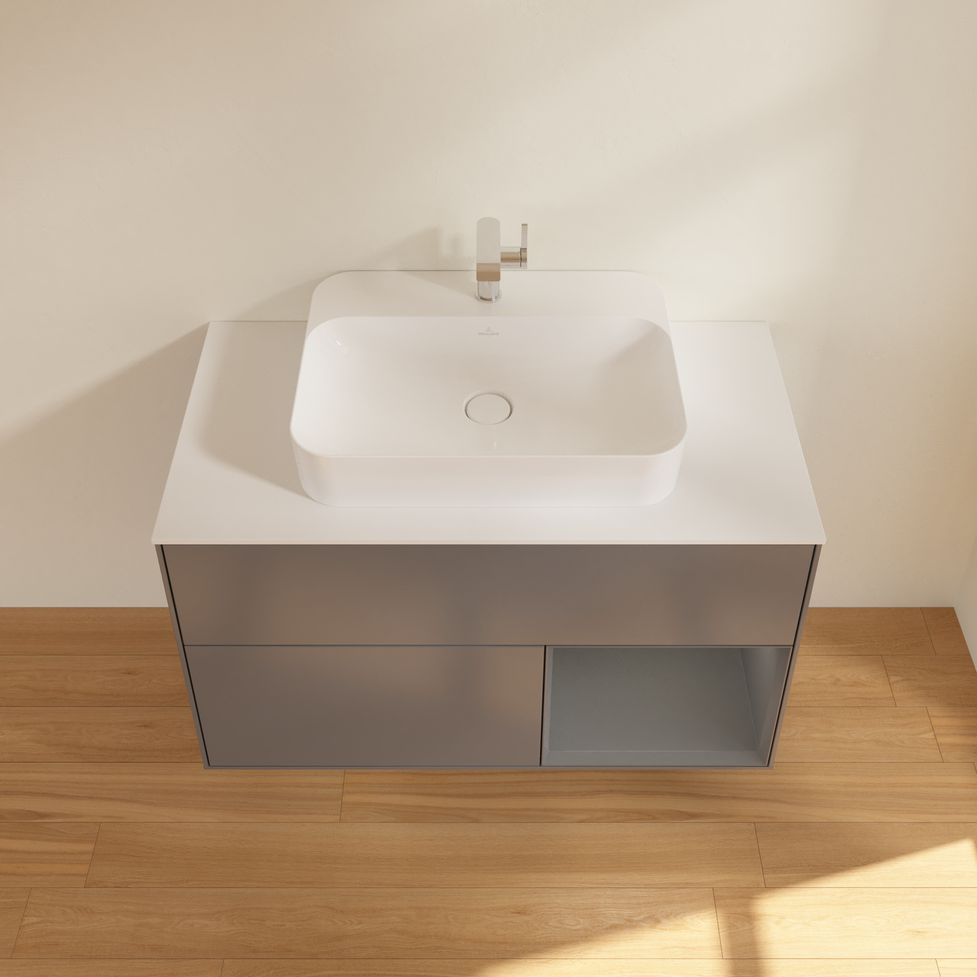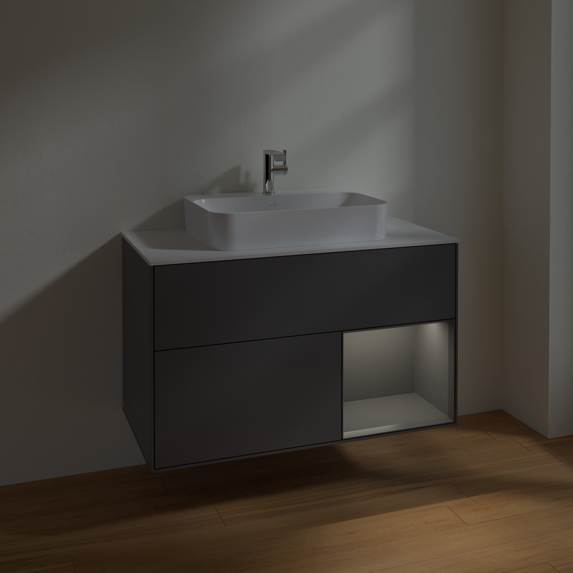 Finion Vanity unit, with lighting, 2 pull-out compartments, 1000x603x501mm, Body: Anthracite Matt Lacquer, Front: Anthracite Matt Lacquer, Shelf: Anthracite Matt Lacquer, Cover plate: Glass White Matt