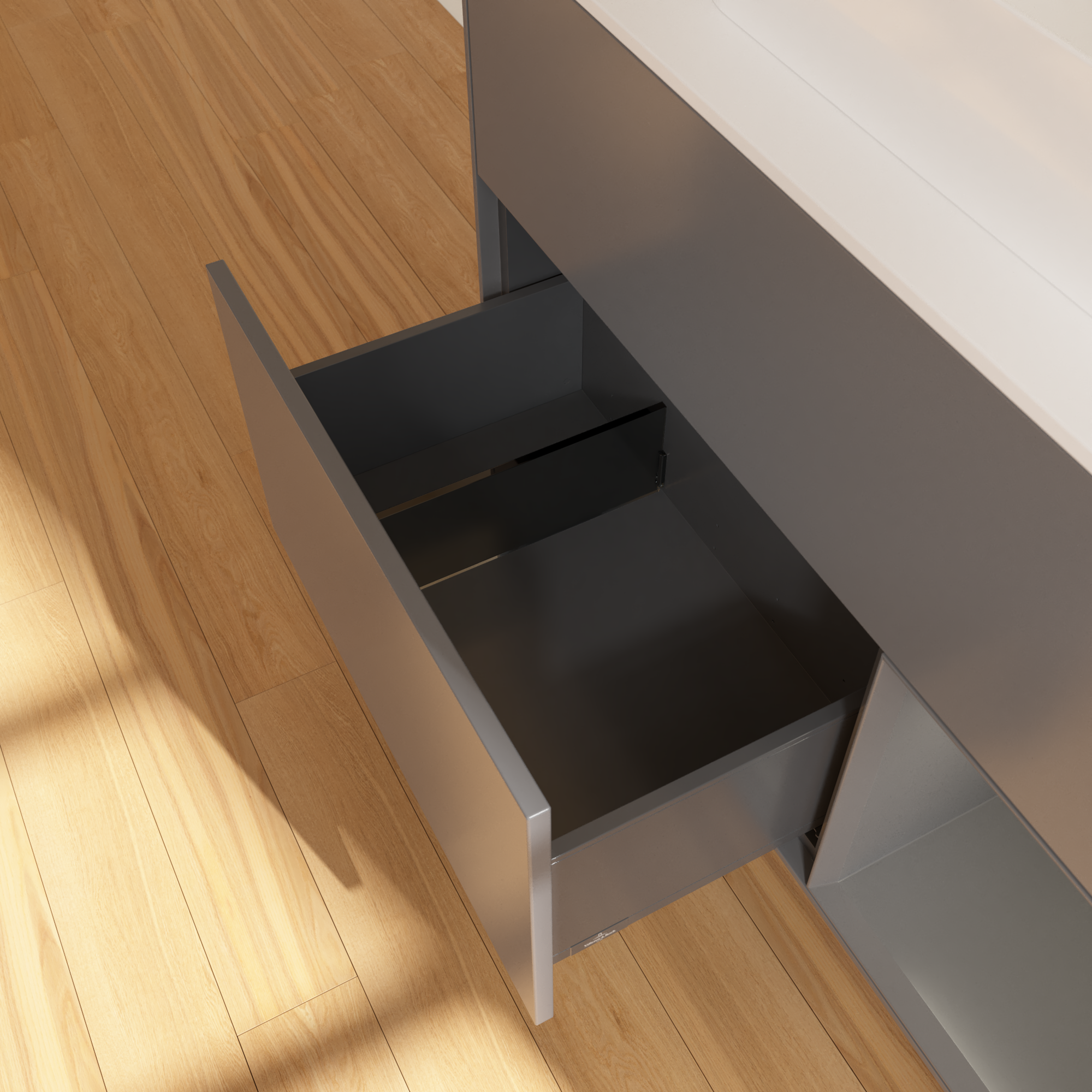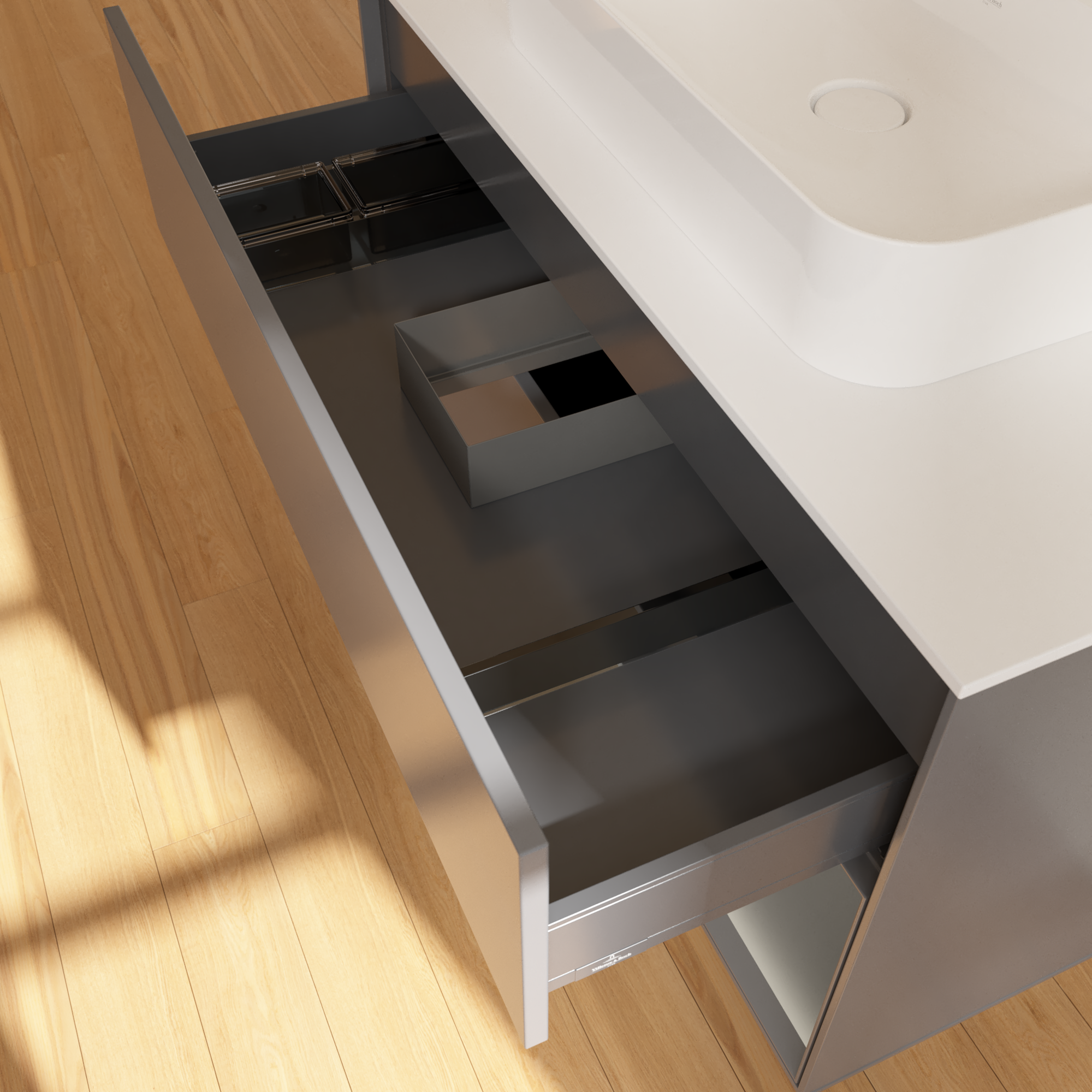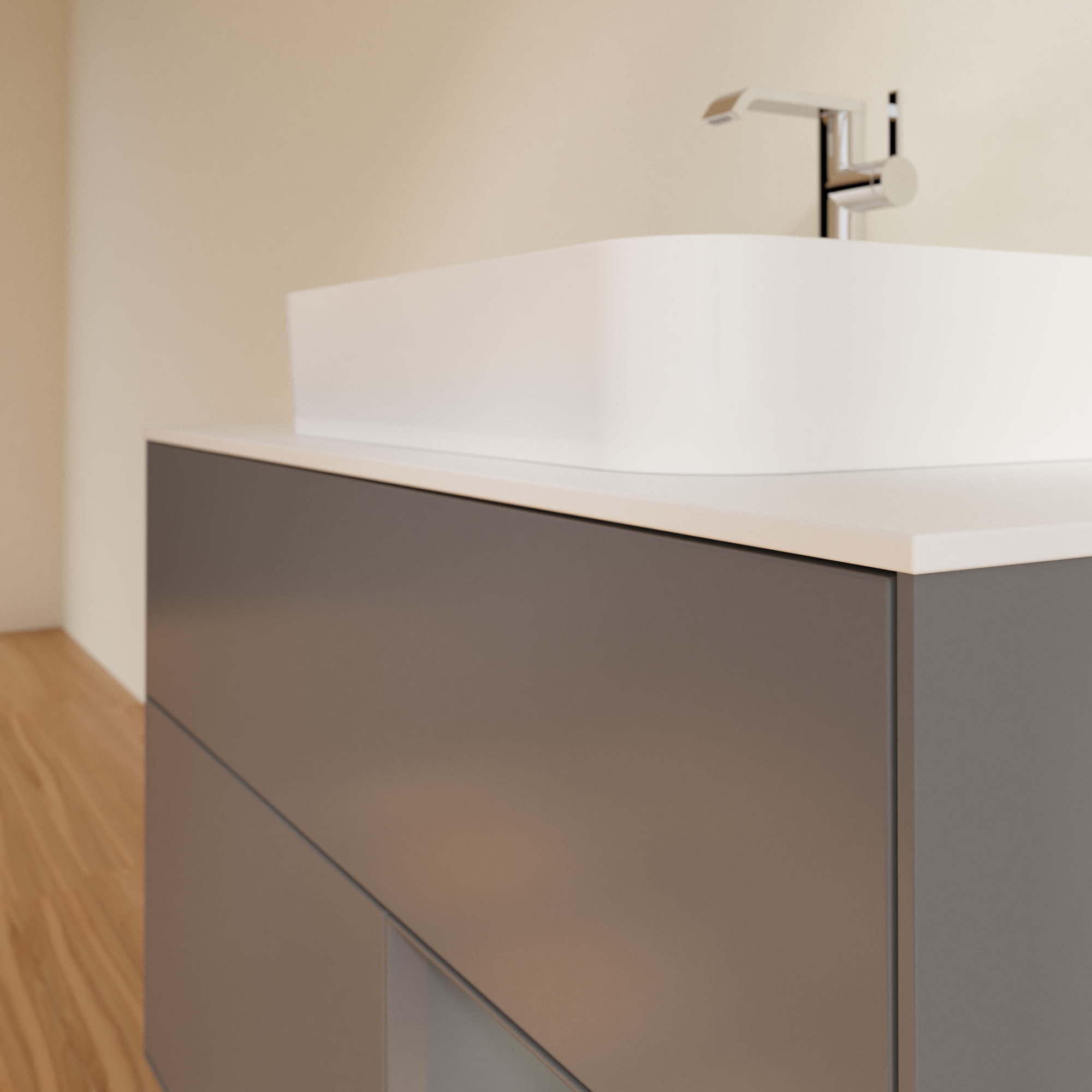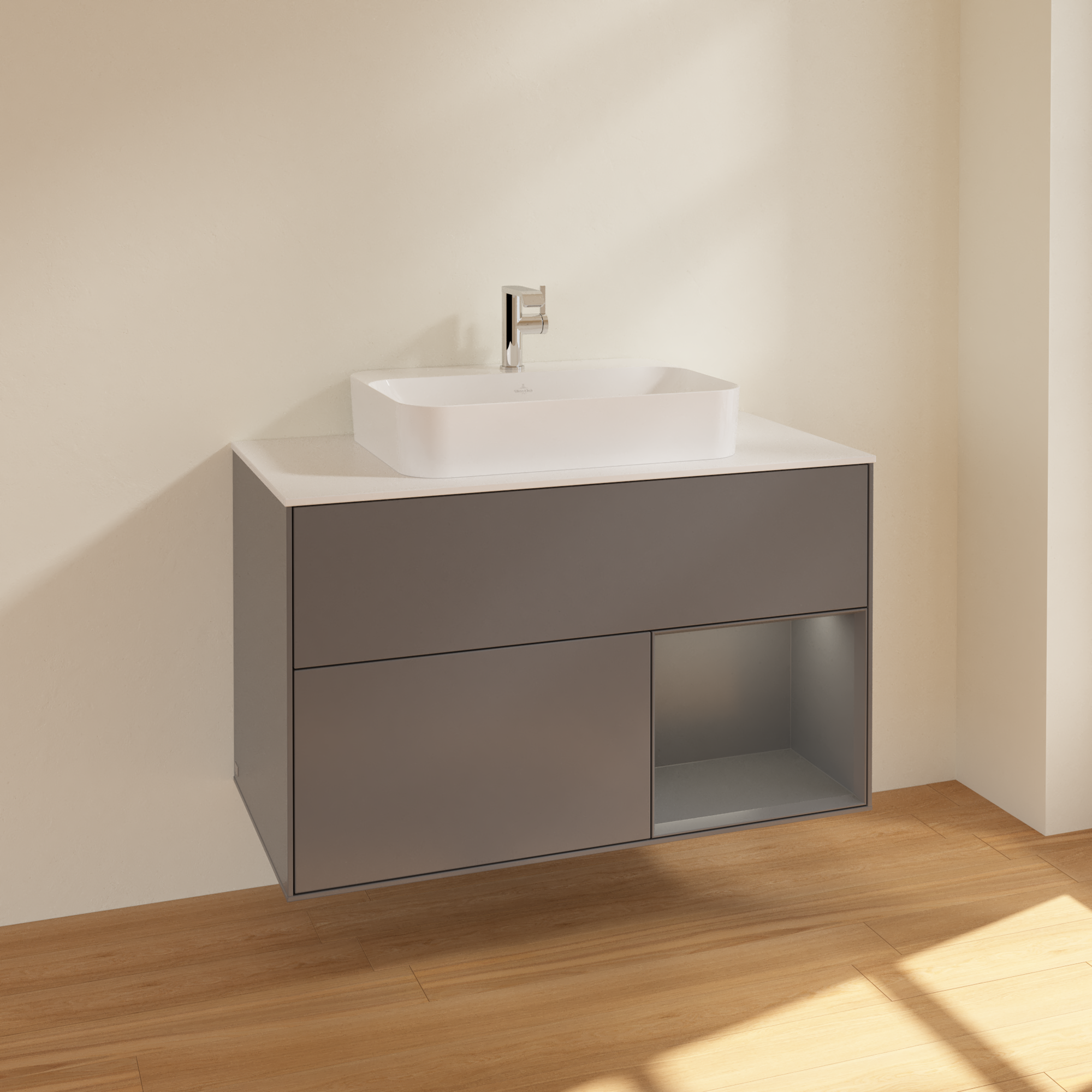 Finion Vanity unit, with lighting, 2 pull-out compartments, 1000x603x501mm, Body: Anthracite Matt Lacquer, Front: Anthracite Matt Lacquer, Shelf: Anthracite Matt Lacquer, Cover plate: Glass White Matt