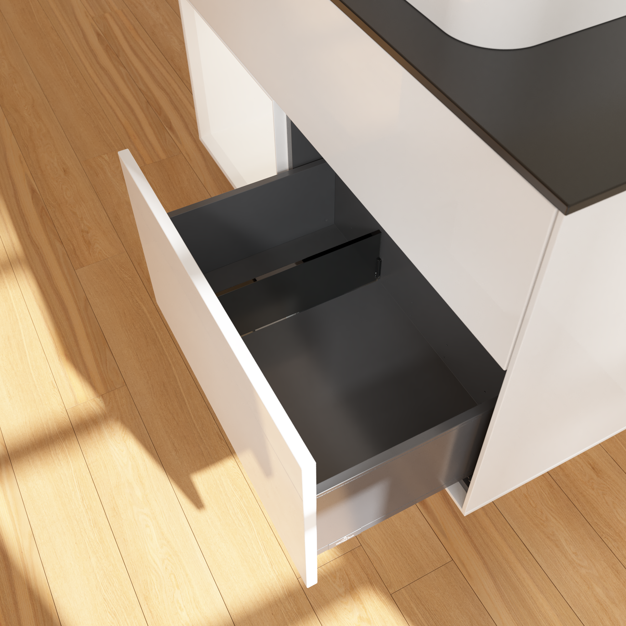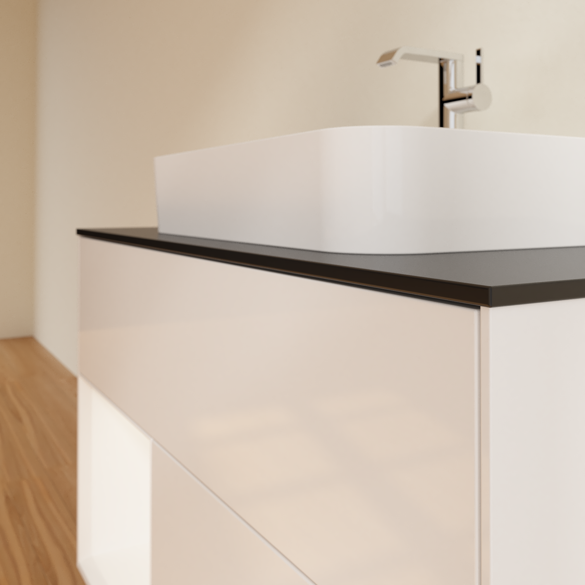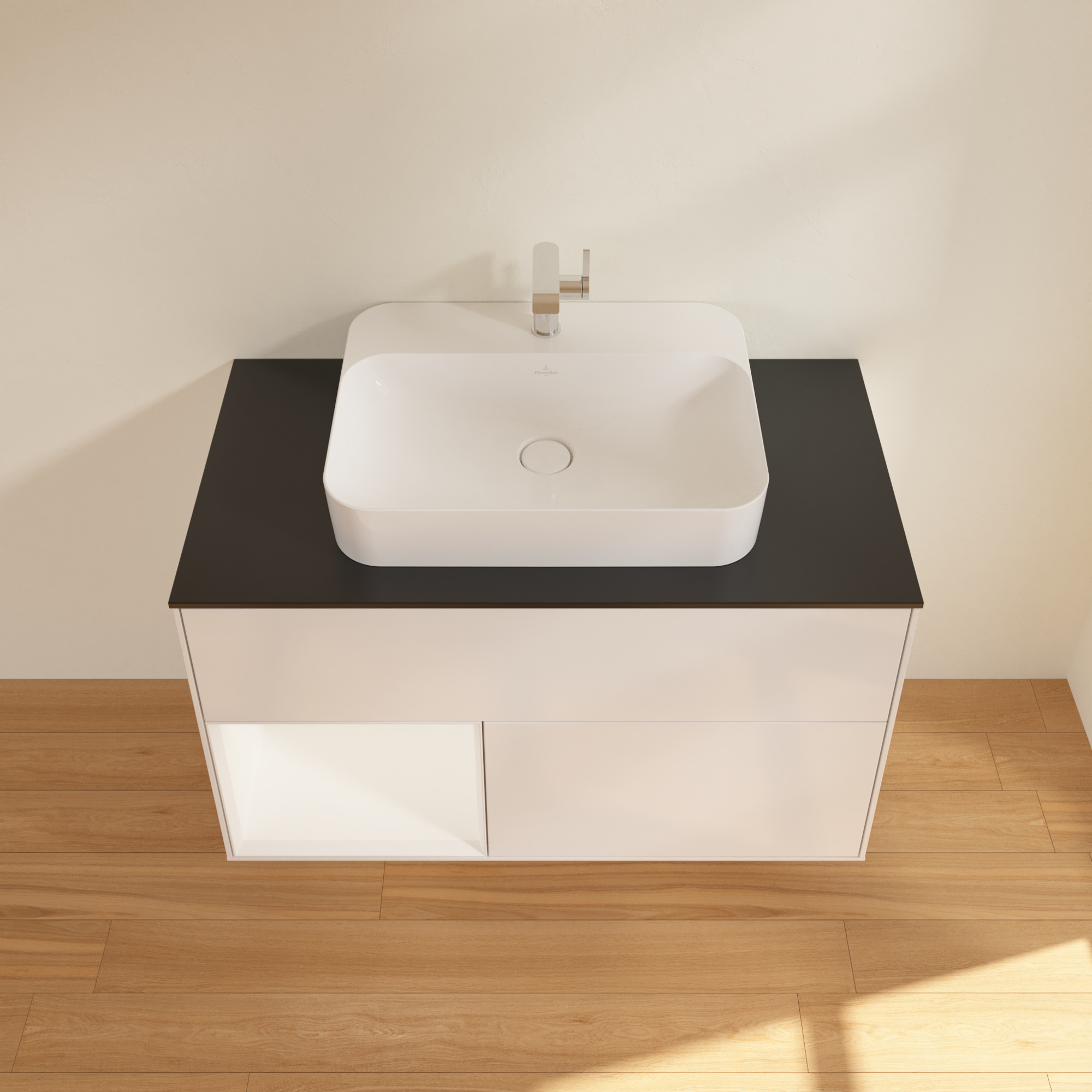 Finion Vanity unit, with lighting, 2 pull-out compartments, 1000x603x501mm, Body: Glossy White Lacquer, Front: Glossy White Lacquer, Shelf: White Matt Lacquer, Cover plate: Glass Black Matt