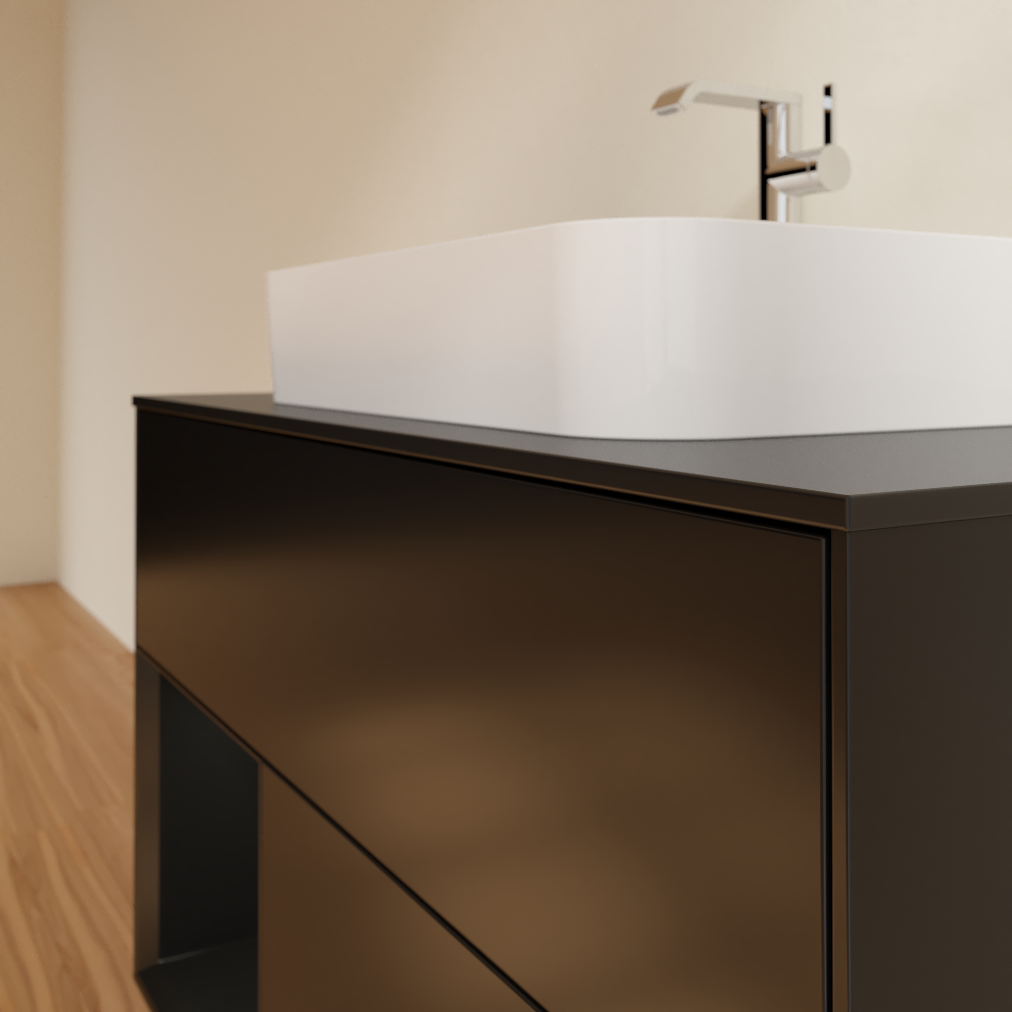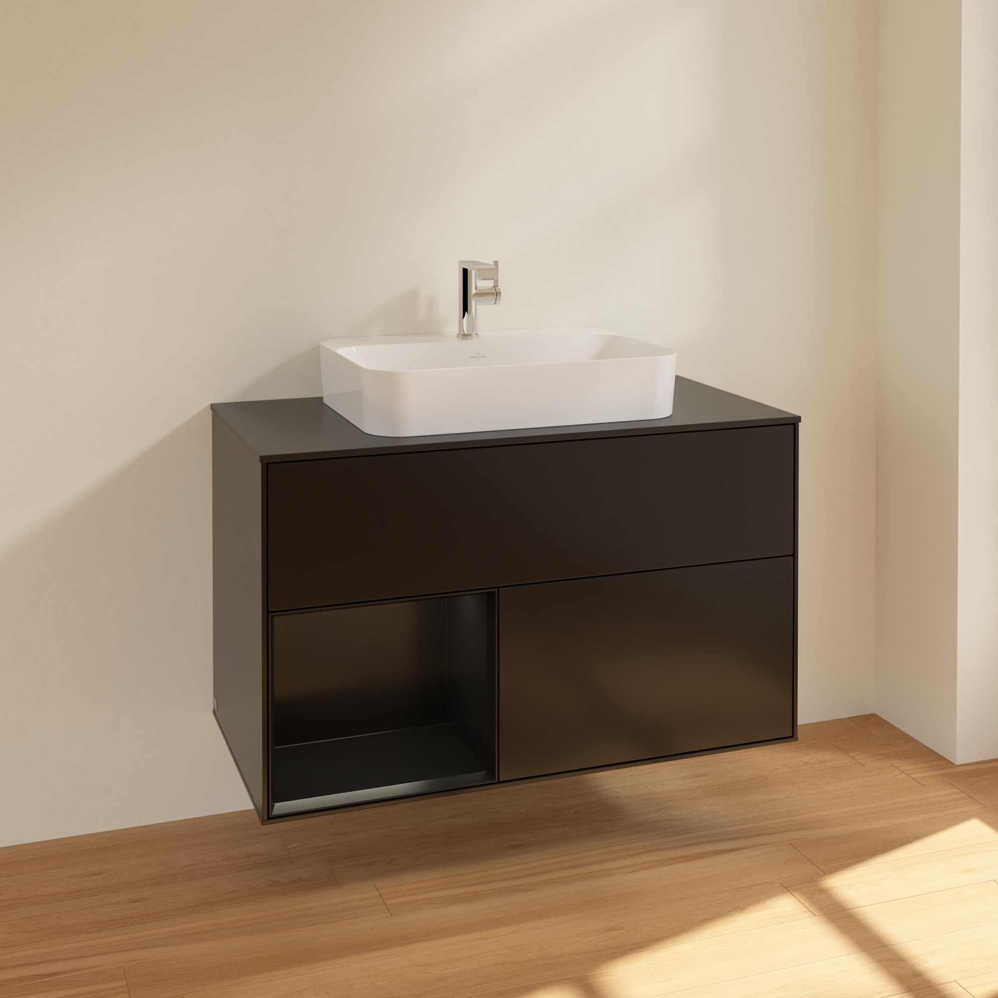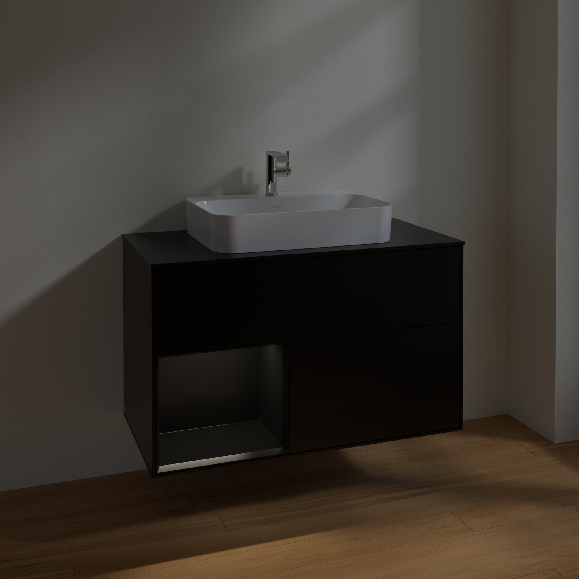 Finion Vanity unit, with lighting, 2 pull-out compartments, 1000x603x501mm, Body: Black Matt Lacquer, Front: Black Matt Lacquer, Shelf: Black Matt Lacquer, Cover plate: Glass Black Matt