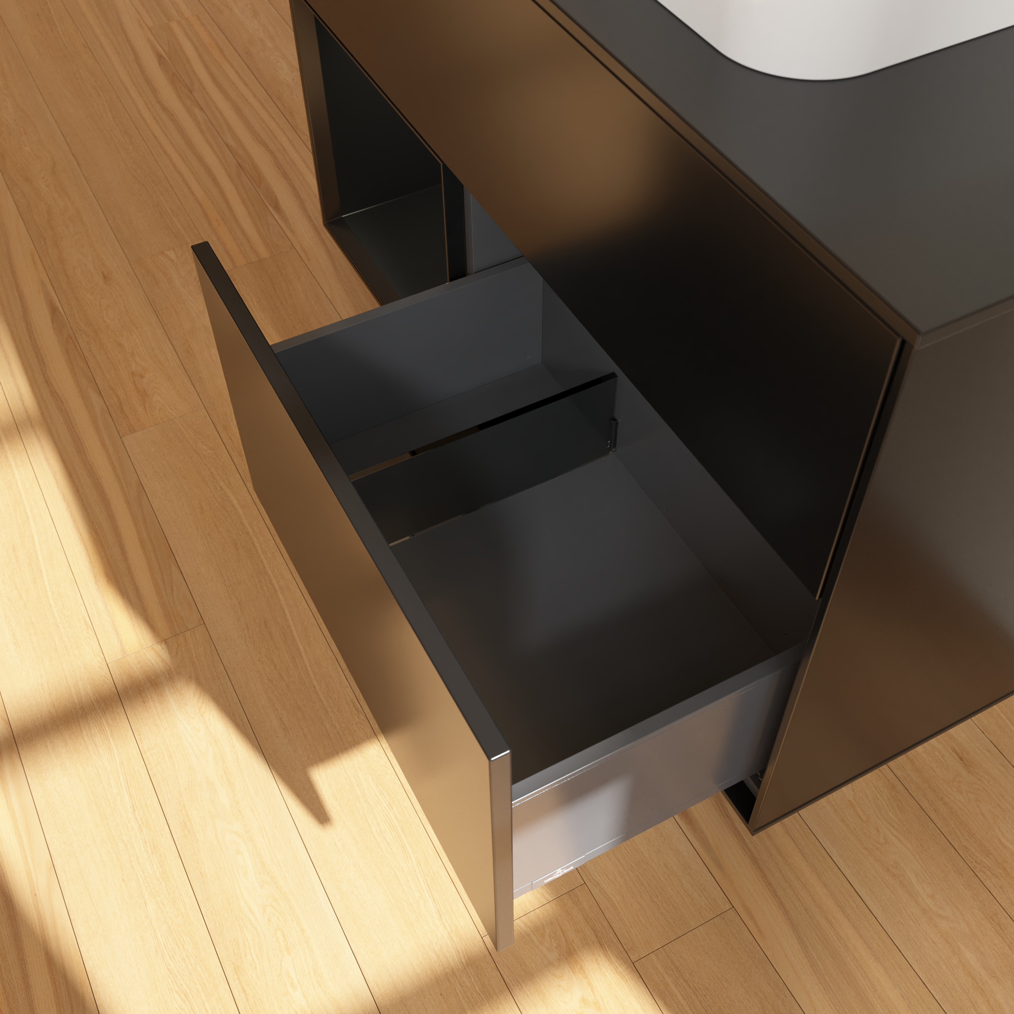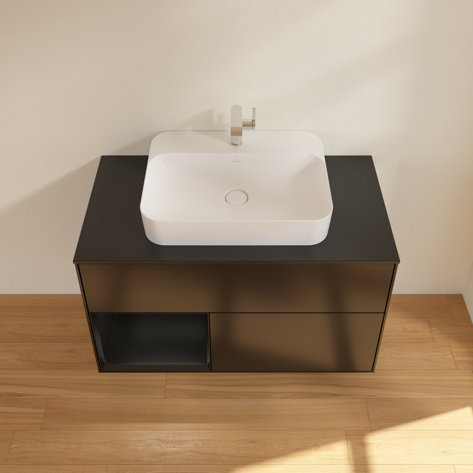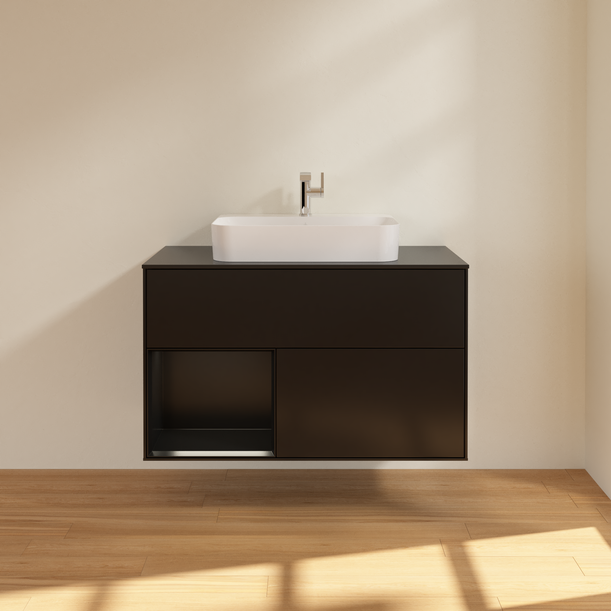 Finion Vanity unit, with lighting, 2 pull-out compartments, 1000x603x501mm, Body: Black Matt Lacquer, Front: Black Matt Lacquer, Shelf: Black Matt Lacquer, Cover plate: Glass Black Matt