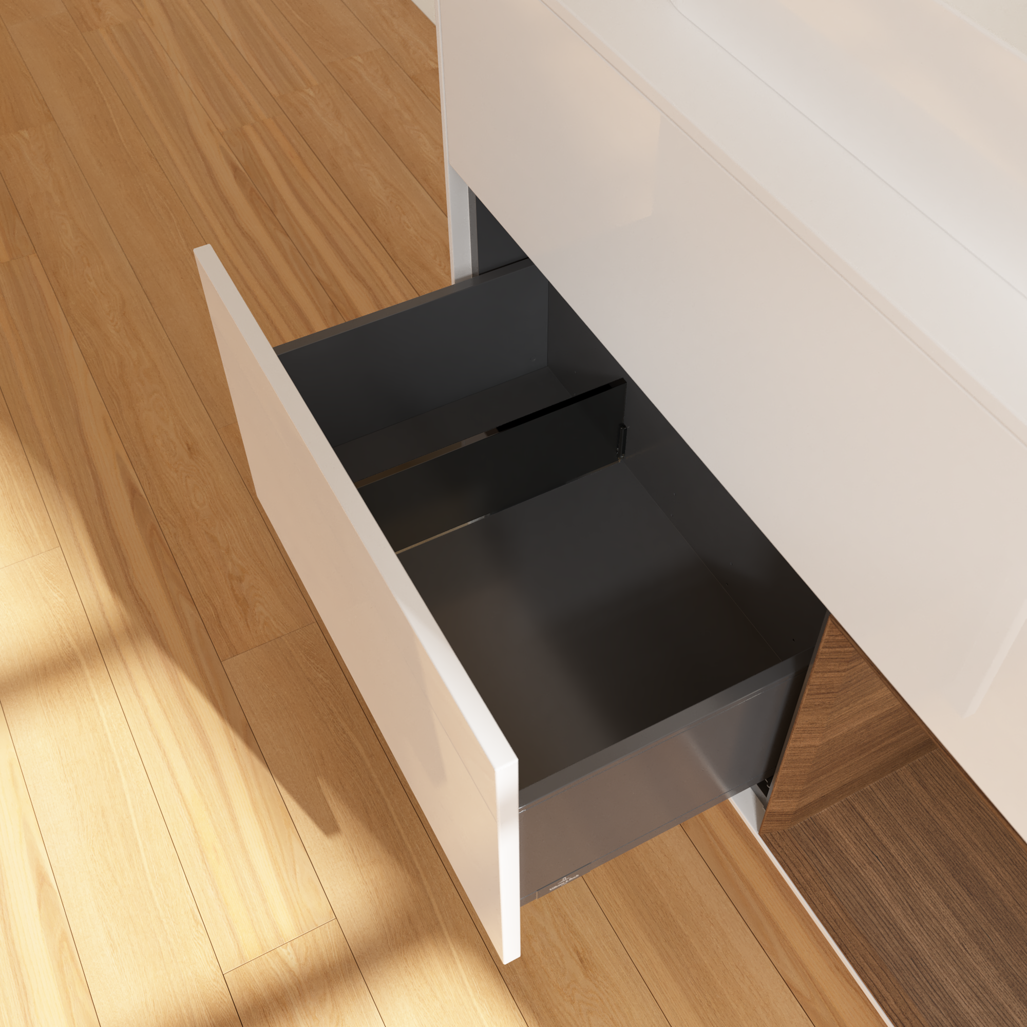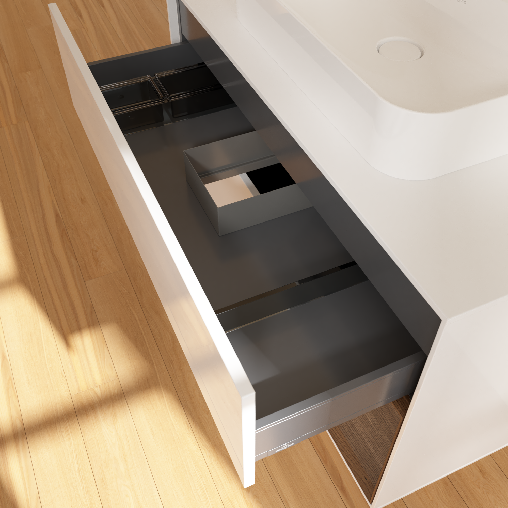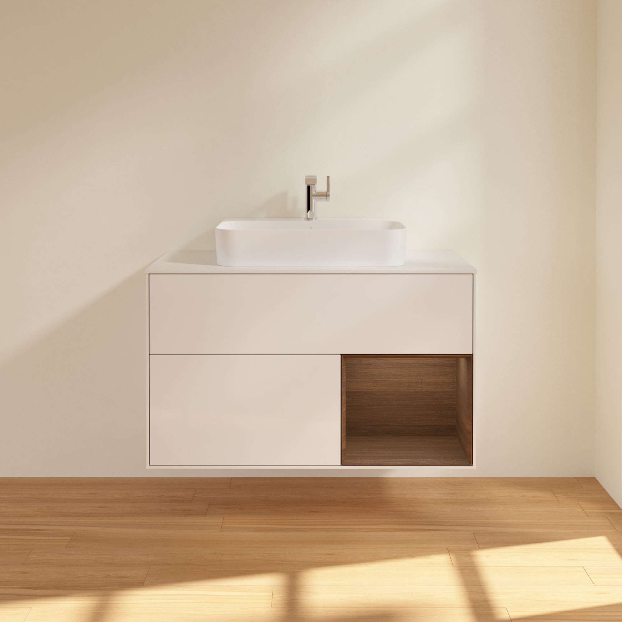 Finion Vanity unit, with lighting, 2 pull-out compartments, 1000x603x501mm, Body: Glossy White Lacquer, Front: Glossy White Lacquer, Shelf: Walnut Veneer, Cover plate: Glass White Matt
