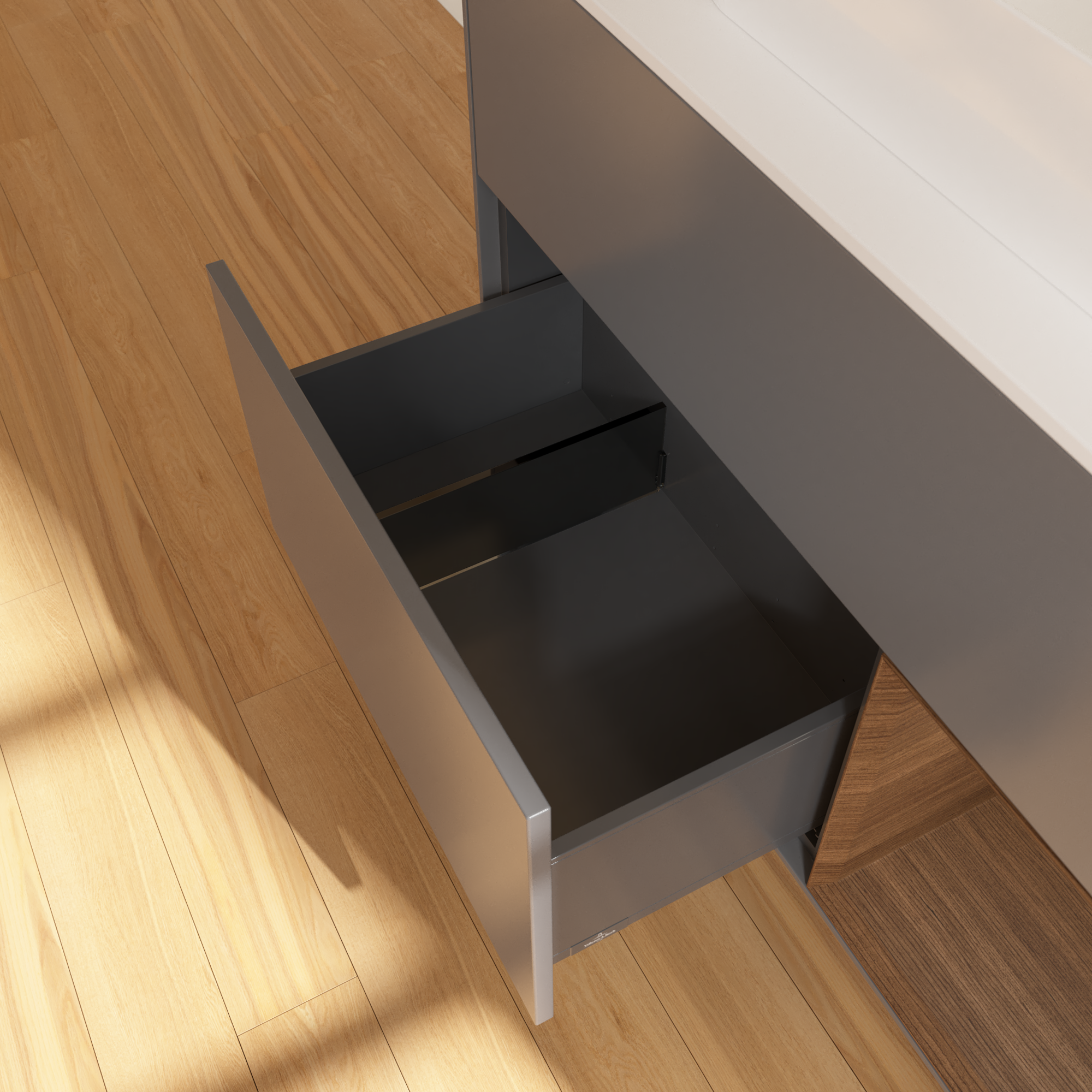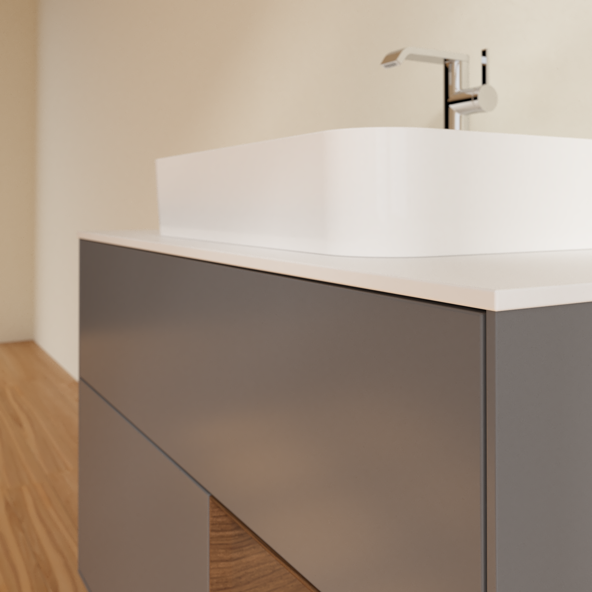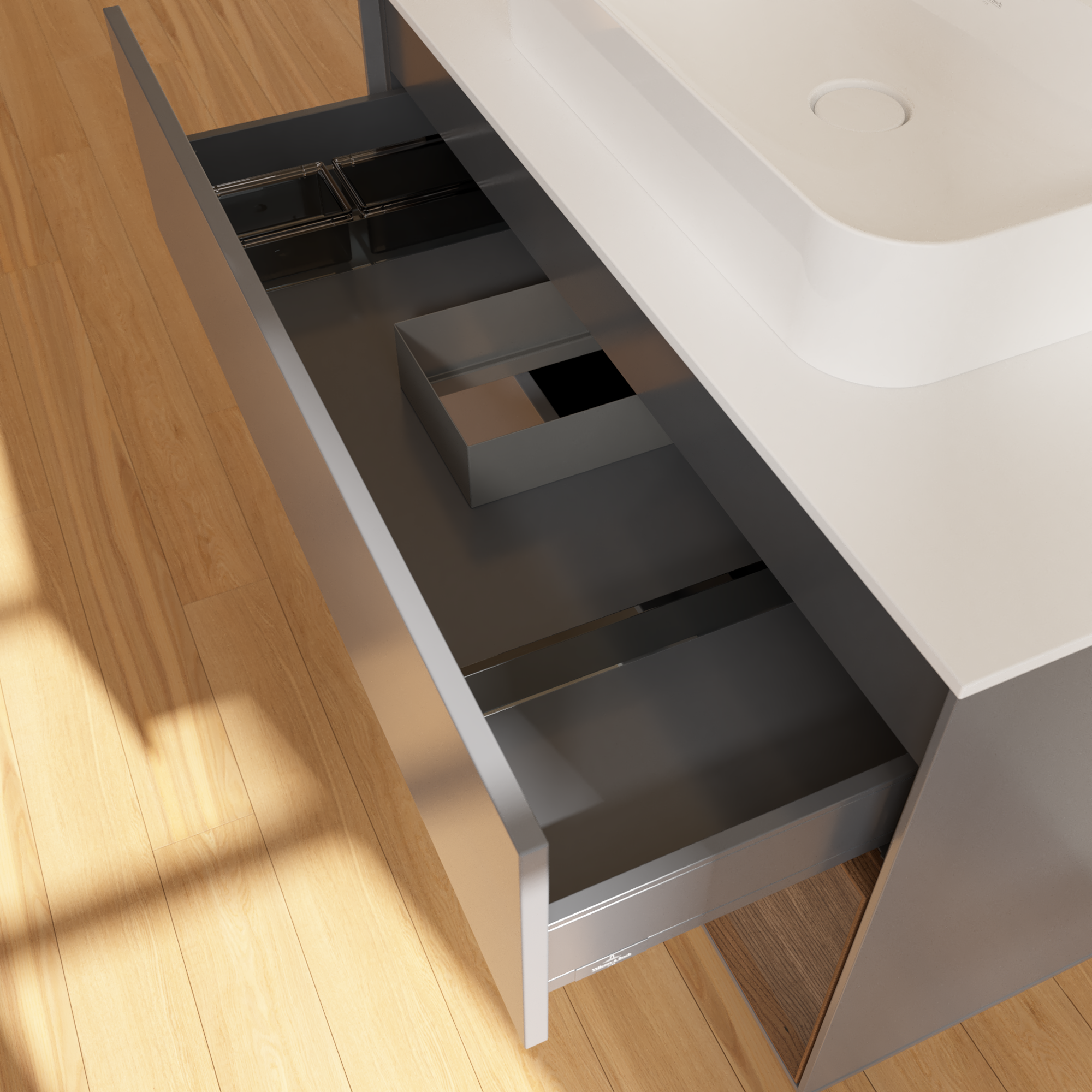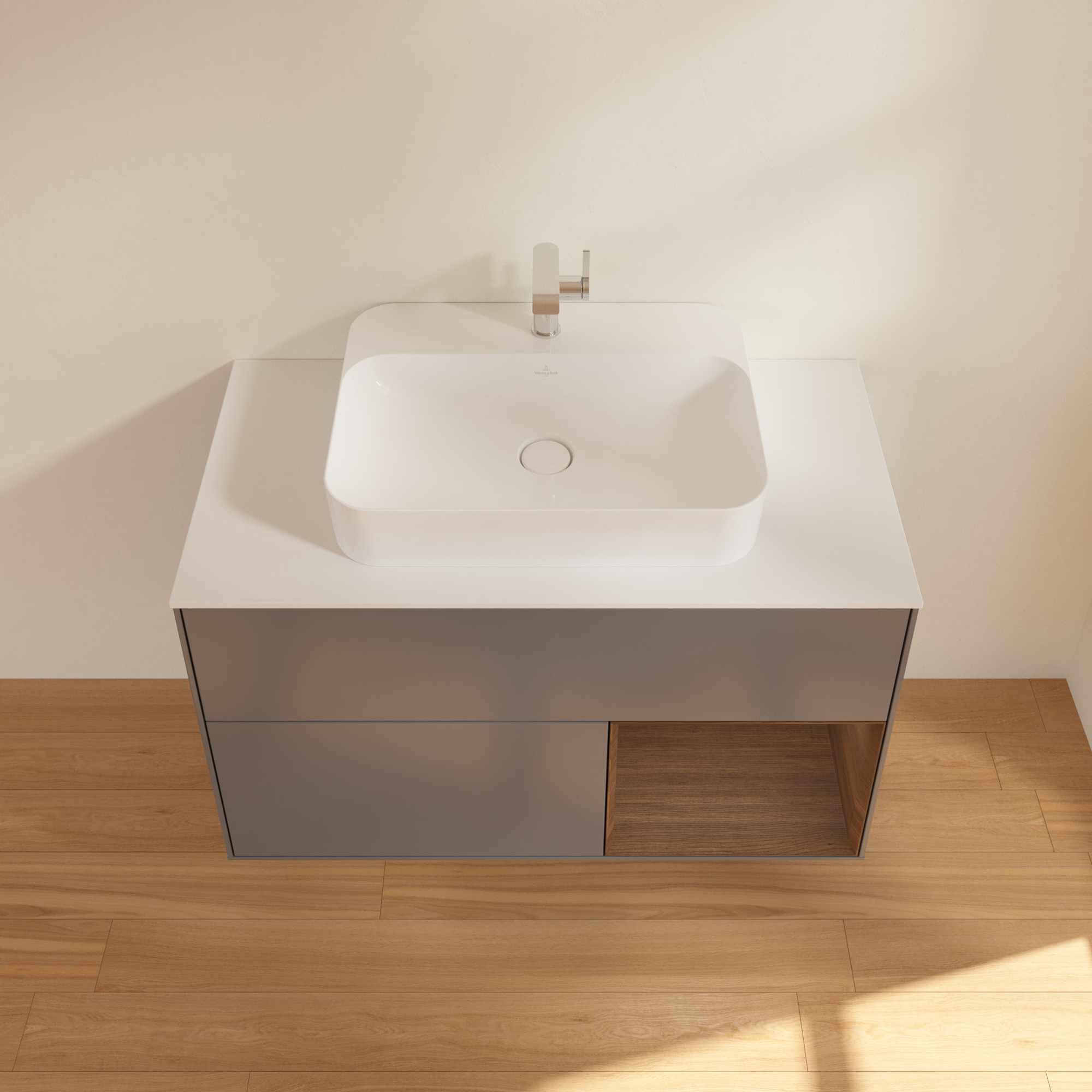 Finion Vanity unit, with lighting, 2 pull-out compartments, 1000x603x501mm, Body: Anthracite Matt Lacquer, Front: Anthracite Matt Lacquer, Shelf: Walnut Veneer, Cover plate: Glass White Matt