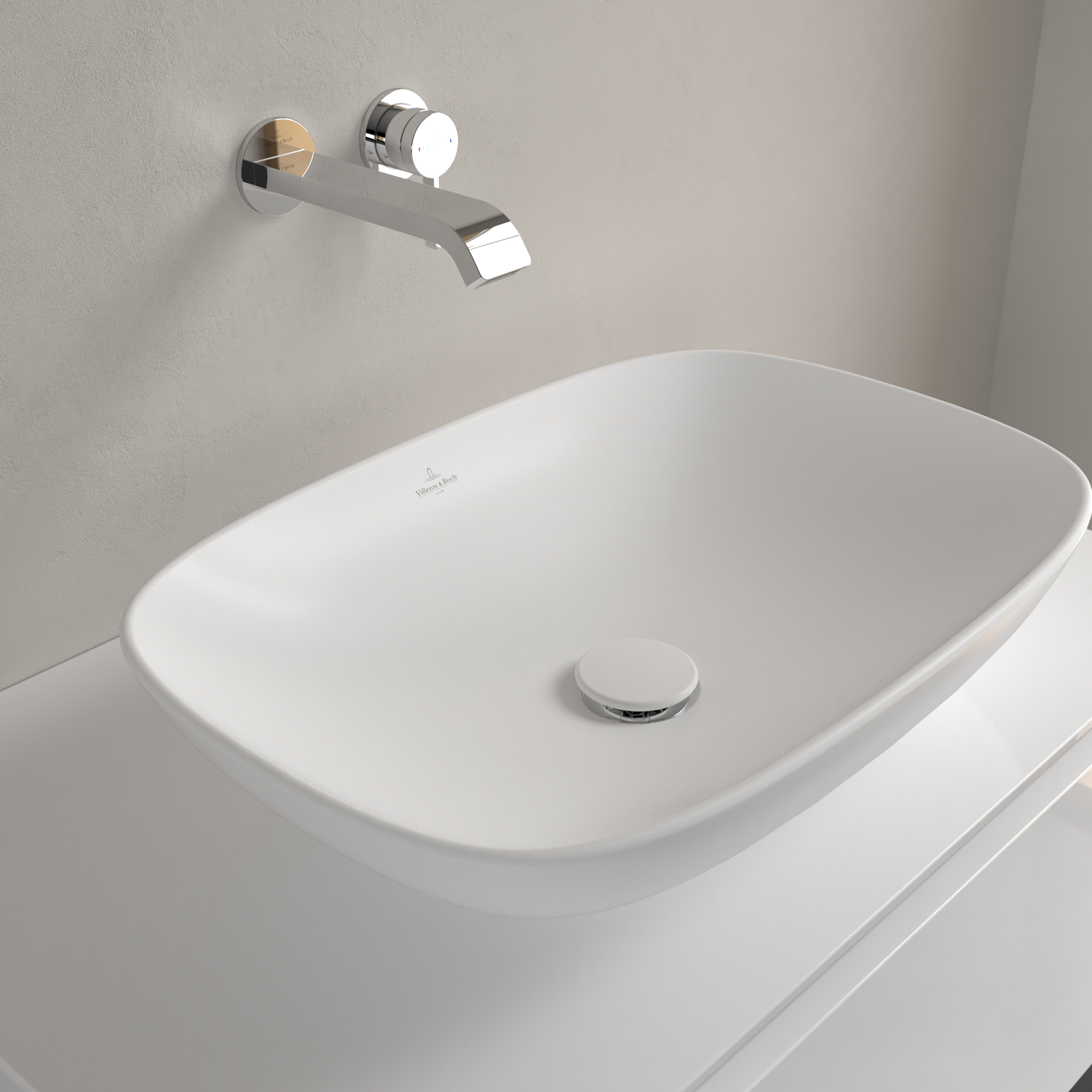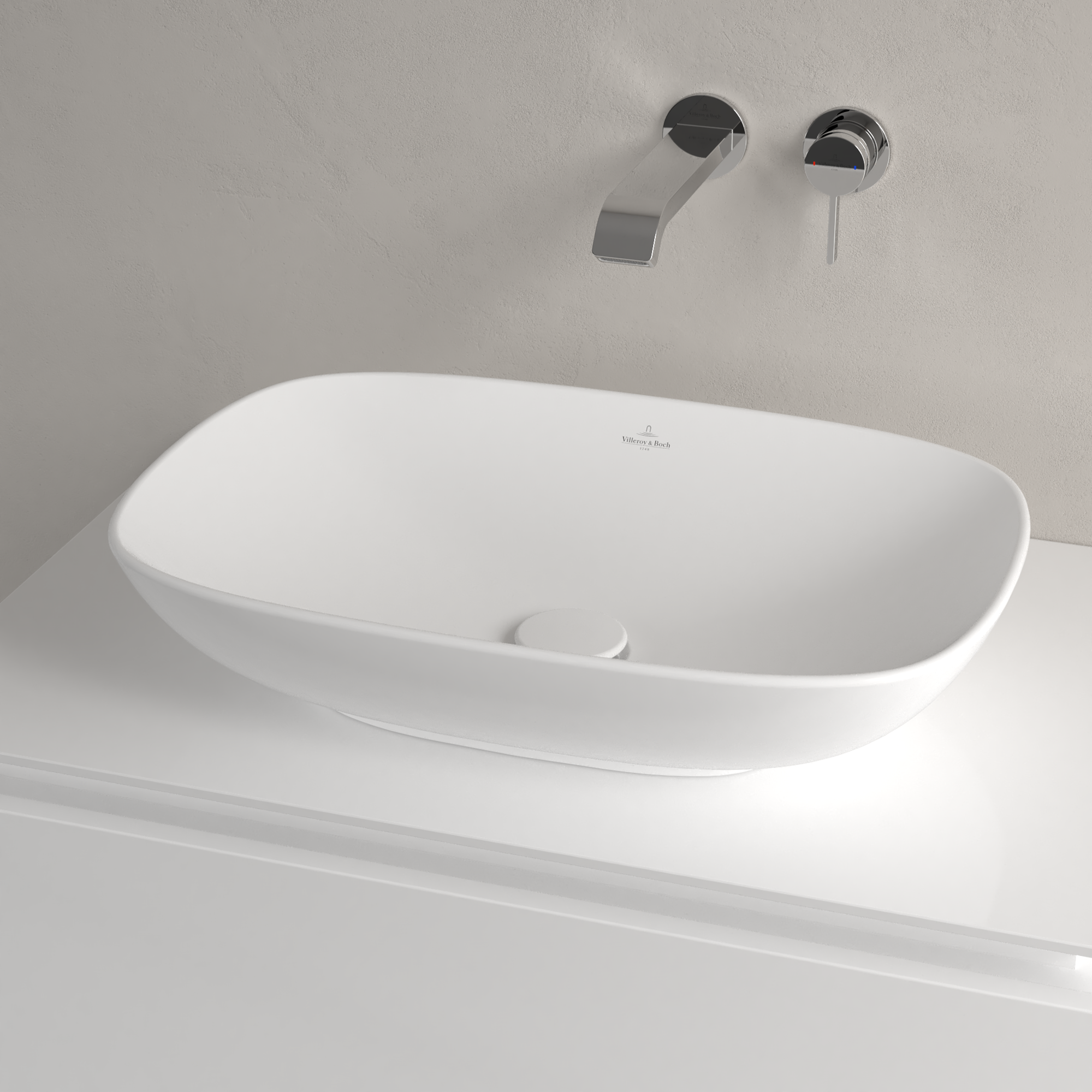 Loop & Friends Surface-mounted washbasin, 560x380x150mm, without overflow, Stone White CeramicPlus