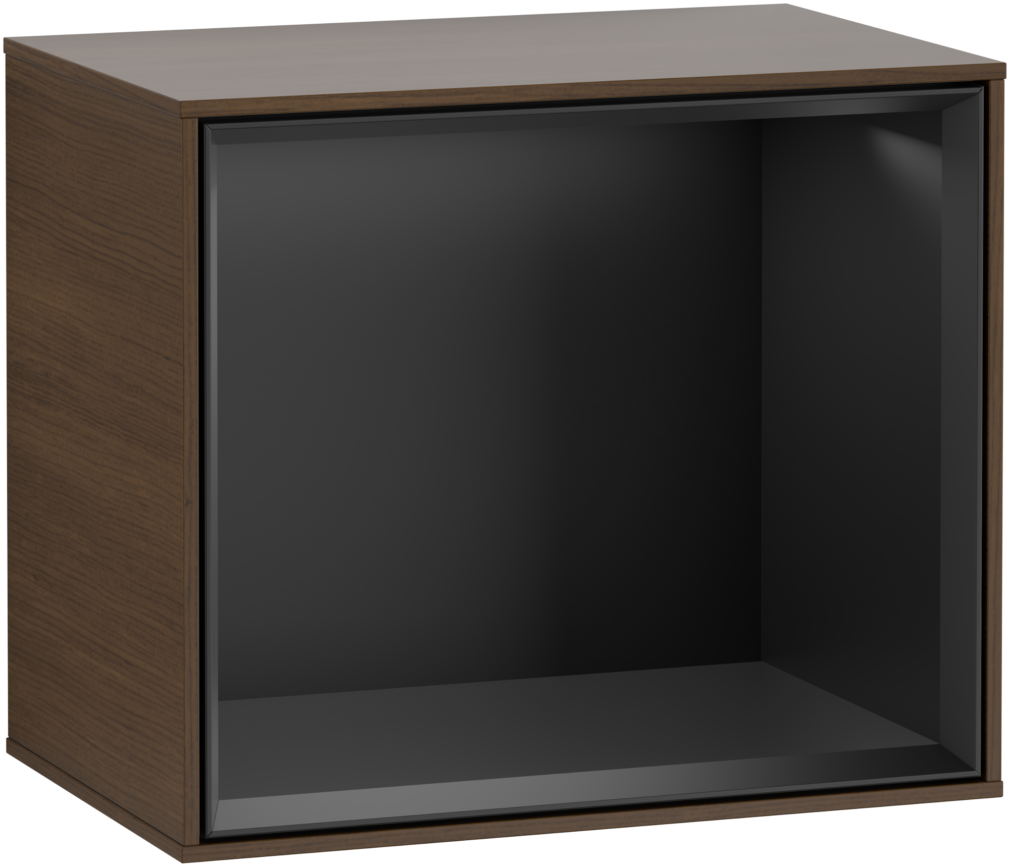 • High-quality surfaces in 10 gloss paint colours and 1 wood veneer as well as 2 stylish glass shelves for surface-mounted washbasins