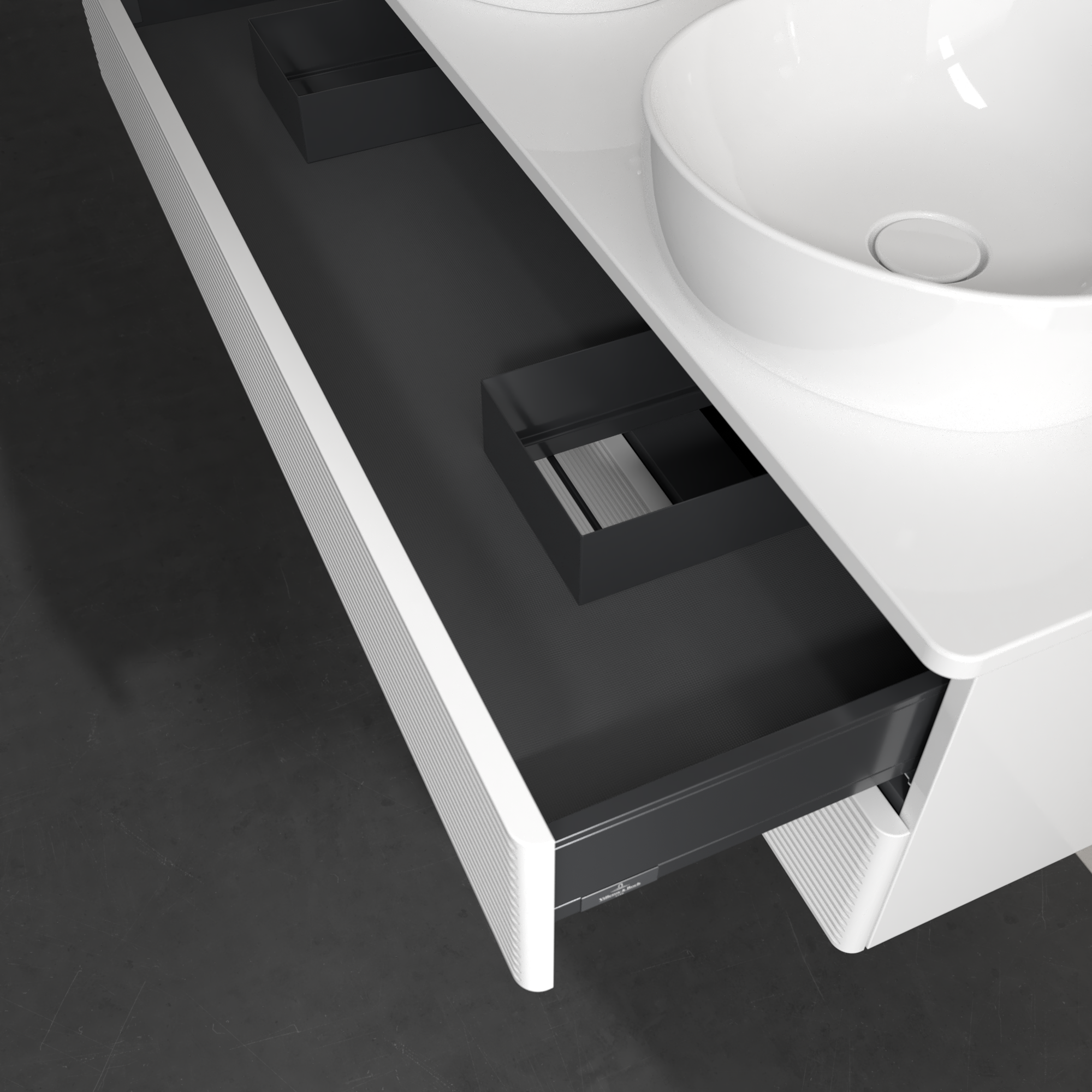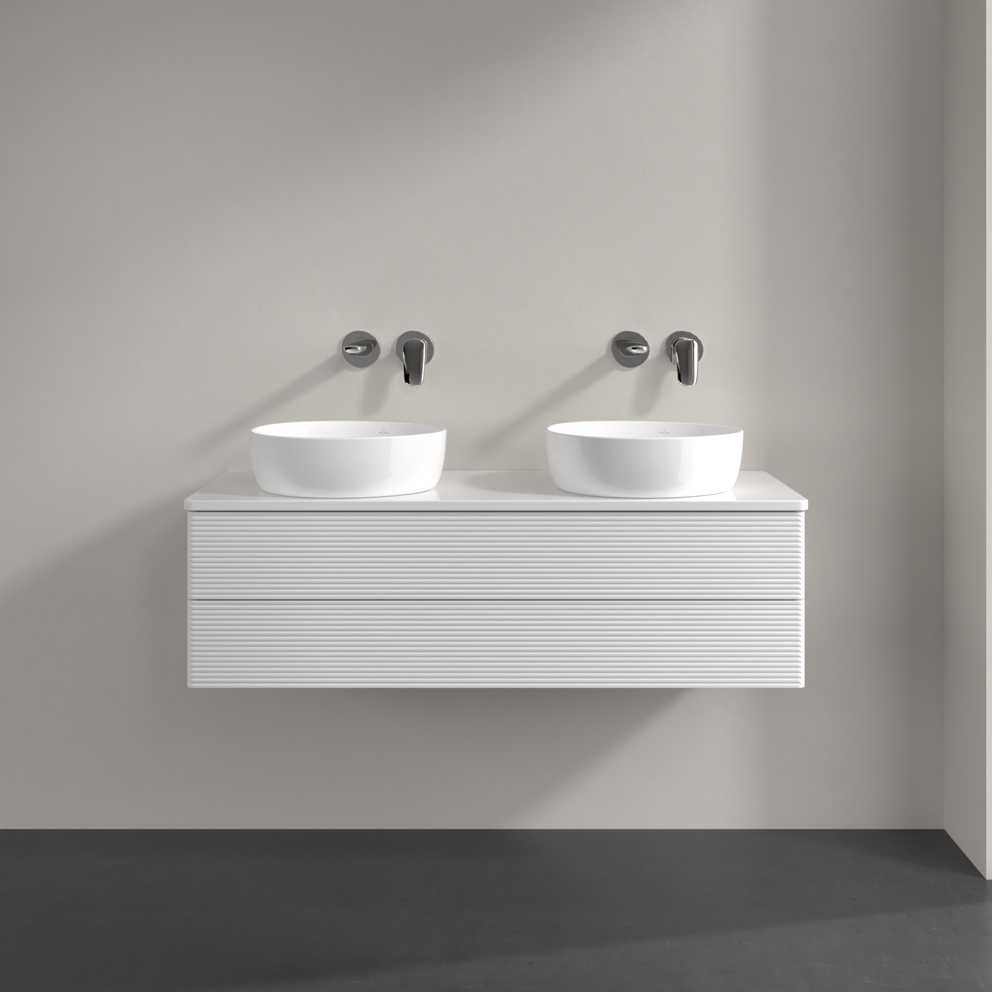 Antao Vanity unit, 2 pull-out compartments, 1200x360x500mm, Front with grain texture, Body: Glossy White Lacquer, Front: Glossy White Lacquer, Cover plate: Glossy White Lacquer