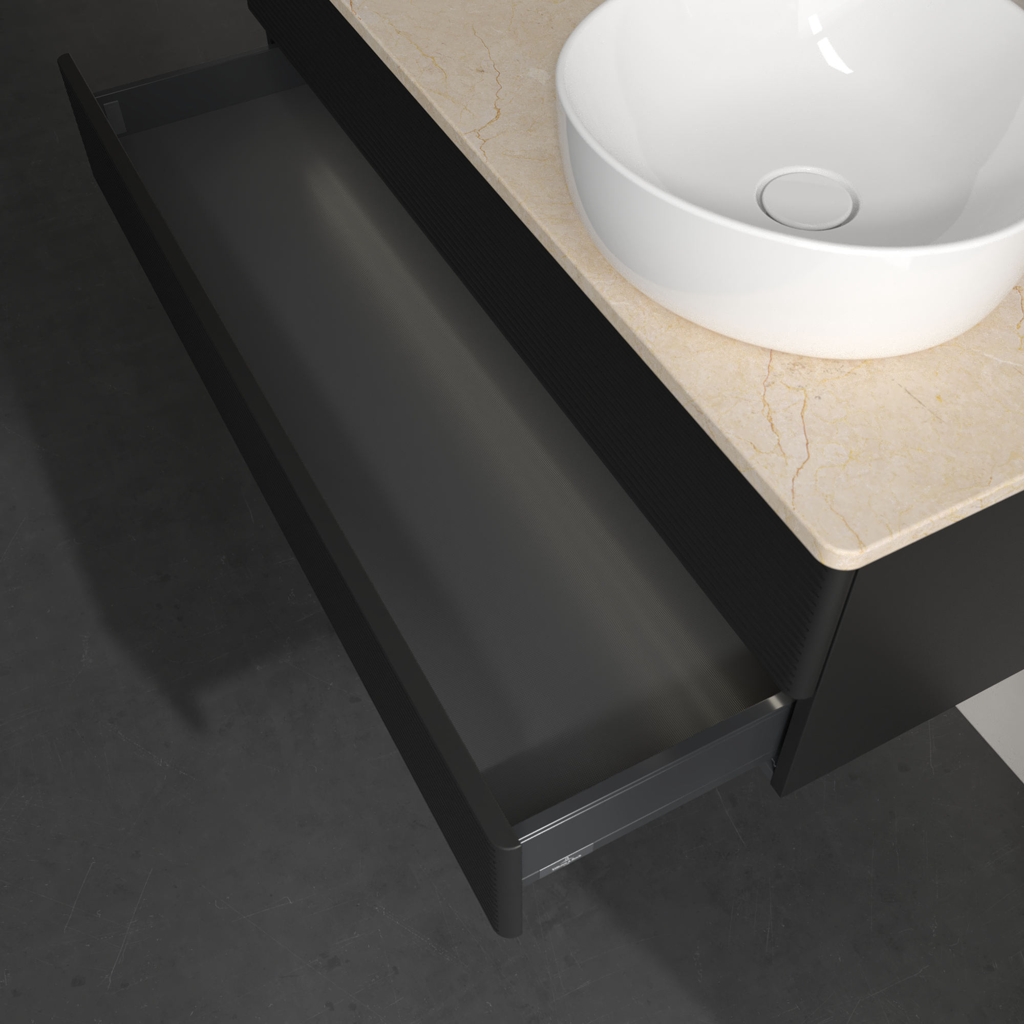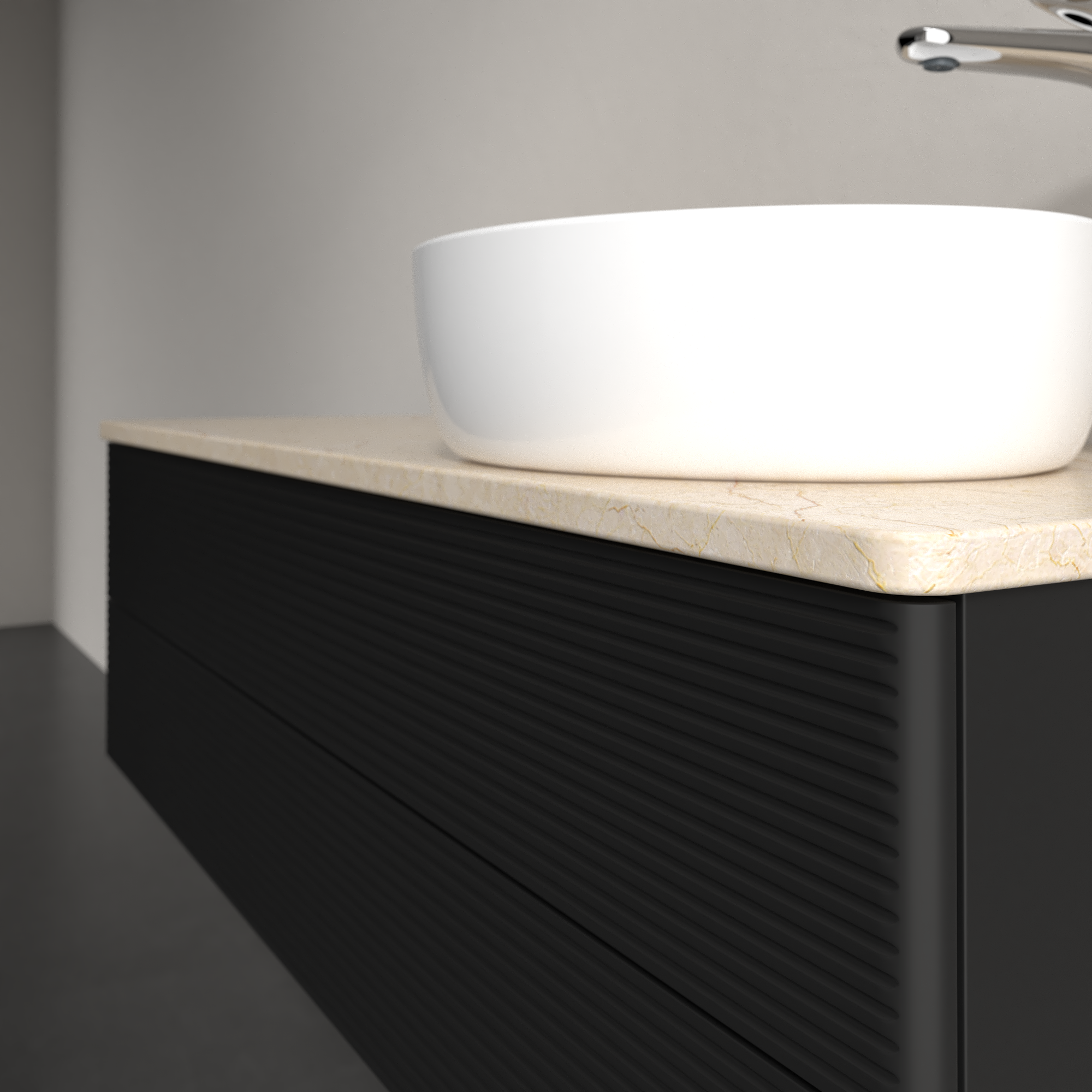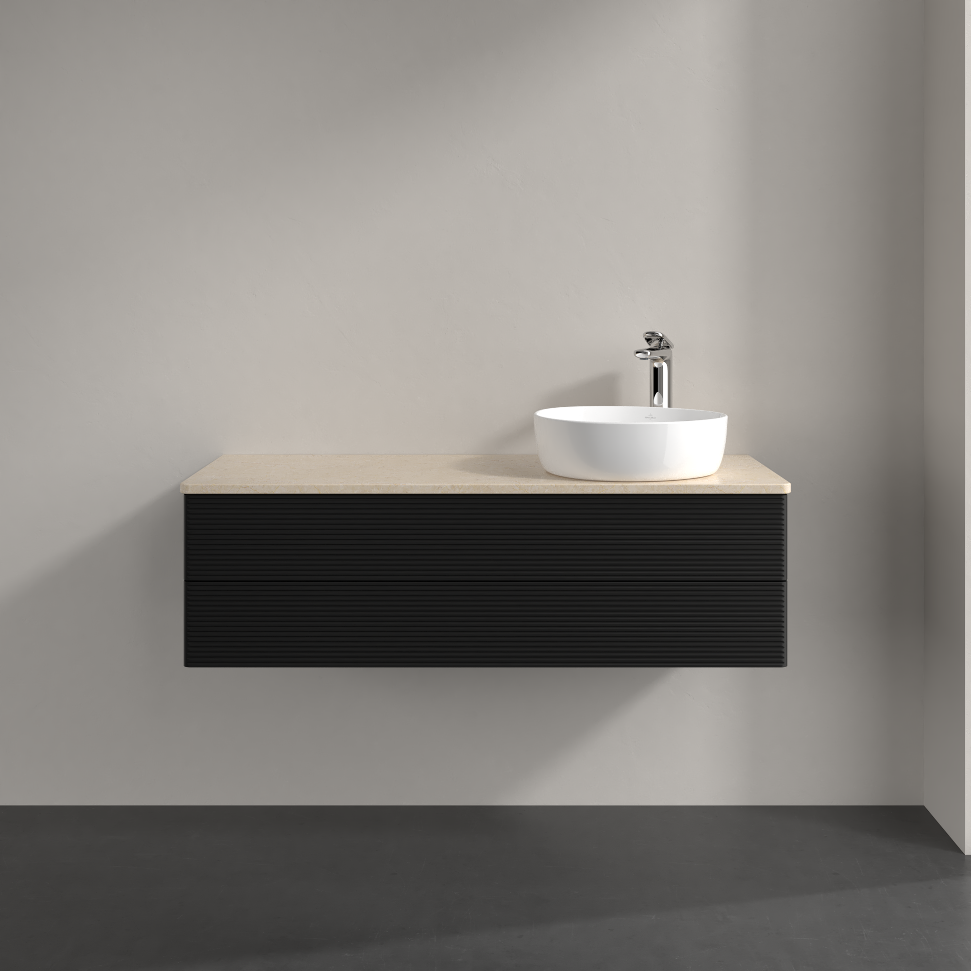 Antao Vanity unit, with lighting, 2 pull-out compartments, 1200x360x500mm, Front with grain texture, Body: Black Matt Lacquer, Front: Black Matt Lacquer, Cover plate: Botticino