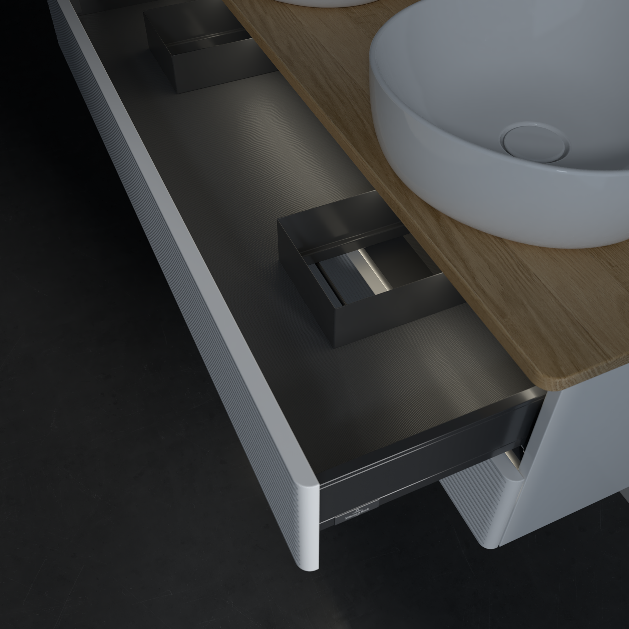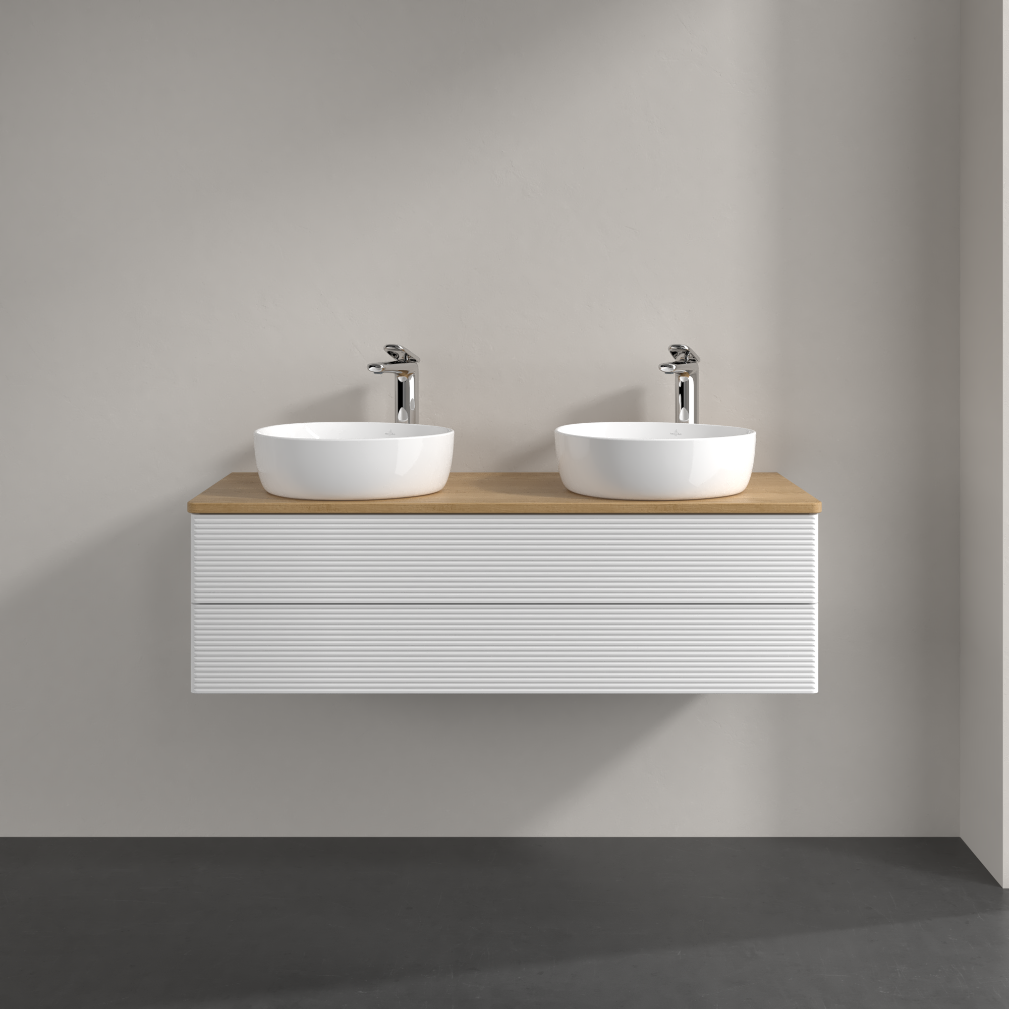 Antao Vanity unit, with lighting, 2 pull-out compartments, 1200x360x500mm, Front with grain texture, Body: Glossy White Lacquer, Front: Glossy White Lacquer, Cover plate: Honey Oak