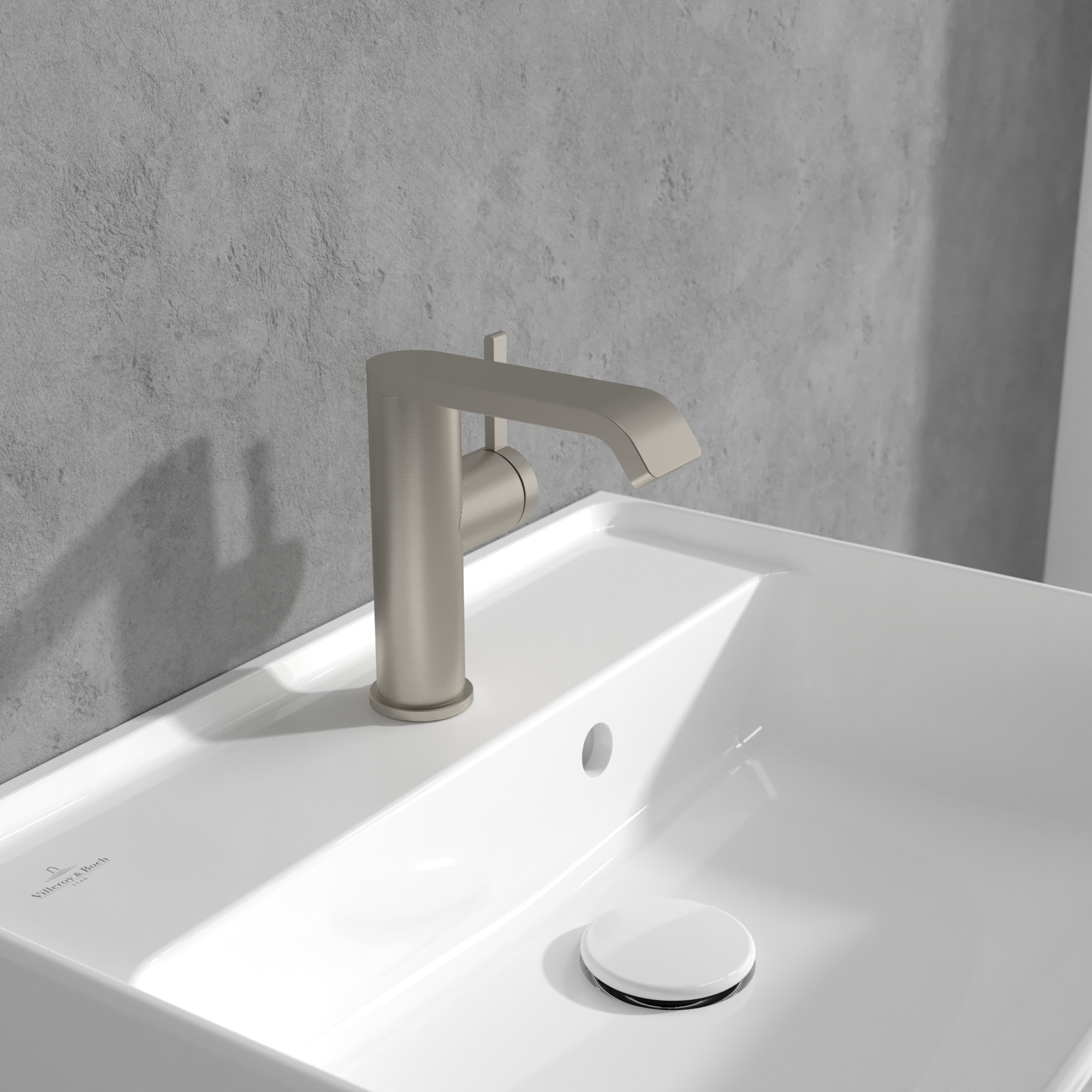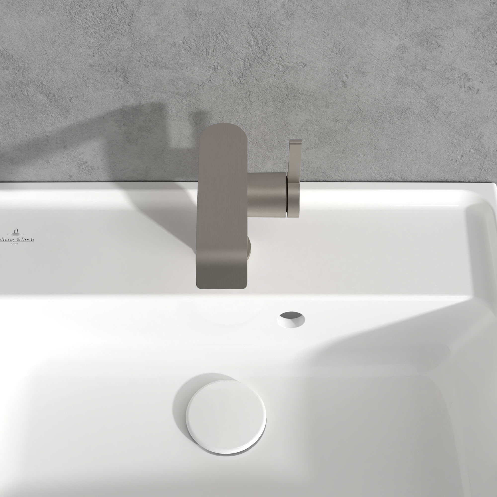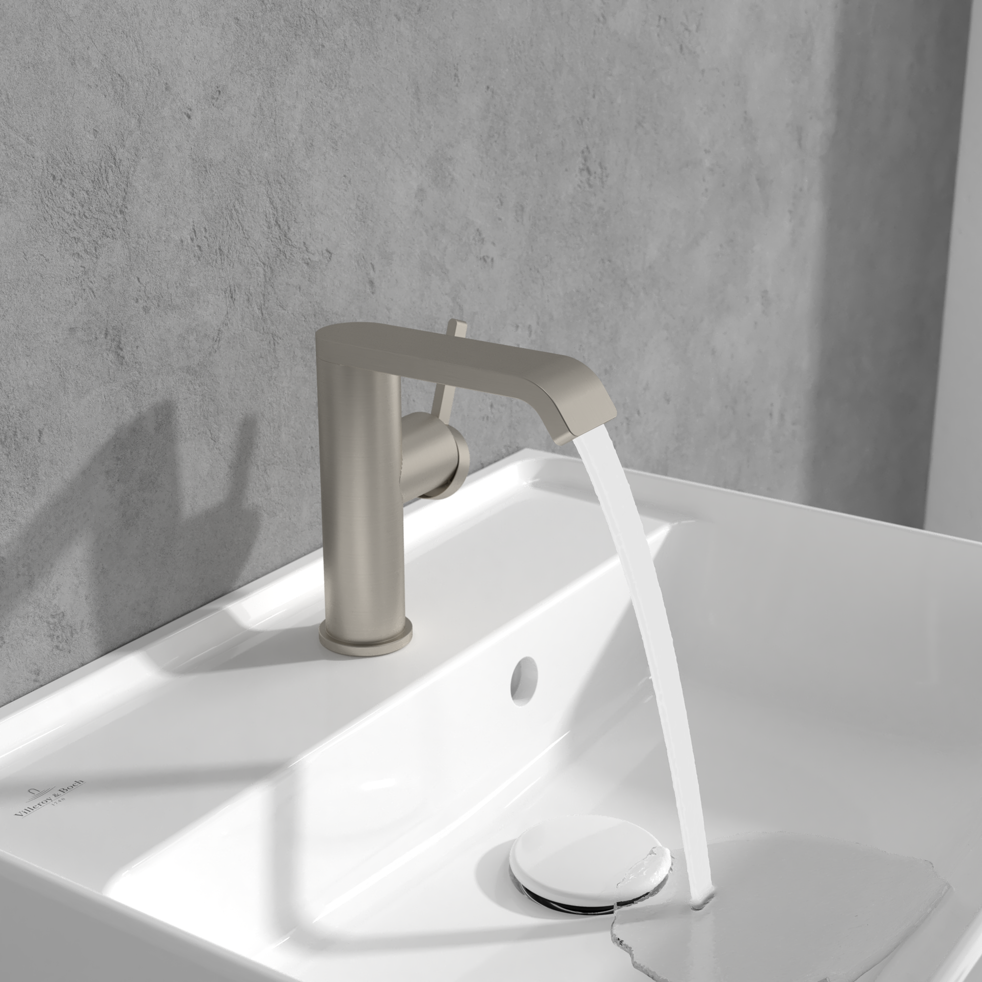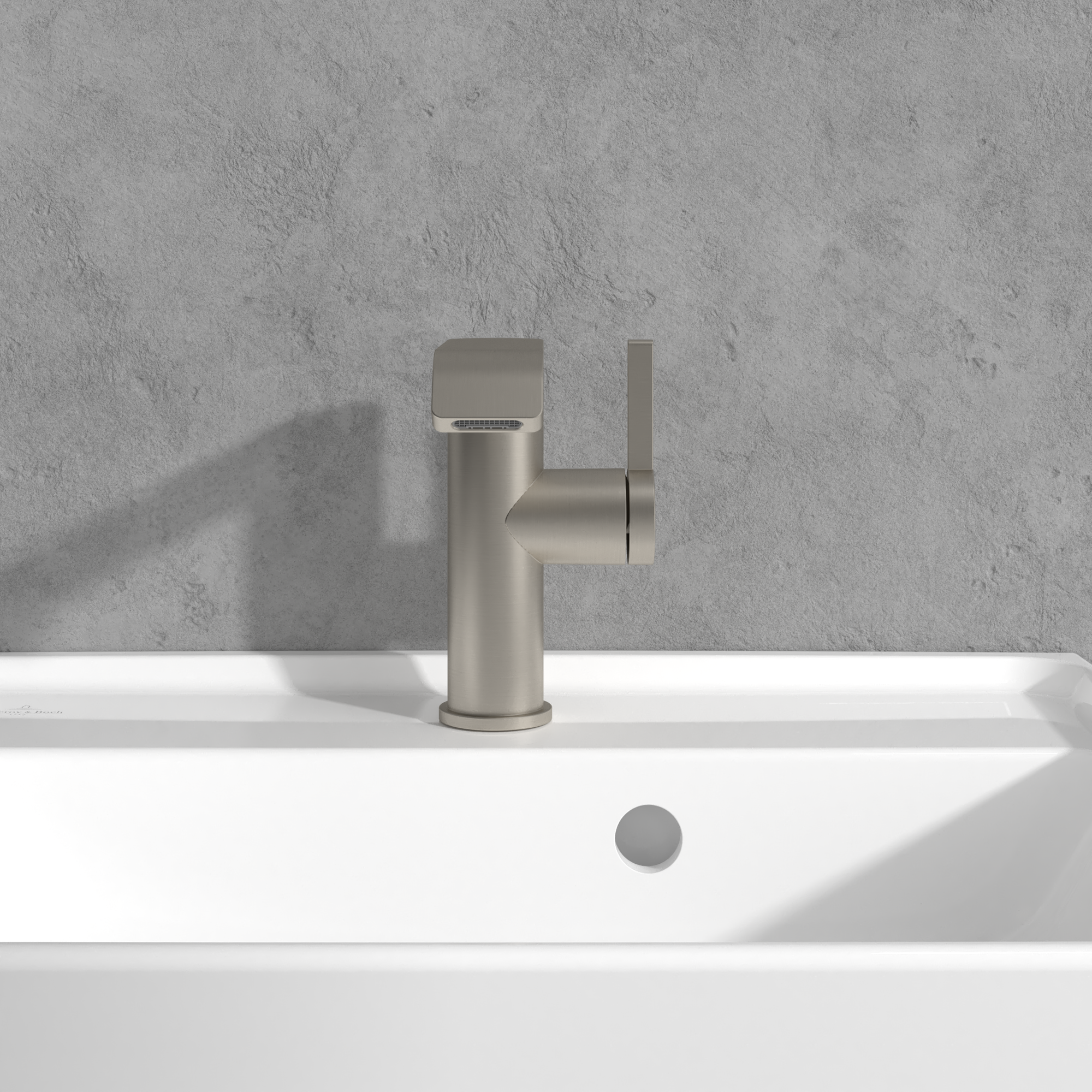 Dawn Basin mixer with side-lever, Without waste, Brushed Nickel Matt