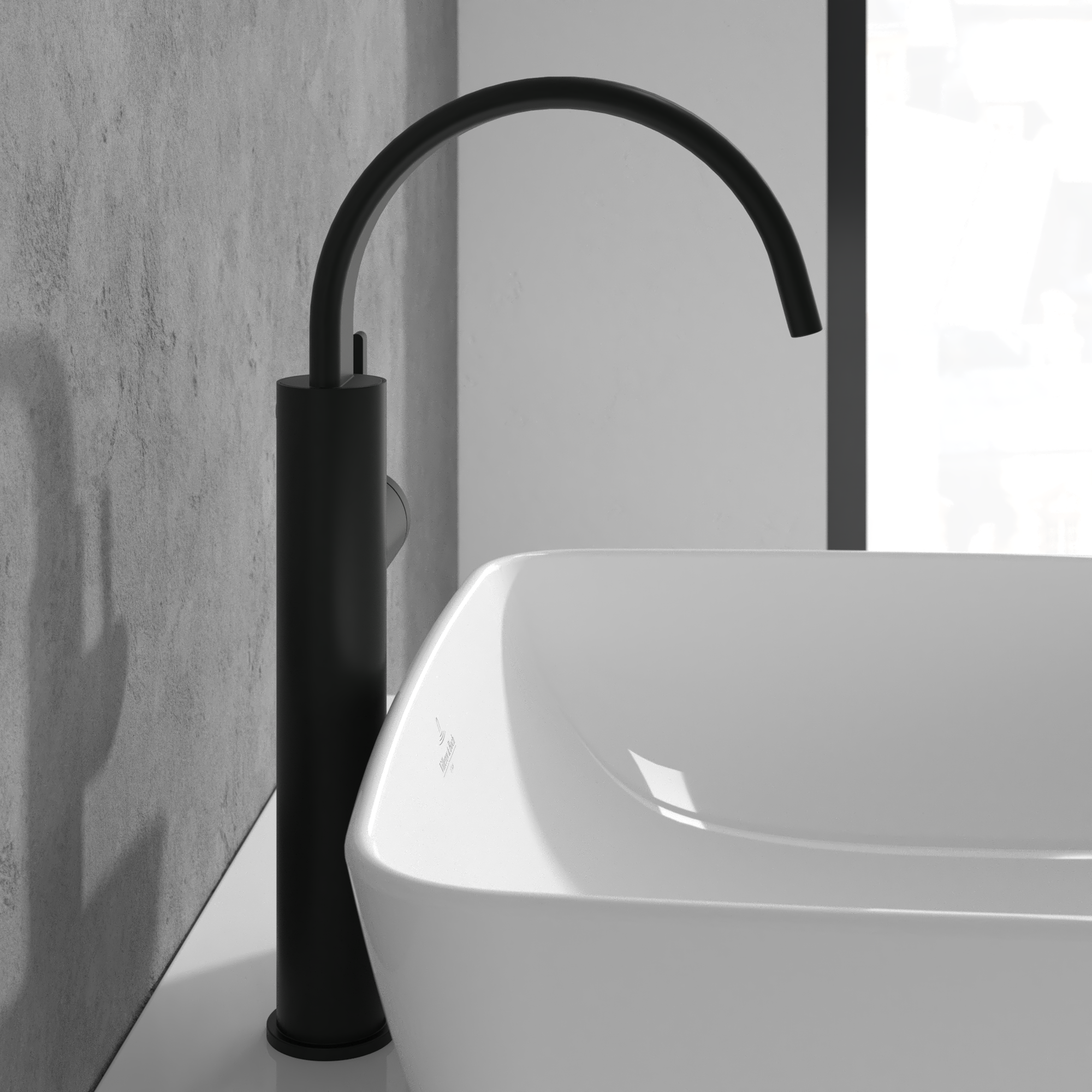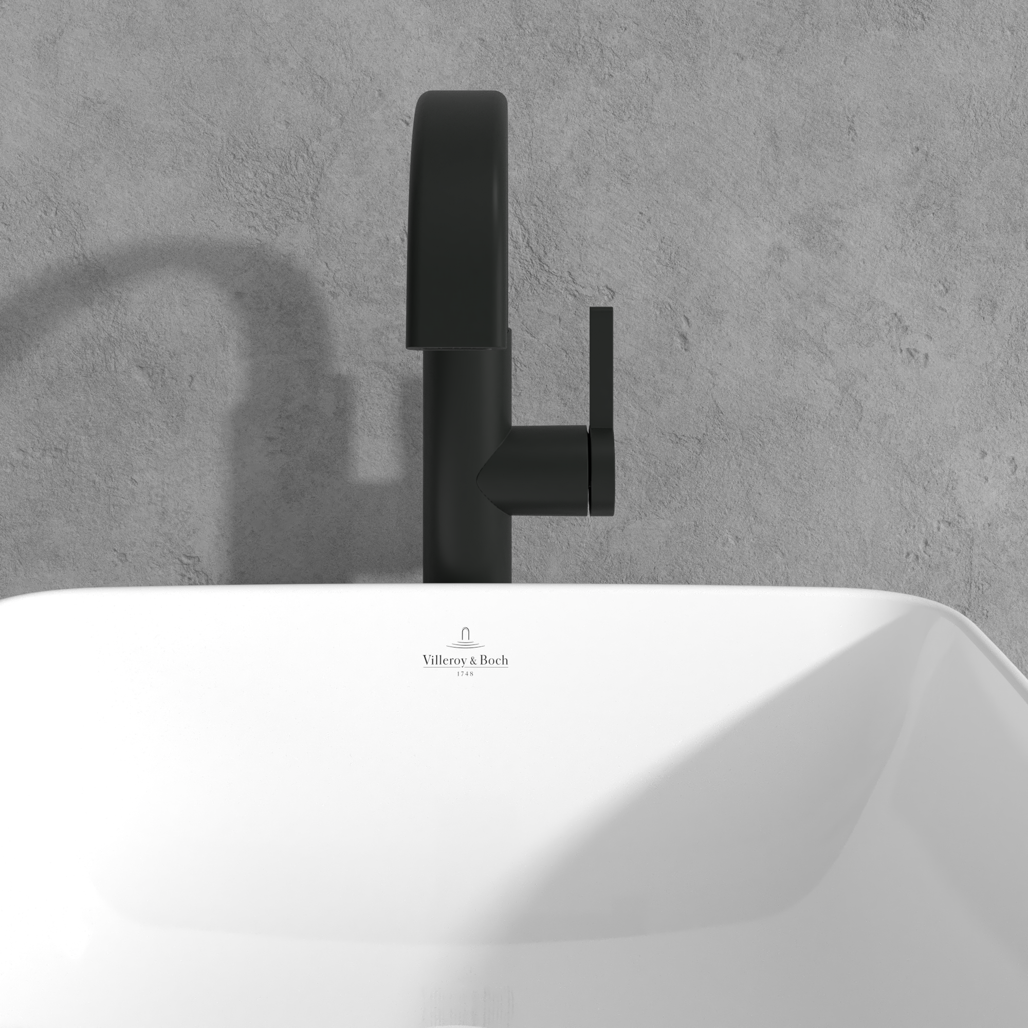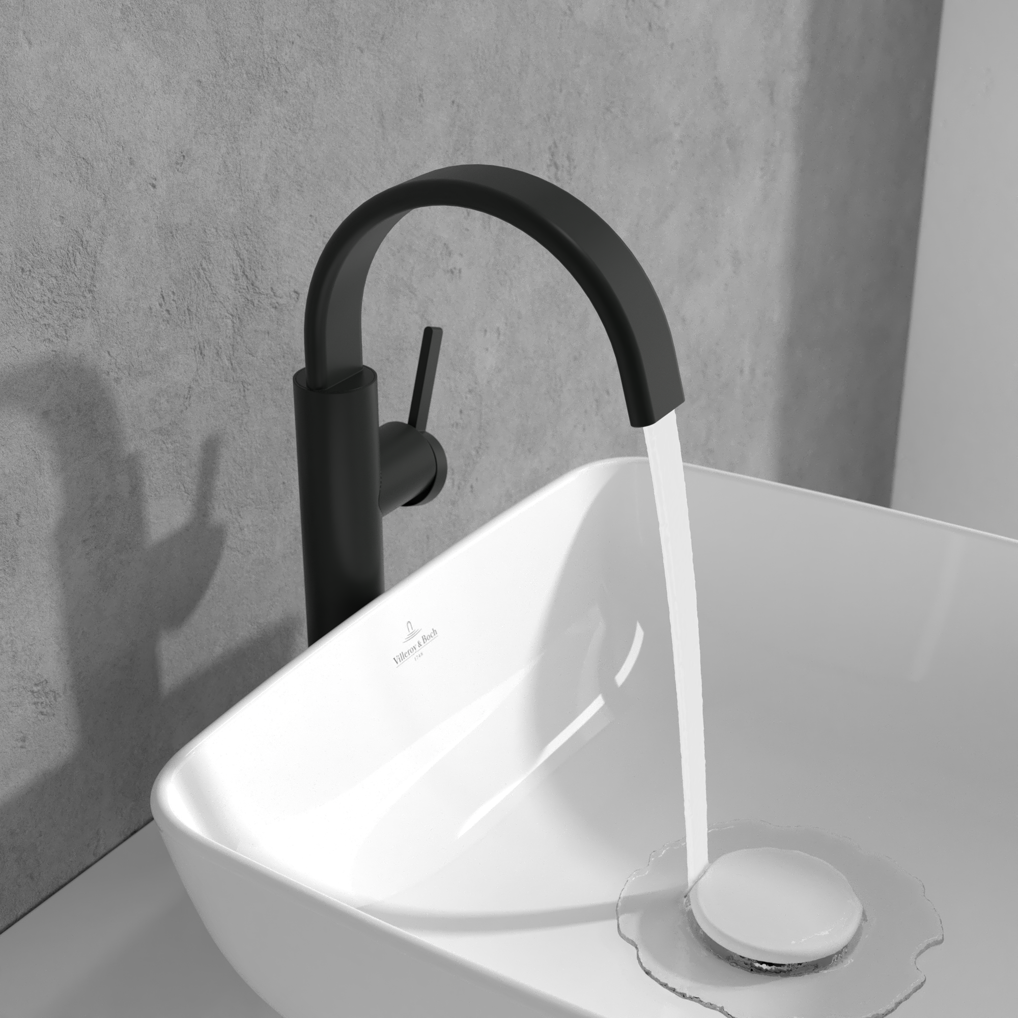 Dawn Tall basin mixer with side-lever, Without waste, Matt Black