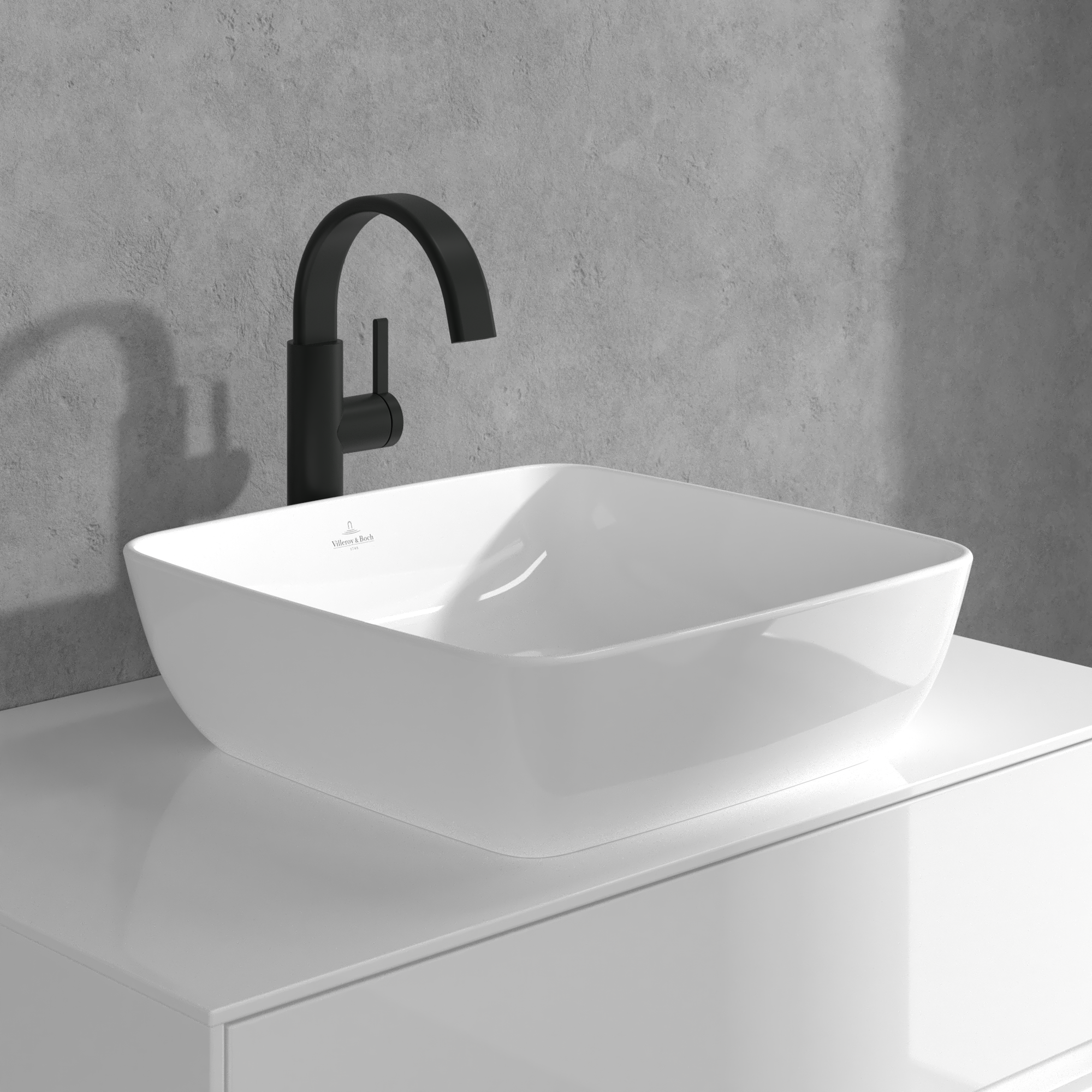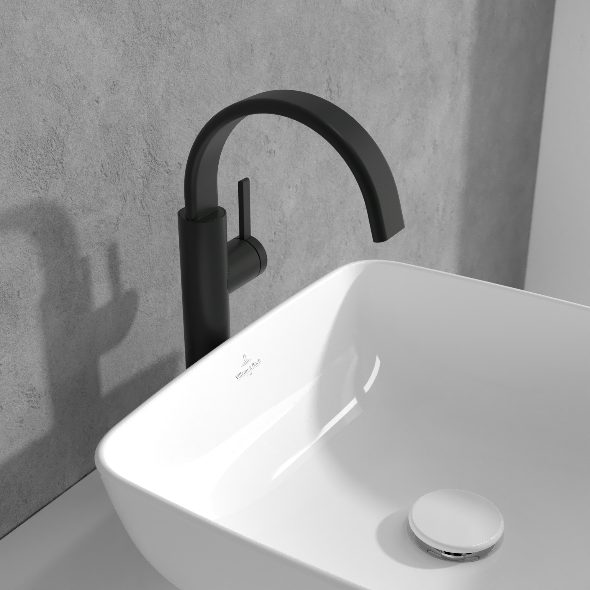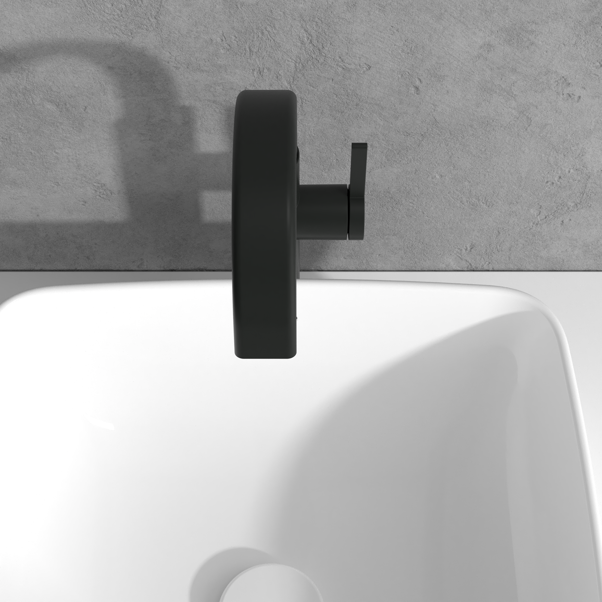 Dawn Tall basin mixer with side-lever, Without waste, Matt Black