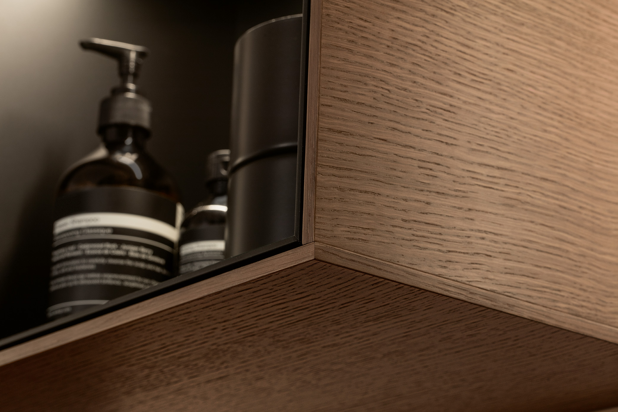 Finion Shelf module, with lighting, 418x358x270mm, Body: Walnut Veneer, Front: Walnut Veneer, Shelf: Black Matt Lacquer