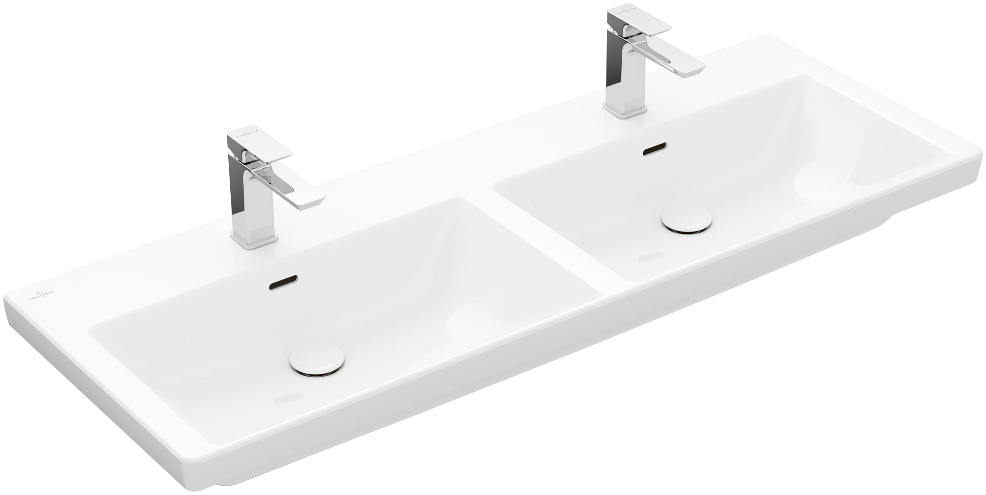 Subway 3.0 Double vanity washbasin, 1300x475x165mm, with overflow, White Alpin CeramicPlus