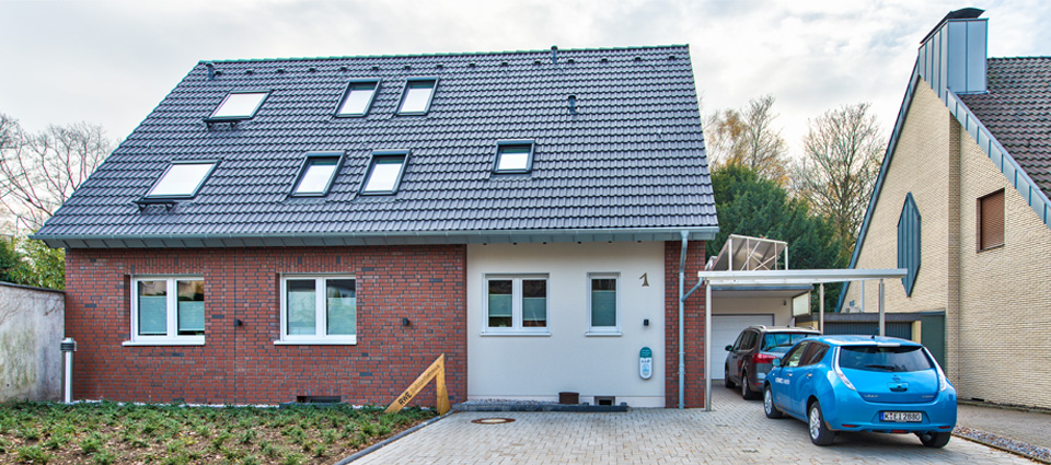 La reforma del edificio antiguo para transformarlo en un innovador modelo de arquitectura de energía positiva se realizó en el marco del proyecto "InnovationCity Ruhr | Modellstadt Bottrop". Se trataba de un proyecto de desarrollo urbano en el que, a través de distintas intervenciones y medidas, debía realizarse una reforma urbanística siguiendo los principios de la arquitectura bioclimática y garantizando al mismo tiempo su emplazamiento industrial. En 2012, los cuatro miembros de la familia Kewitsch, que viven en esta zona piloto, entraron en un concurso público que consistía en transformar un edificio antiguo con necesidad de reformas en una vivienda sostenible. Dentro de la categoría "viviendas unifamiliares y dúplex", el proyecto se organizó bajo la dirección de la empresa RWE Effizienz GmbH y se implementó con ayuda de numerosos fabricantes de renombre pertenecientes al ramo de la construcción, cuyos productos se utilizaron para equipar el nuevo edificio.