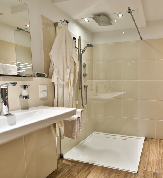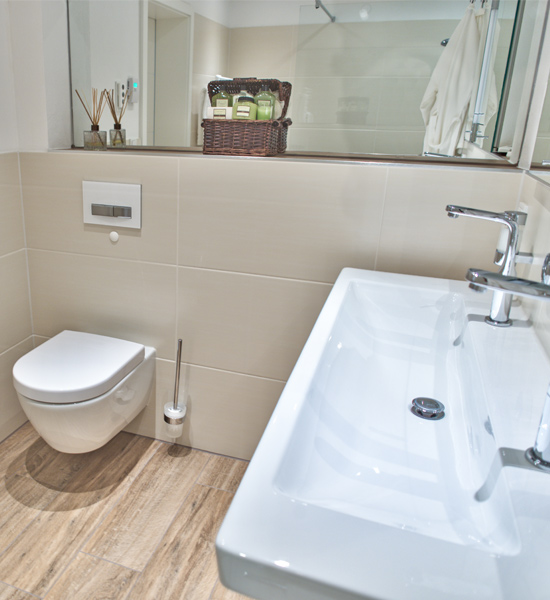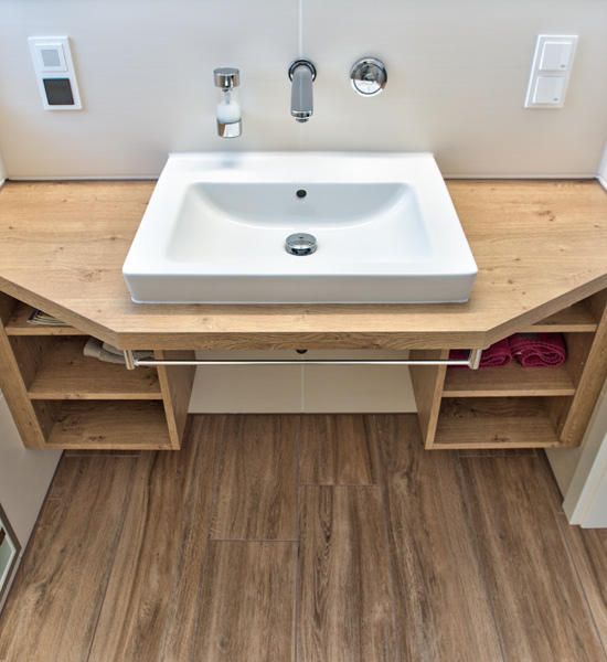 Para lograr un sistema de calefacción eficiente, se optó por una bomba de calor de solución salina y agua, así como por una instalación solar compatible en el techo del garaje. Las habitaciones disponen de suelo radiante de tan solo cuatro centímetros de altura, así como de una calefacción de techo en la planta alta. El extenso sistema de iluminación LED contribuye de forma decisiva al ahorro de energía. Por último, la casa cuenta con una red inteligente de RWE SmartHome: el equipamiento técnico, las persianas, las luces e incluso los electrodomésticos se pueden controlar a distancia. Otra gran aportación al concepto de casa inteligente y sostenible es la que ofrecen las soluciones de baño de Villeroy & Boch. Entre ellas se cuenta el sistema de ahorro de agua AQUAREDUCT, con el que los inodoros de la colección SUBWAY 2.0 solo consumen 3 ó 4,5 litros de agua con el mismo rendimiento de descarga. Gracias a la superficie Quaryl de la ducha SQUARO SUPERFLAT, muy fácil de limpiar, se reduce el consumo de productos de limpieza y de agua, de modo que el concepto general de sostenibilidad se tiene en cuenta hasta en el más mínimo detalle.