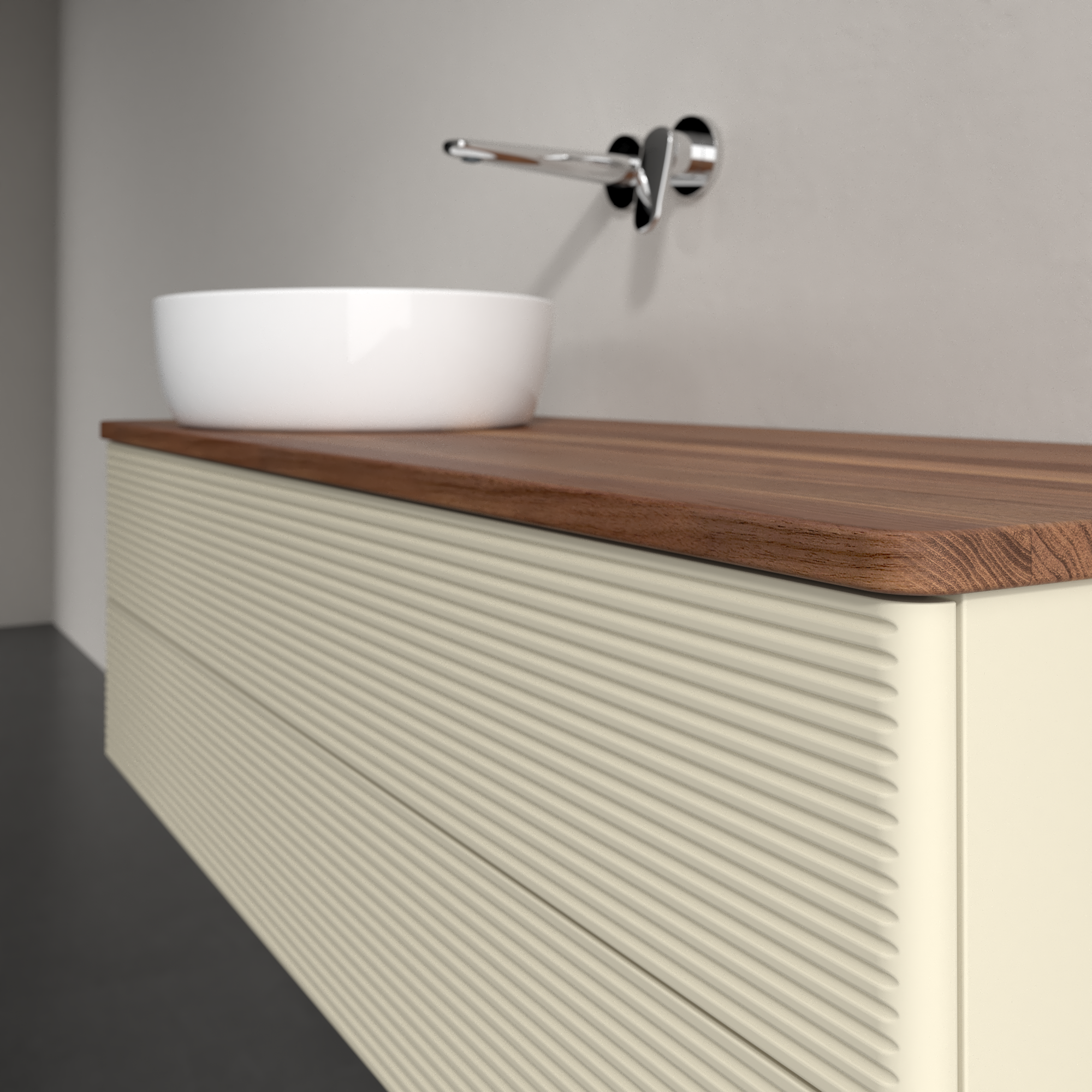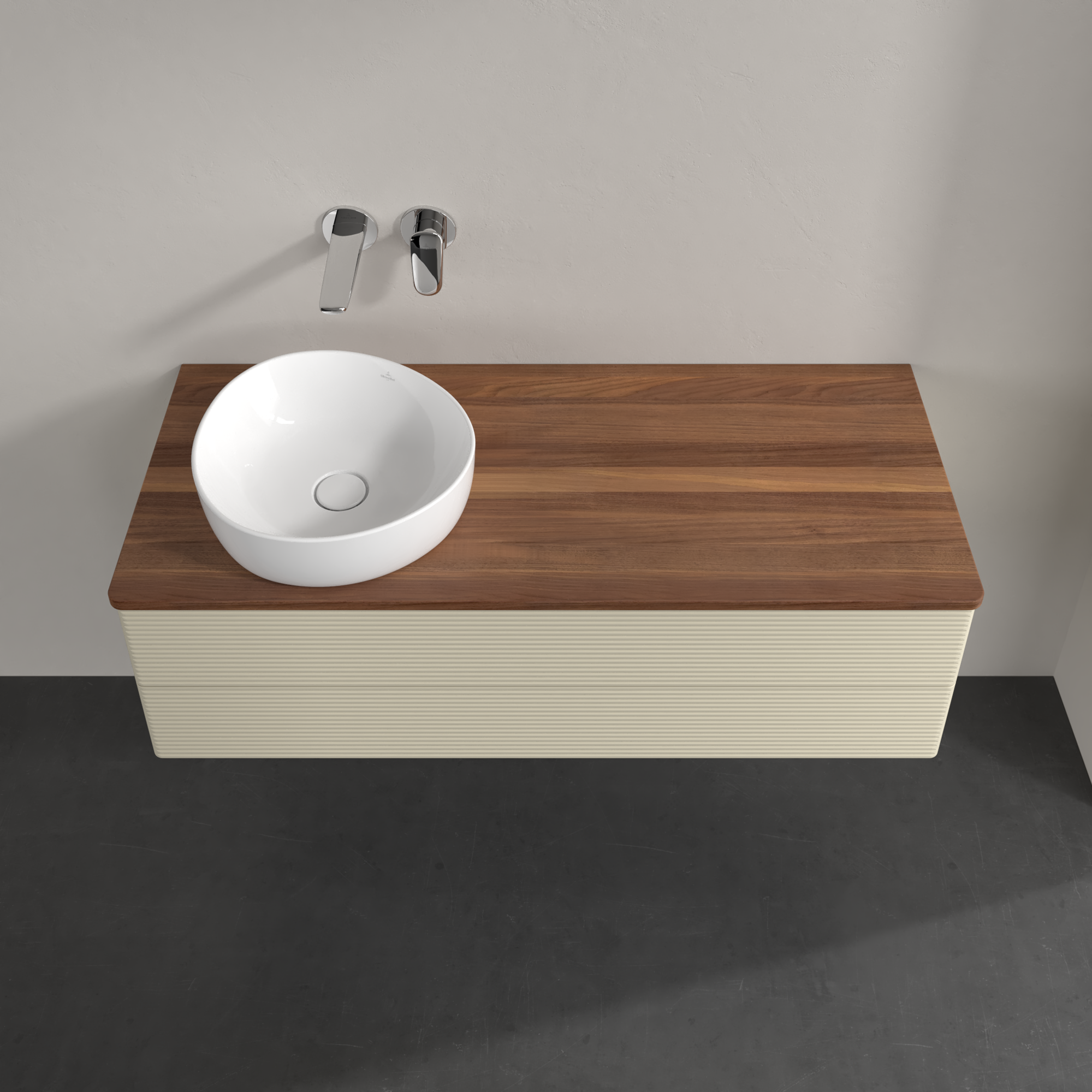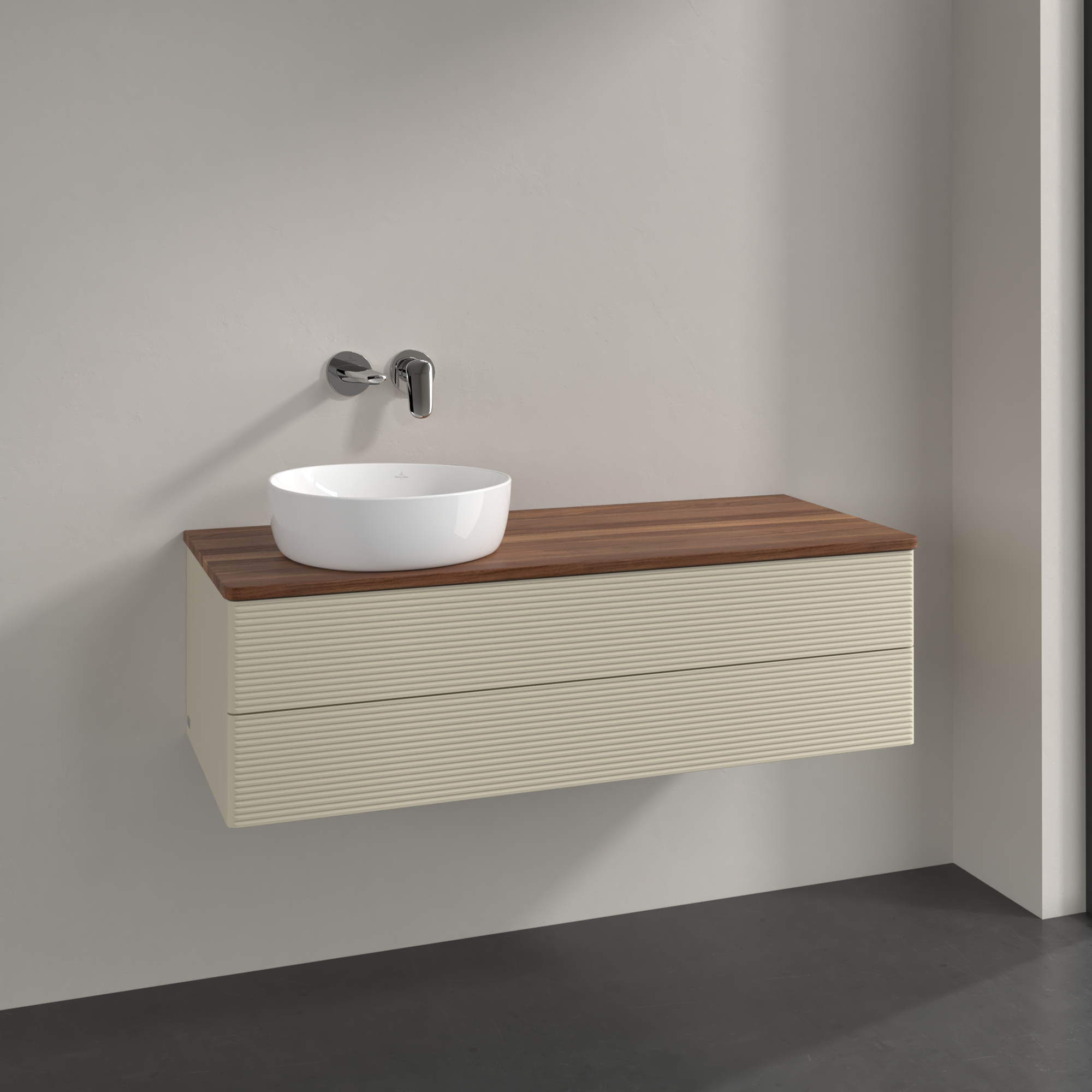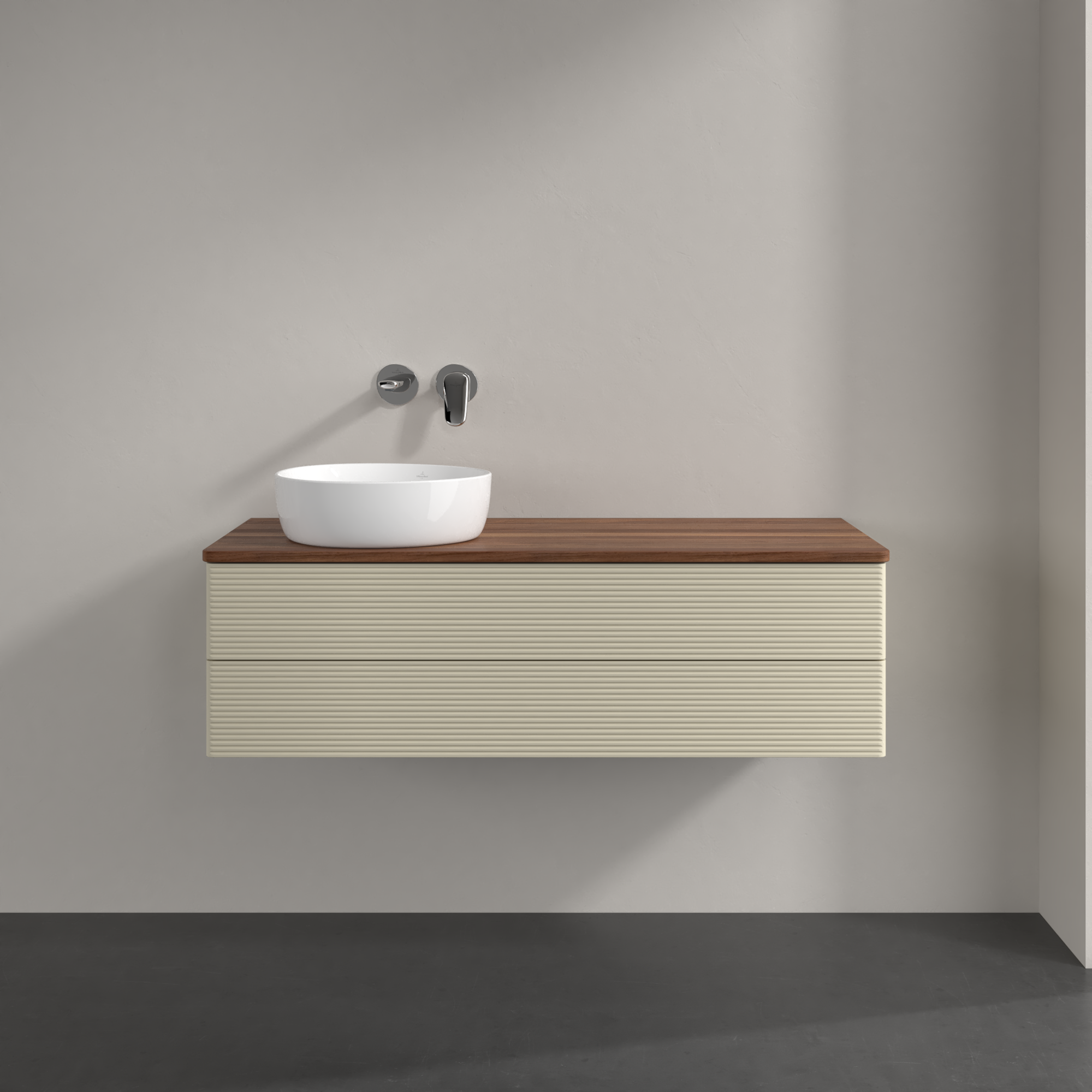 Antao Modulo bajo, 2 compartimentos extraíbles, 1200x360x500mm, Frontal con textura granulosa, Cuerpo: Silk Grey Matt Lacquer, Frontal: Silk Grey Matt Lacquer, Placa de cubierta: Warm Walnut
