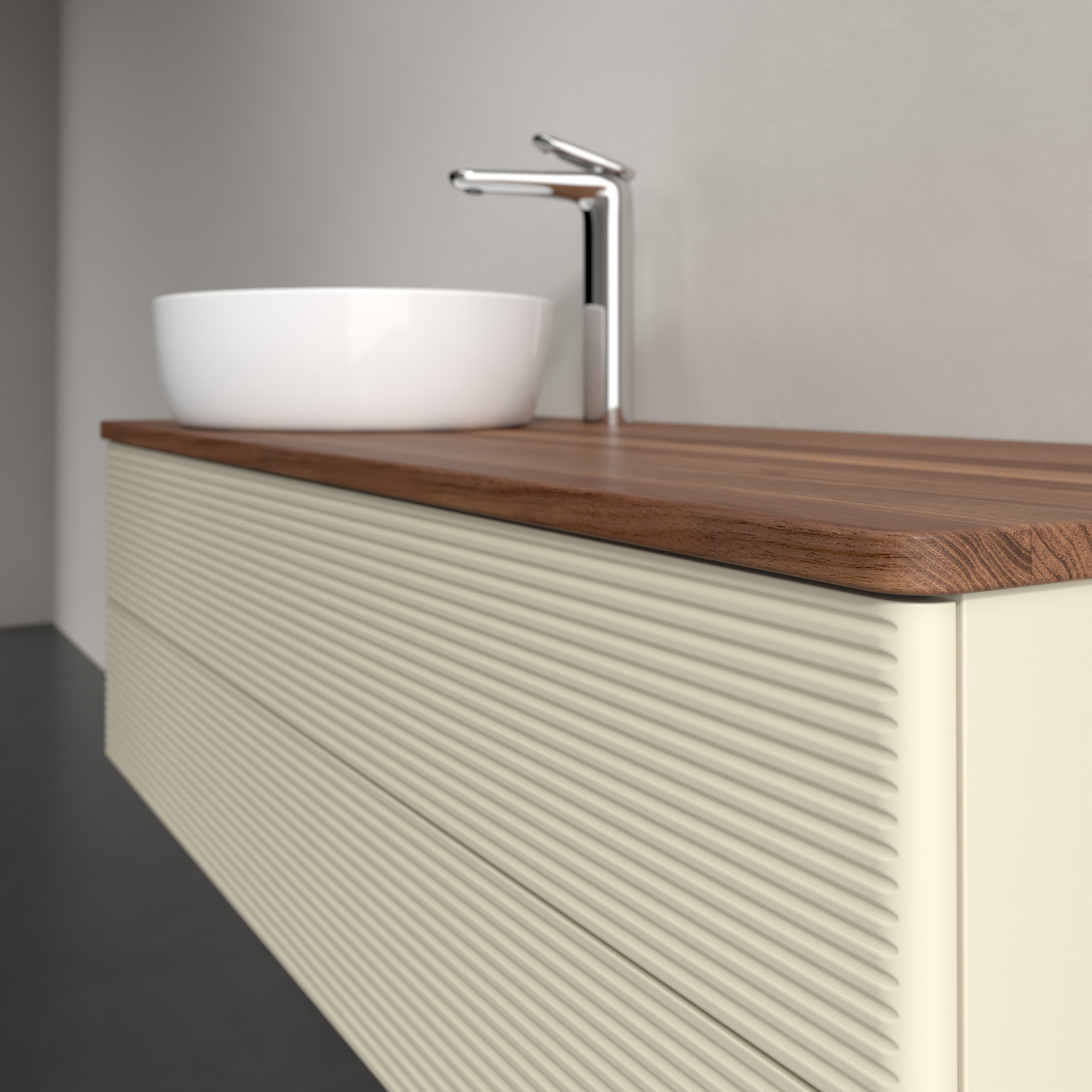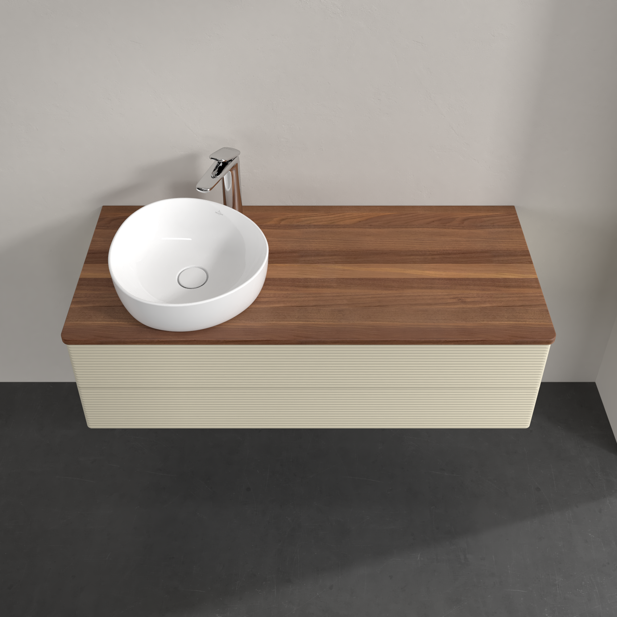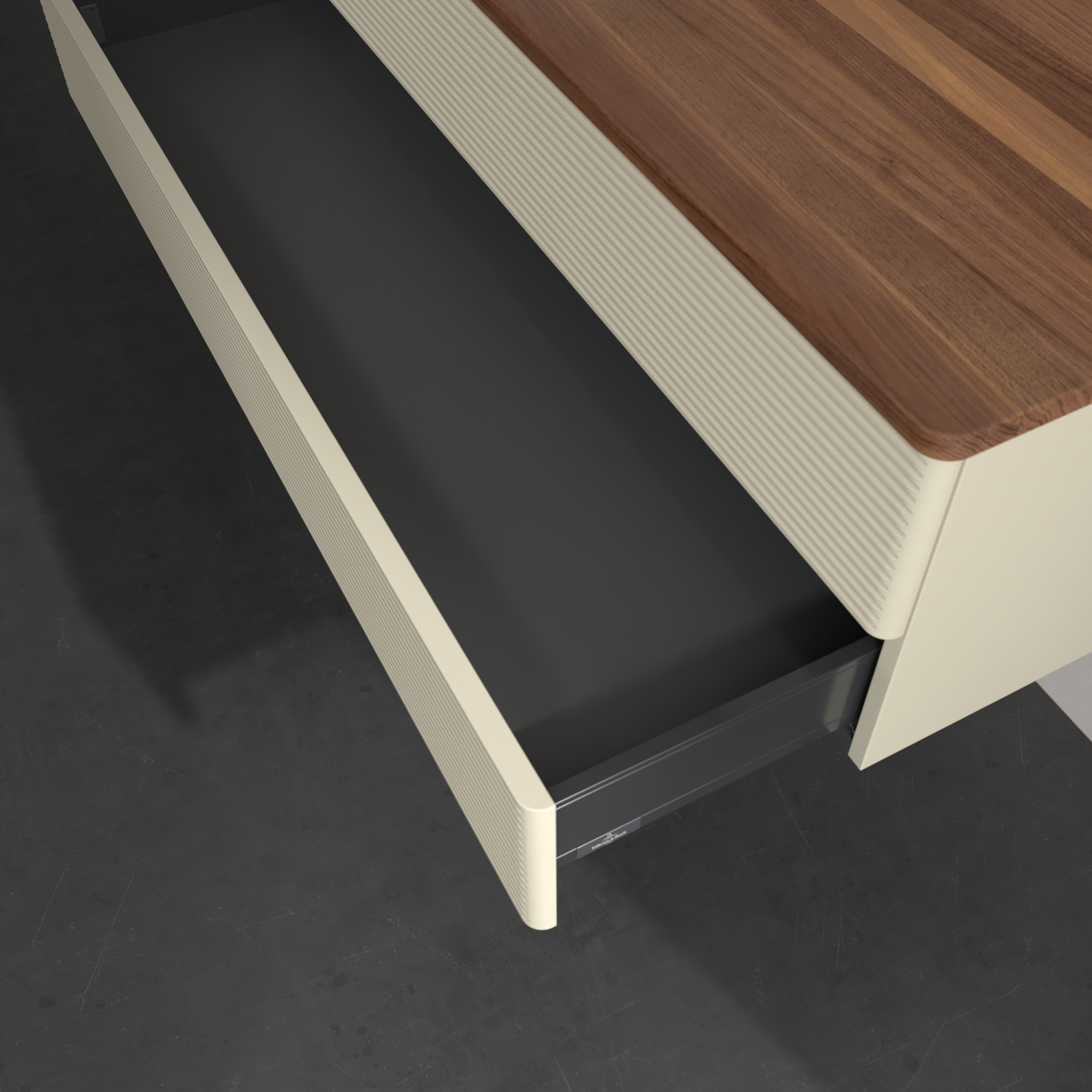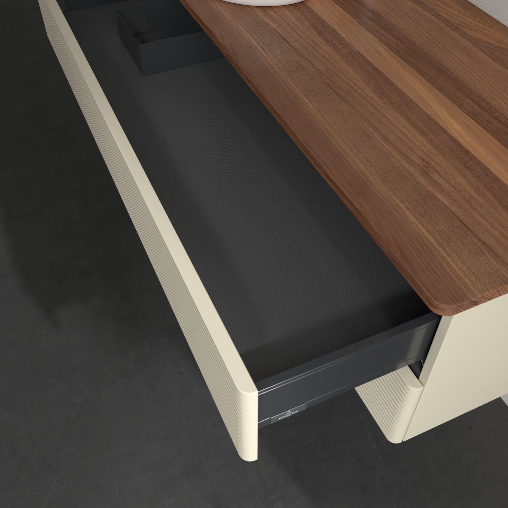 Antao Modulo bajo, 2 compartimentos extraíbles, 1200x360x500mm, Frontal con textura granulosa, Cuerpo: Silk Grey Matt Lacquer, Frontal: Silk Grey Matt Lacquer, Placa de cubierta: Warm Walnut