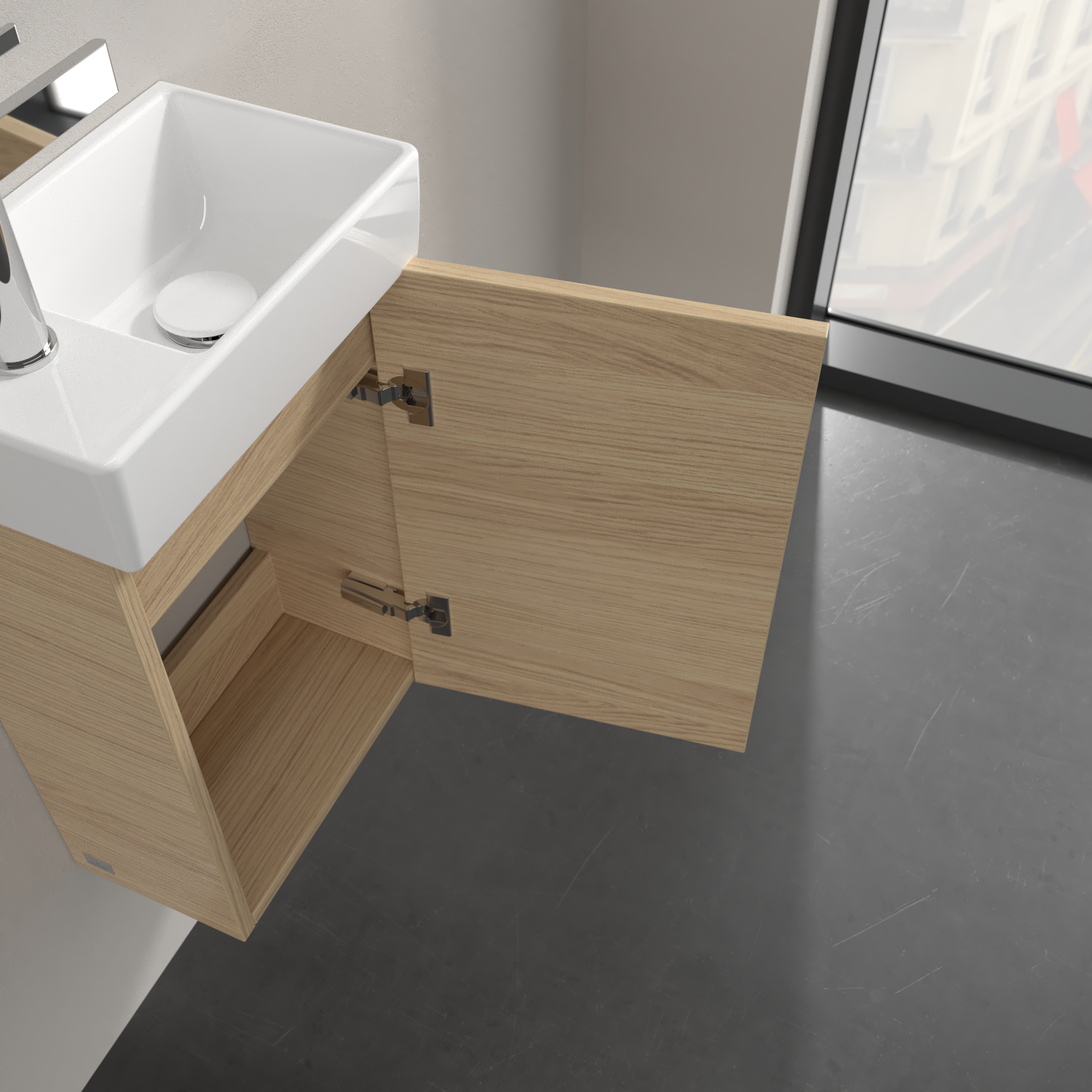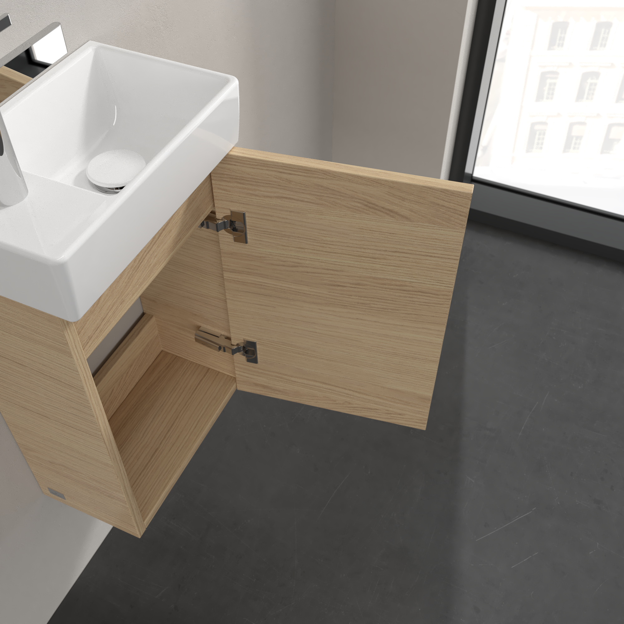 Avento Vanity unit, 1 door, 340x514x200mm, Body: Nordic Oak, Front: Nordic Oak