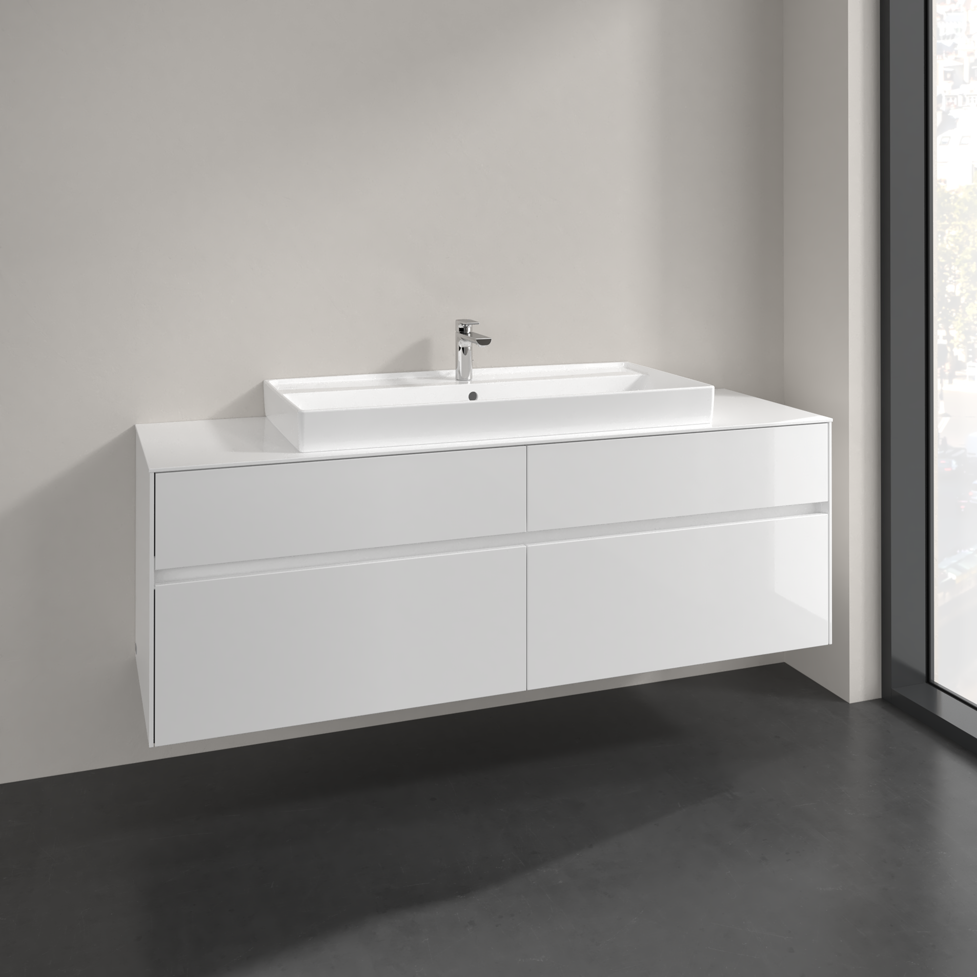 Collaro Vanity unit, 4 pull-out compartments, 1600x548x500mm, Body: Glossy White, Front: Glossy White