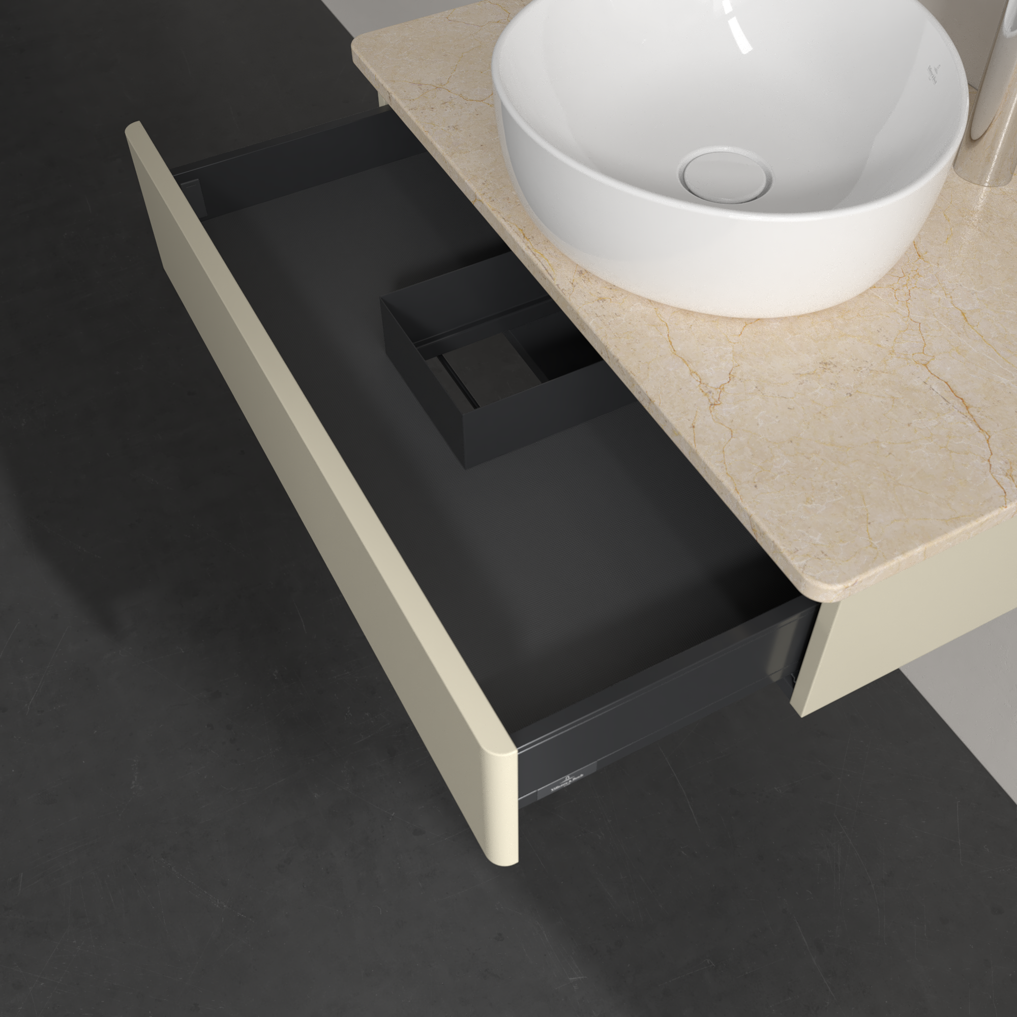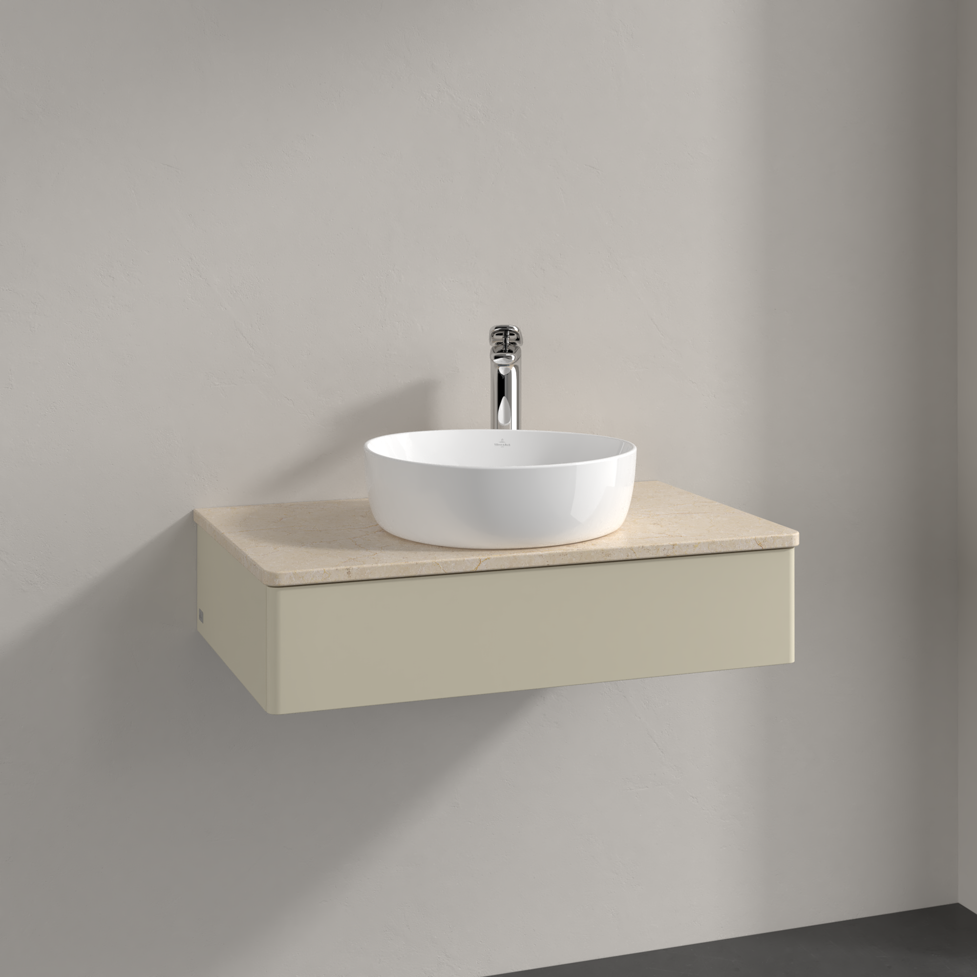Antao Meuble sous plan, 1 tiroir sur rails, 800x190x500mm, Façade sans structure, Caisson: Silk Grey Matt Lacquer, Façade: Silk Grey Matt Lacquer, Plaque de recouvrement: Botticino