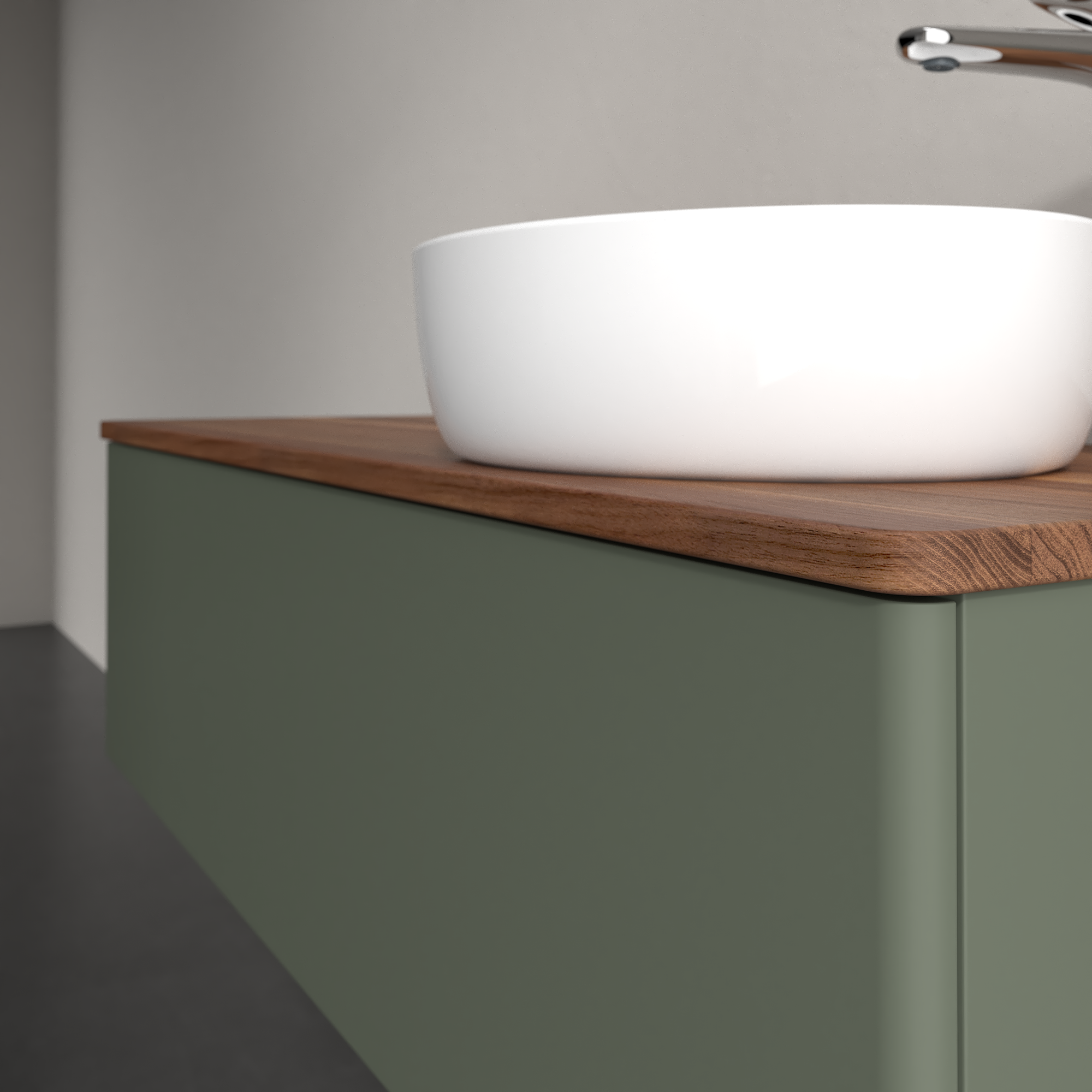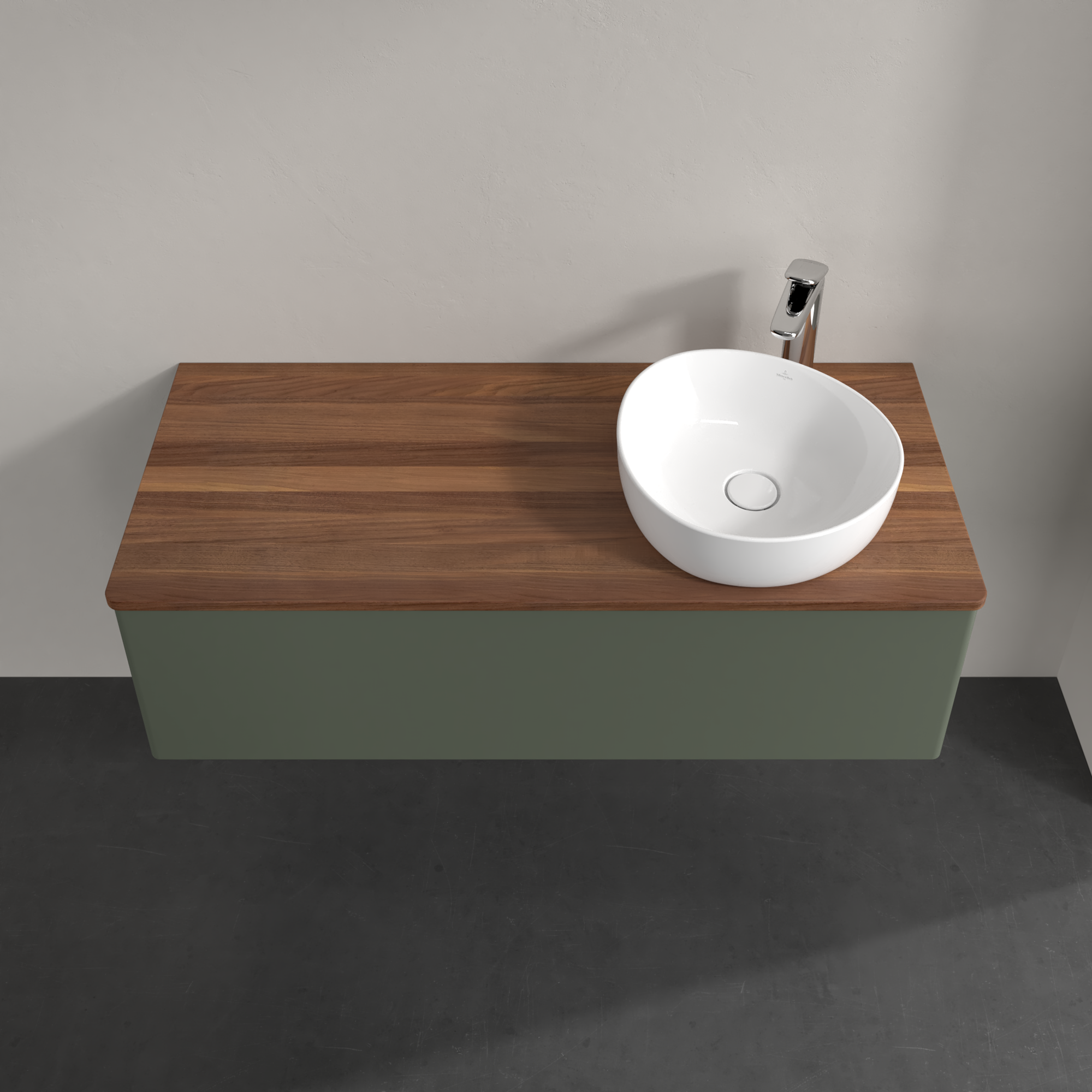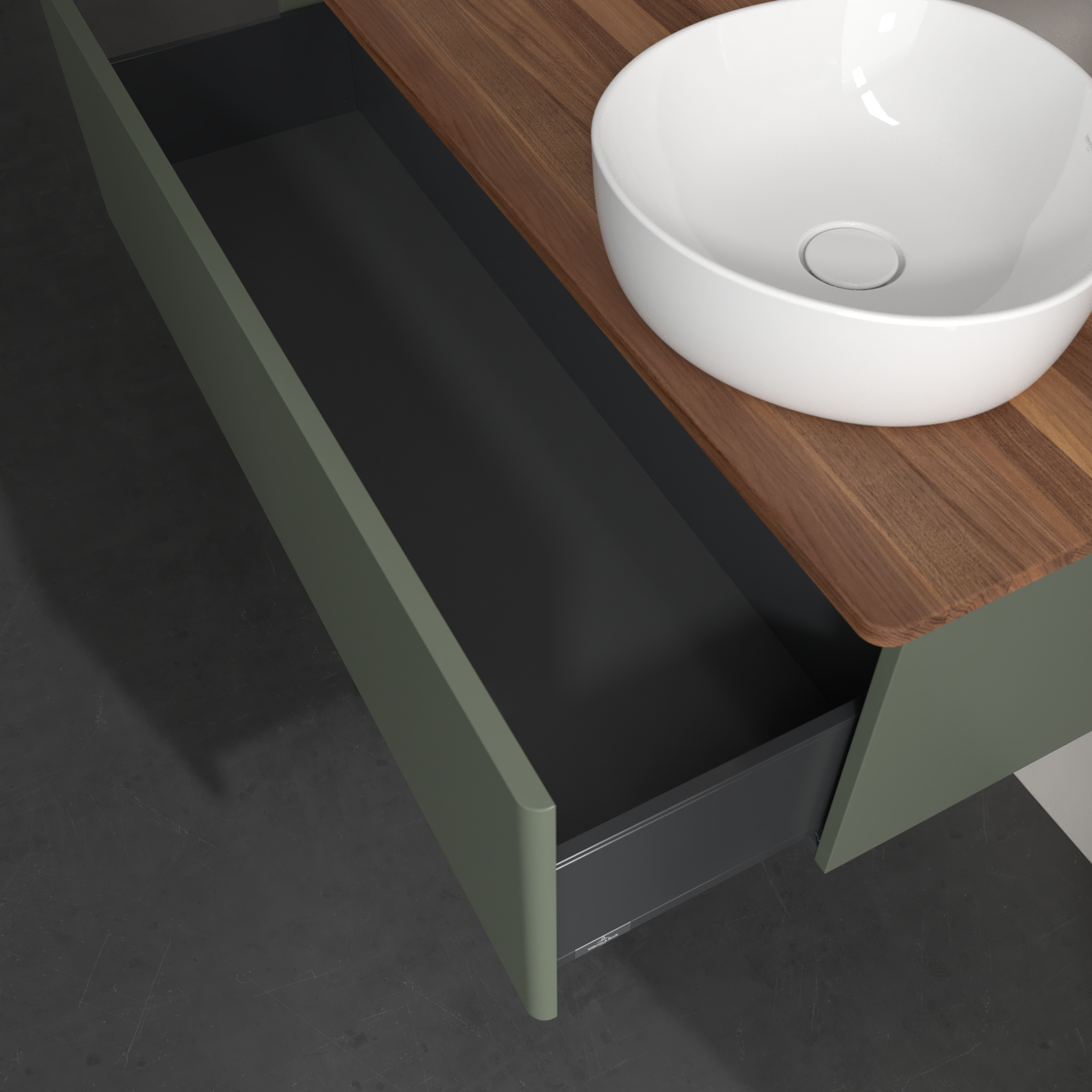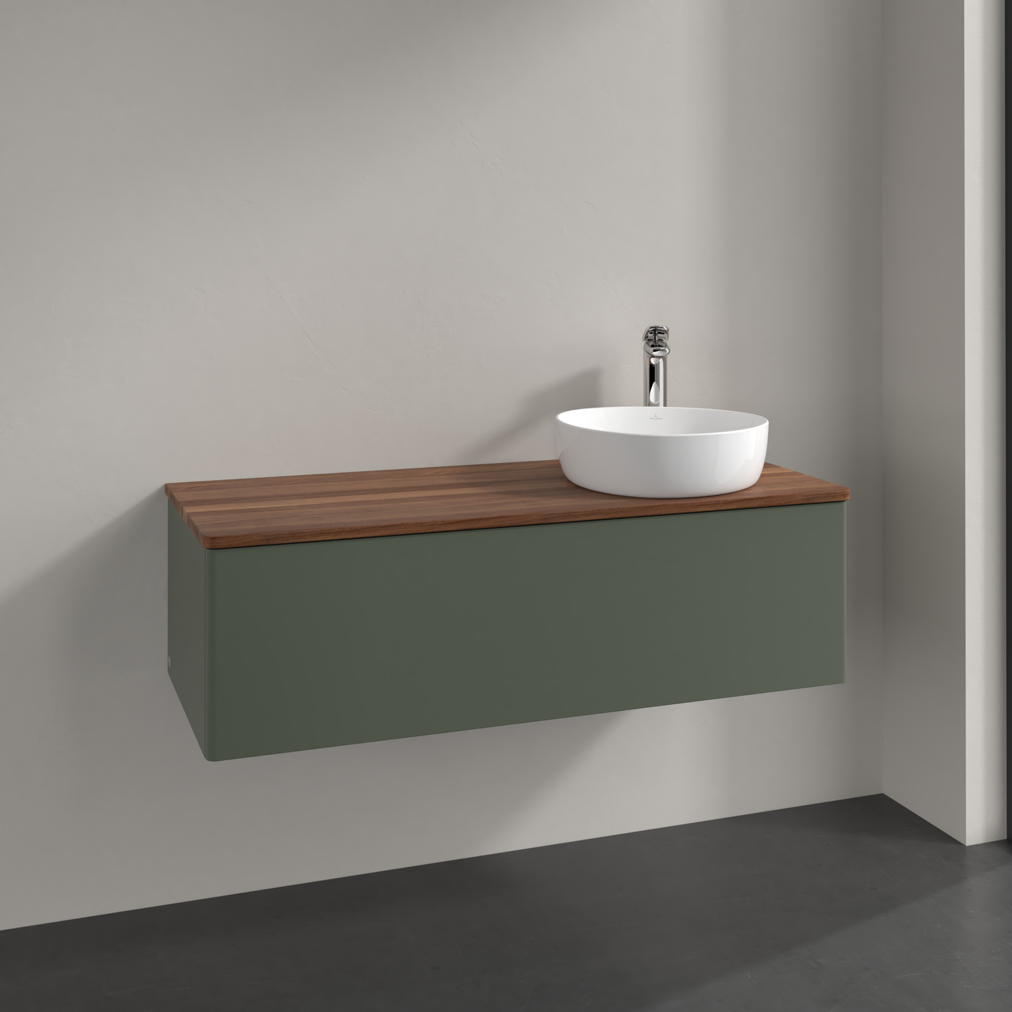 Antao Meuble sous plan, 1 tiroir sur rails, 1200x360x500mm, Façade sans structure, Caisson: Leaf Green Matt Lacquer, Façade: Leaf Green Matt Lacquer, Plaque de recouvrement: Warm Walnut