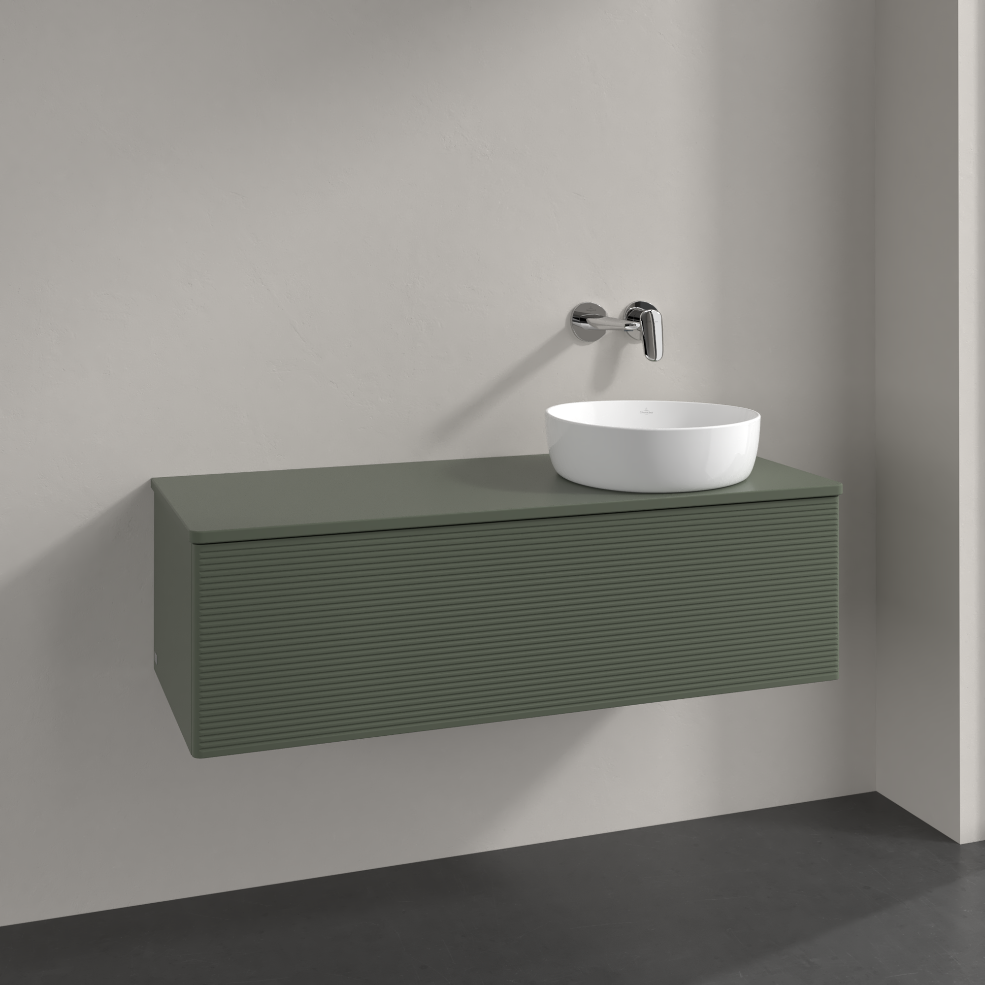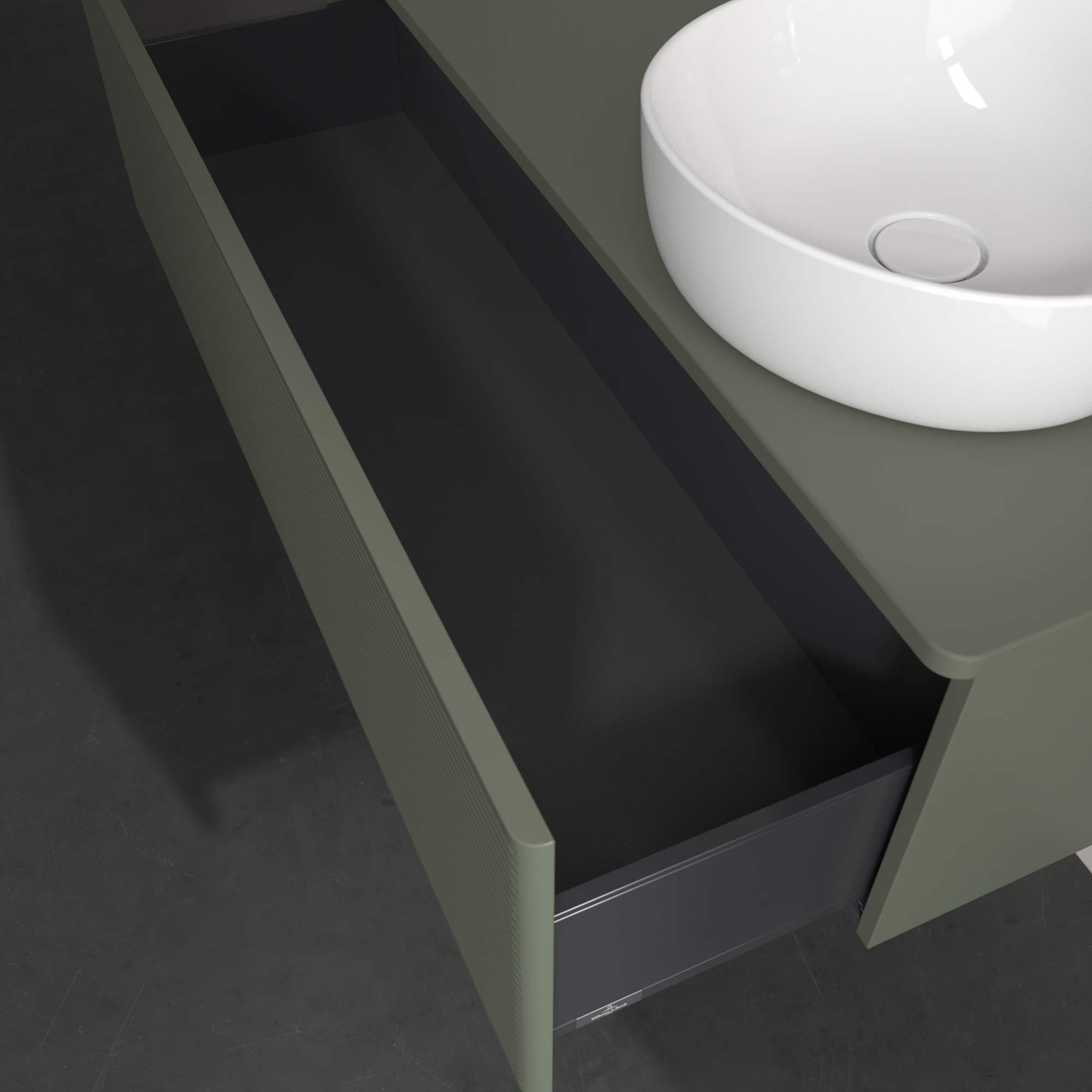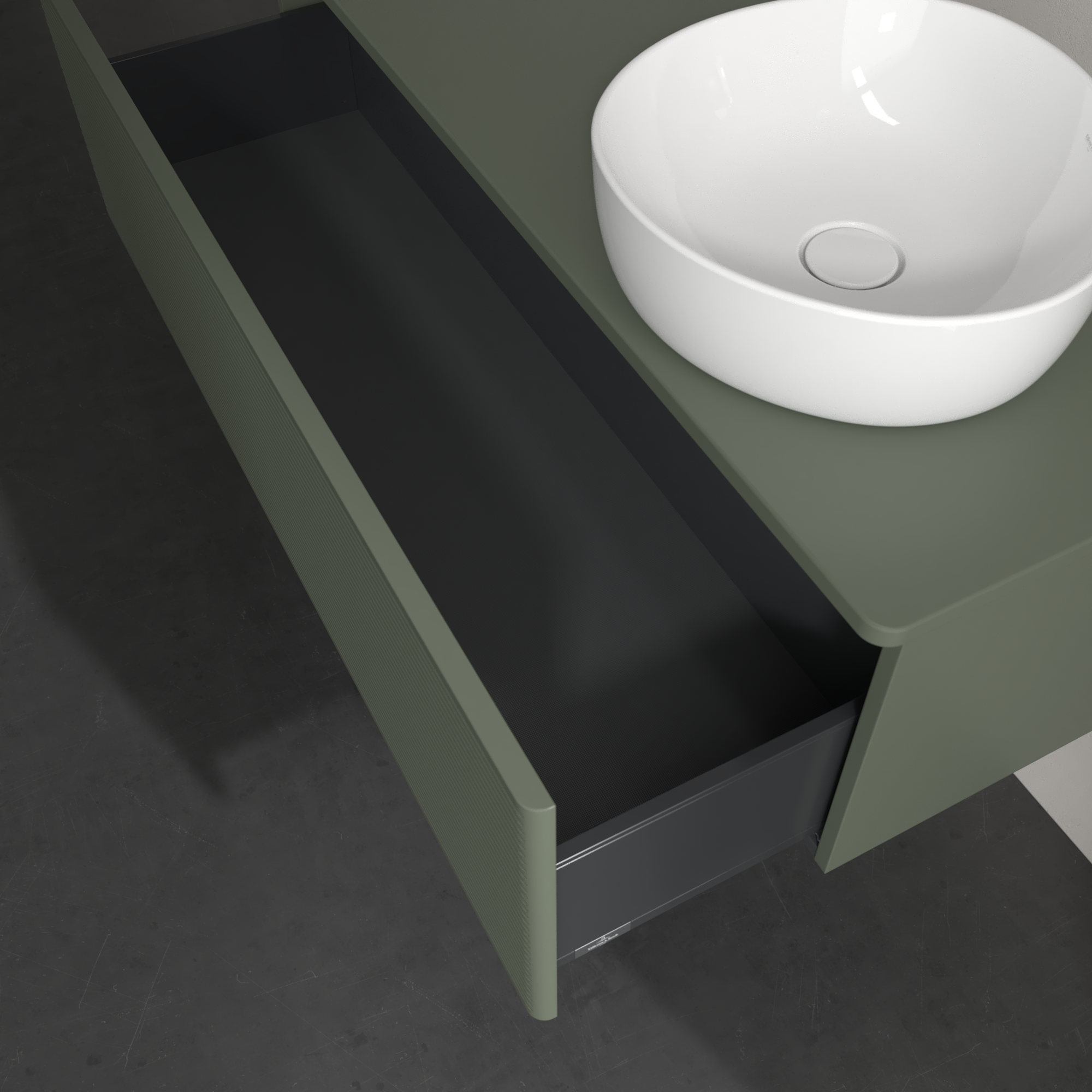 Antao Meuble sous plan, 1 tiroir sur rails, 1200x360x500mm, Façade avec structure, Caisson: Leaf Green Matt Lacquer, Façade: Leaf Green Matt Lacquer, Plaque de recouvrement: Leaf Green Matt Lacquer