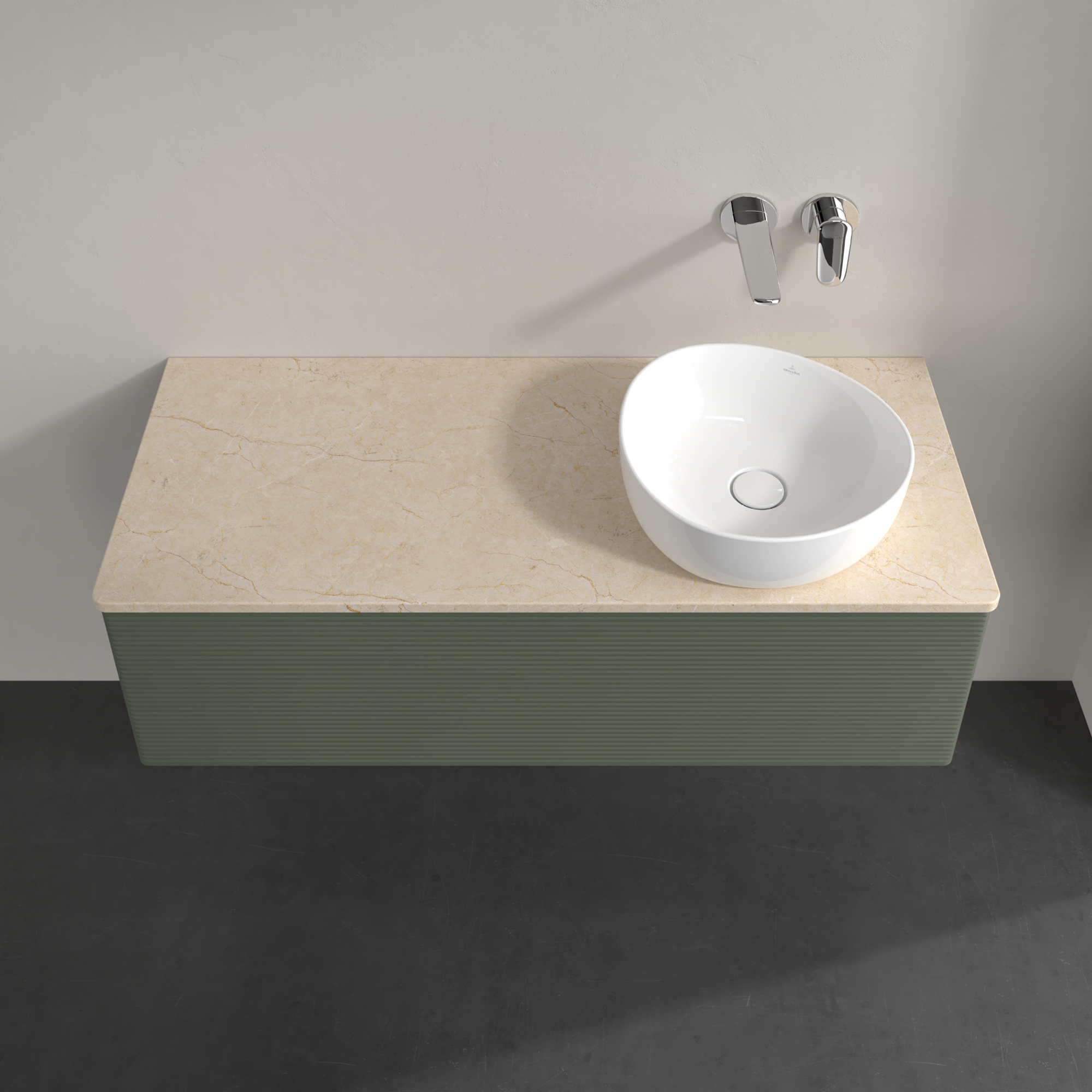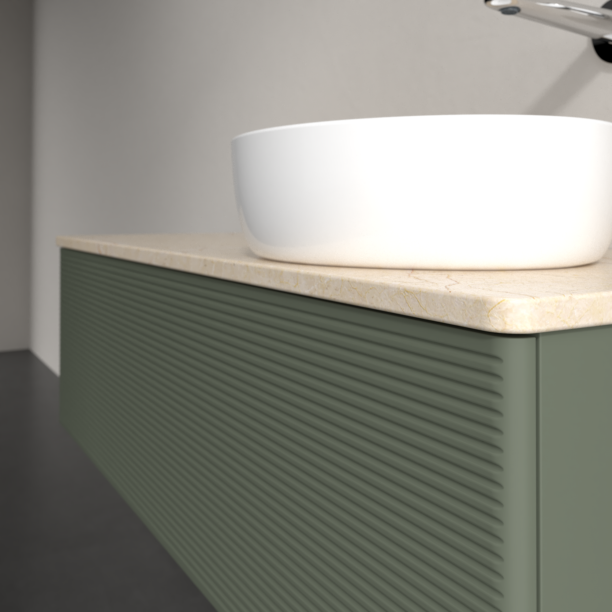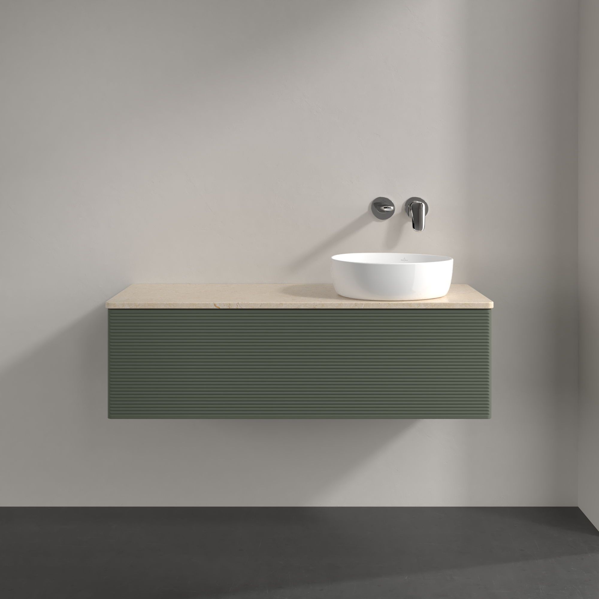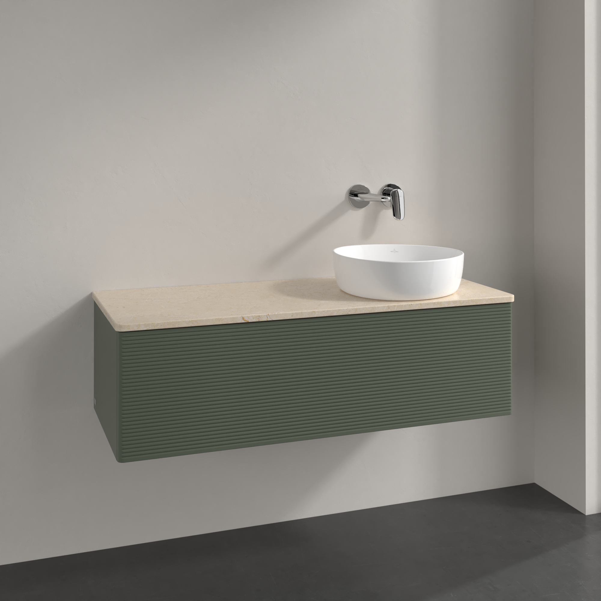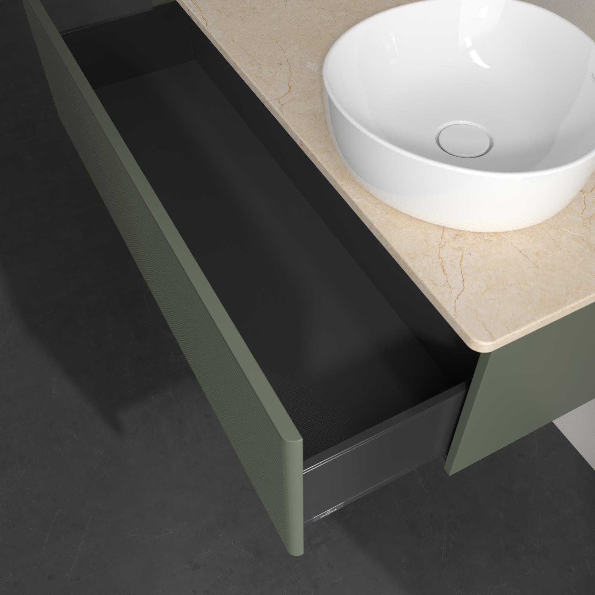 Antao Meuble sous plan, 1 tiroir sur rails, 1200x360x500mm, Façade avec structure, Caisson: Leaf Green Matt Lacquer, Façade: Leaf Green Matt Lacquer, Plaque de recouvrement: Botticino