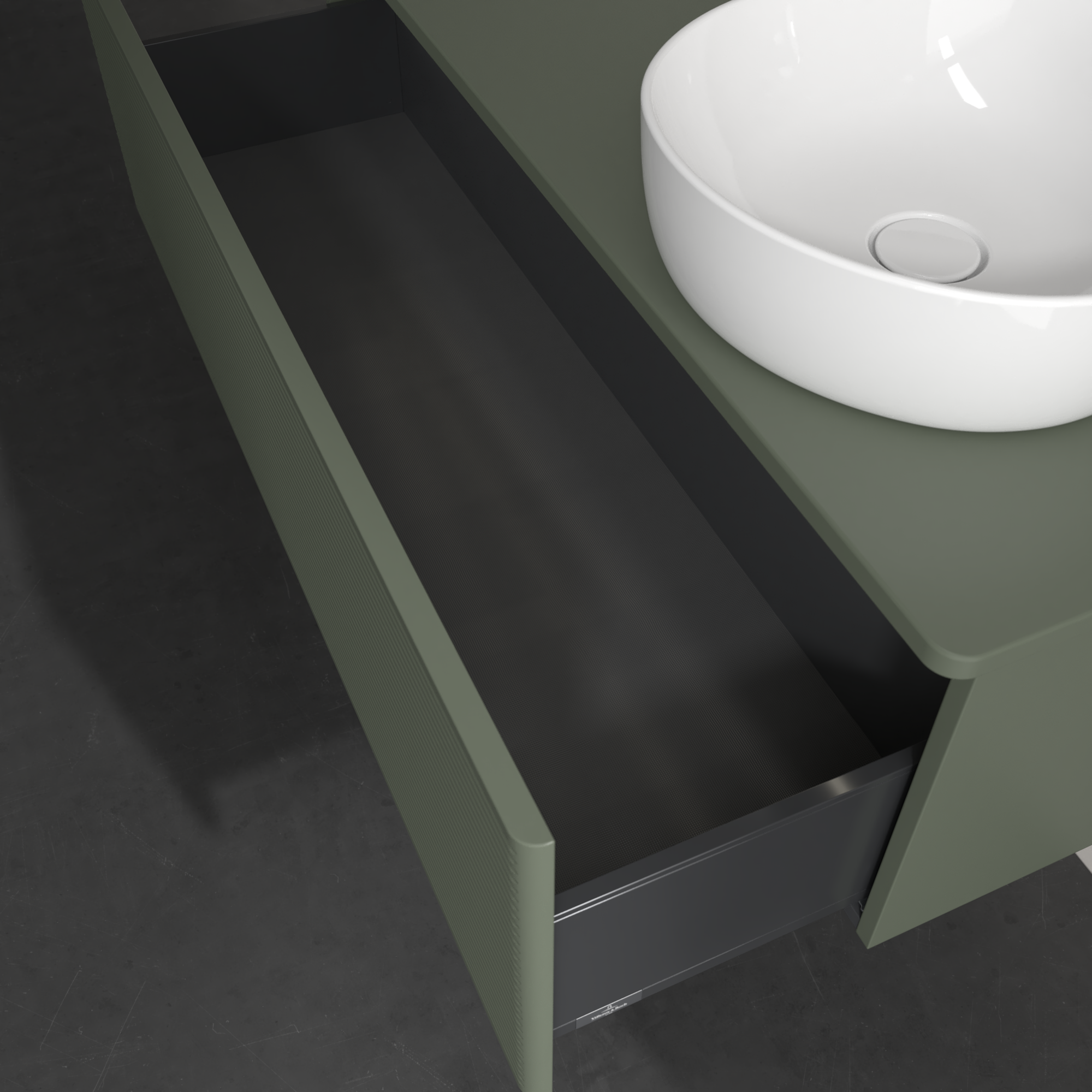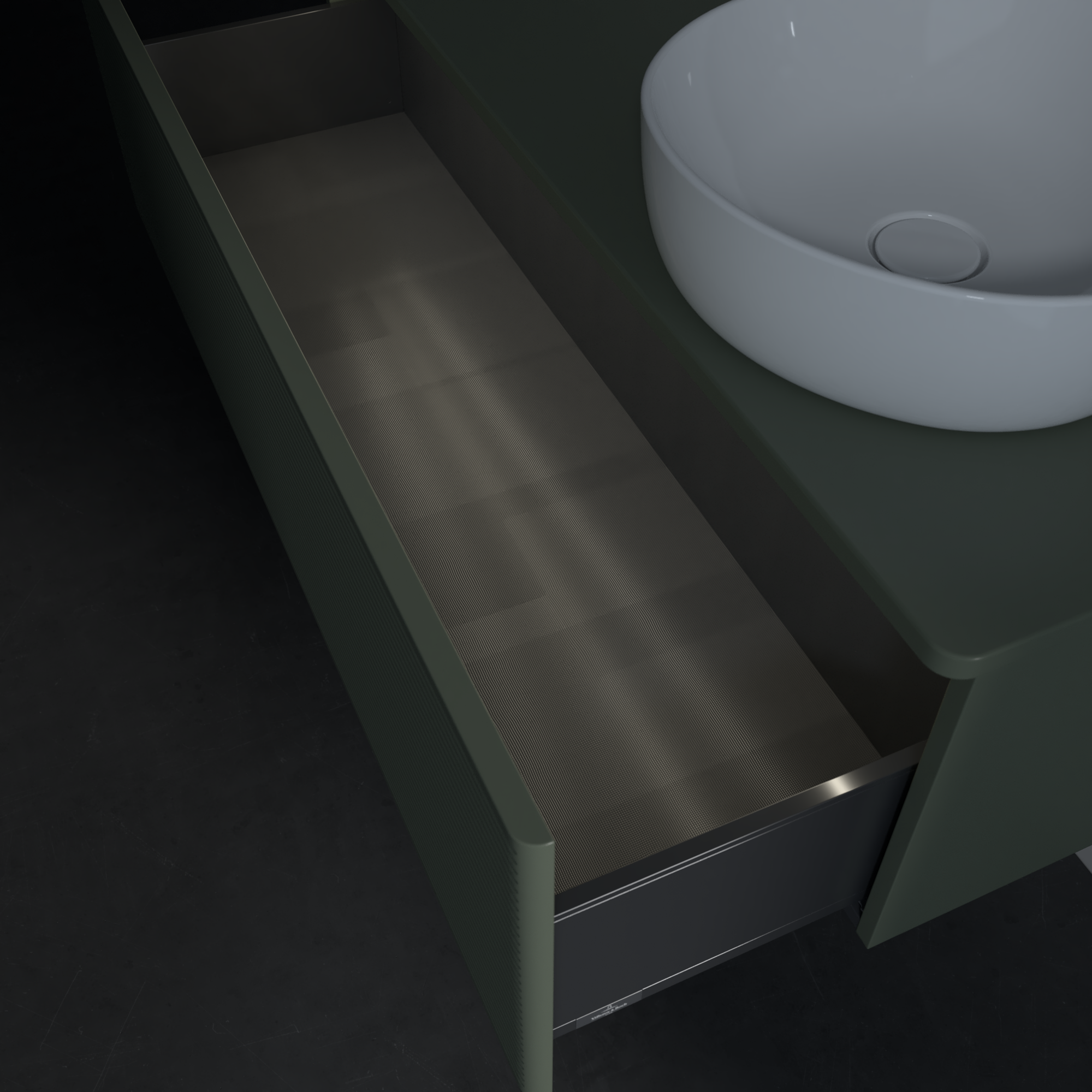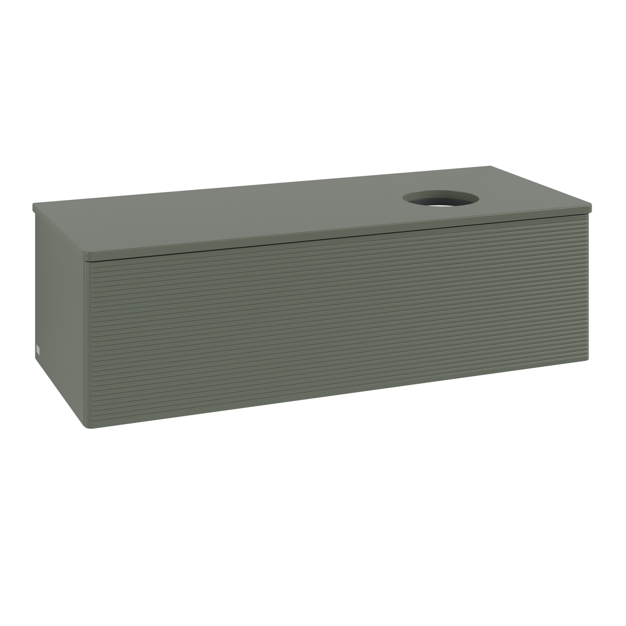 Antao Meuble sous plan, avec éclairage, 1 tiroir sur rails, 1200x360x500mm, Façade avec structure, Caisson: Leaf Green Matt Lacquer, Façade: Leaf Green Matt Lacquer, Plaque de recouvrement: Leaf Green Matt Lacquer