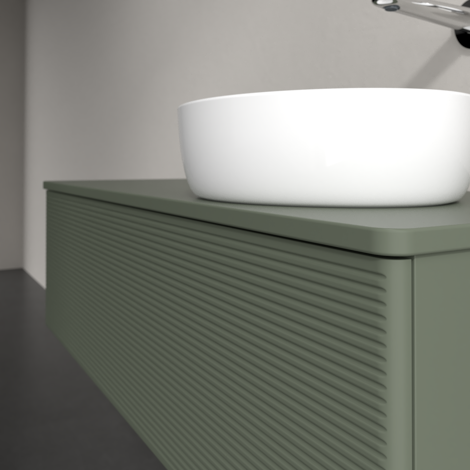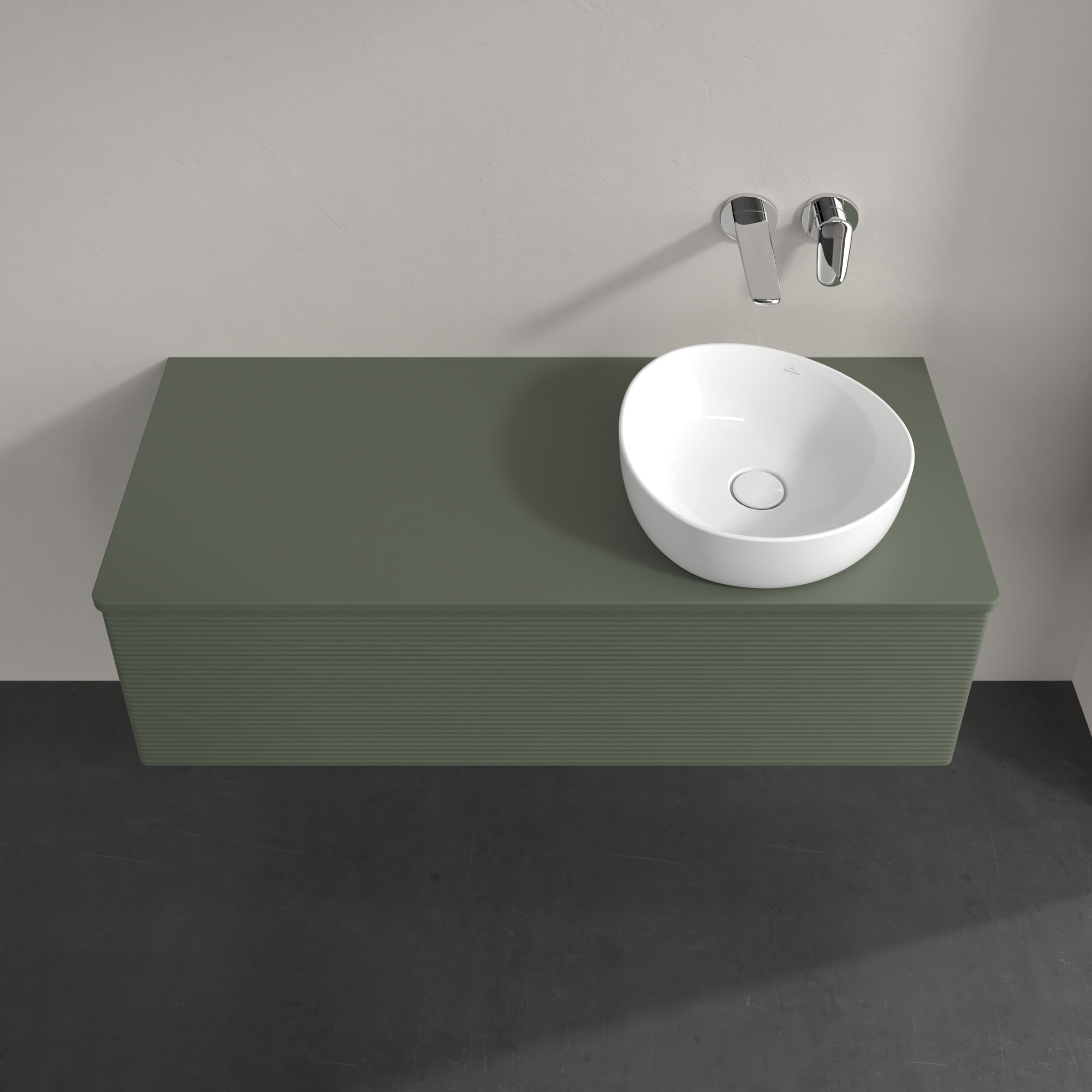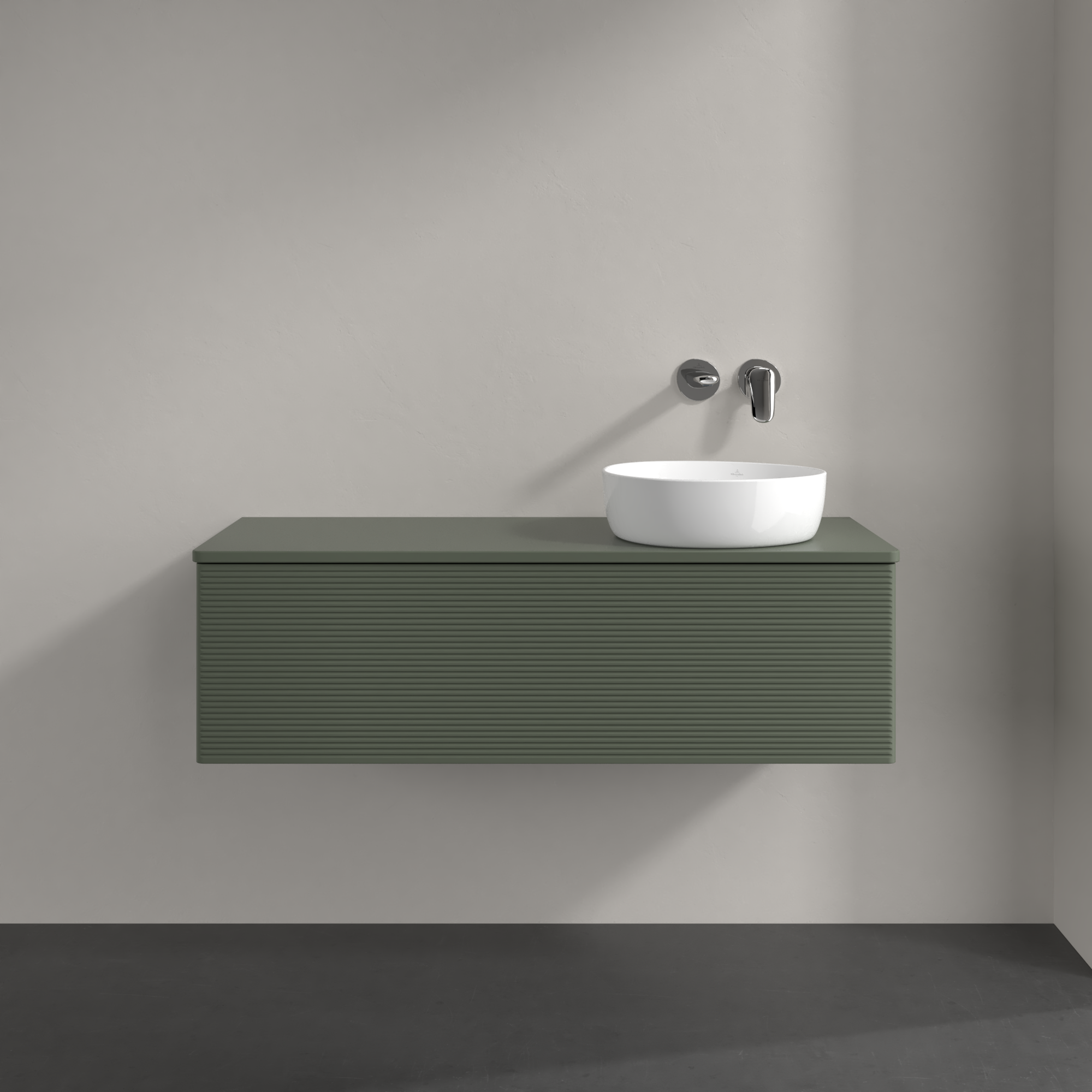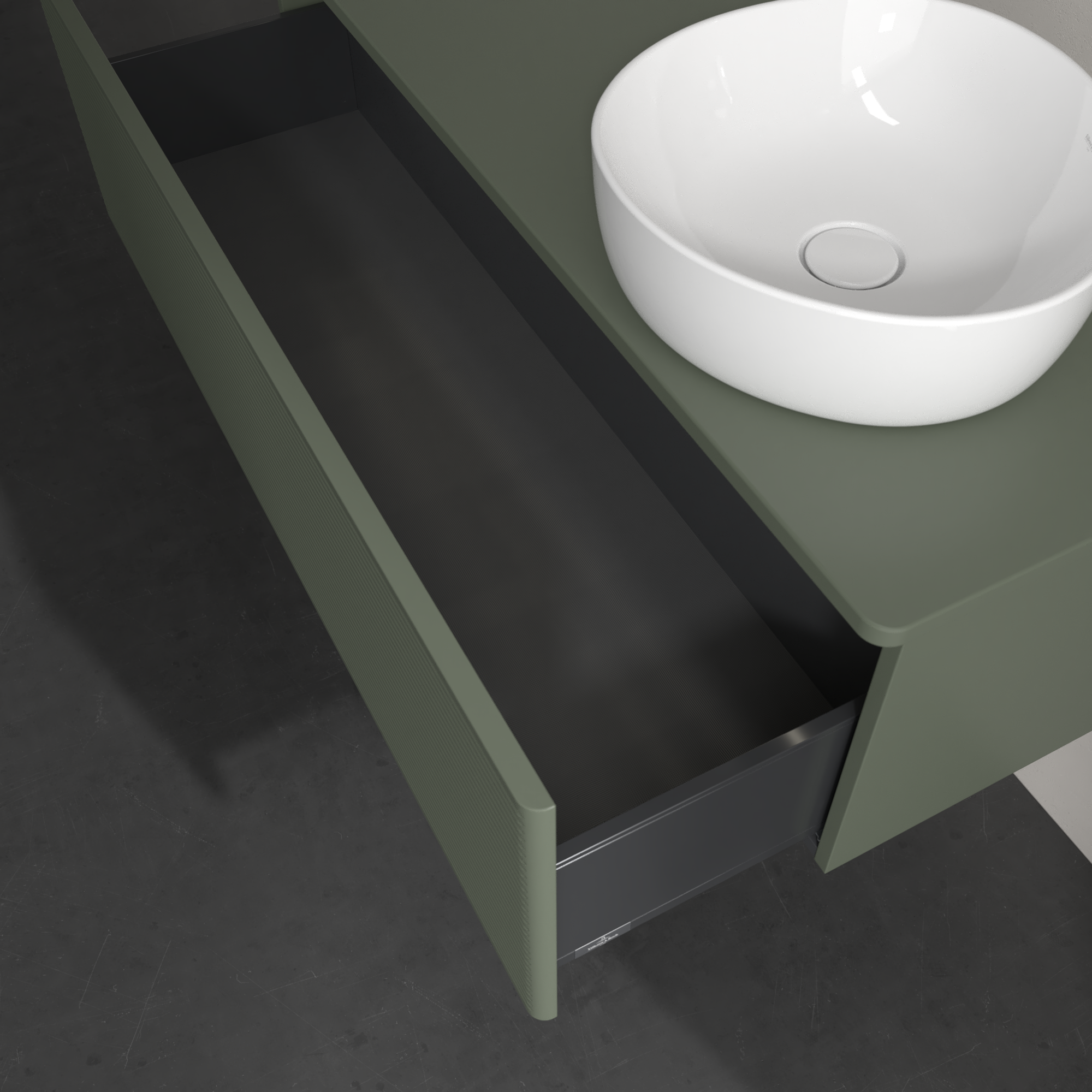 Antao Meuble sous plan, avec éclairage, 1 tiroir sur rails, 1200x360x500mm, Façade avec structure, Caisson: Leaf Green Matt Lacquer, Façade: Leaf Green Matt Lacquer, Plaque de recouvrement: Leaf Green Matt Lacquer
