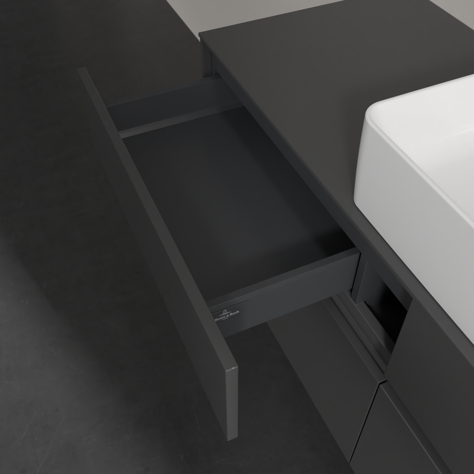 Collaro Meuble sous plan, 4 tiroirs sur rails, 1400x548x500mm, Caisson: Glossy Grey, Façade: Glossy Grey